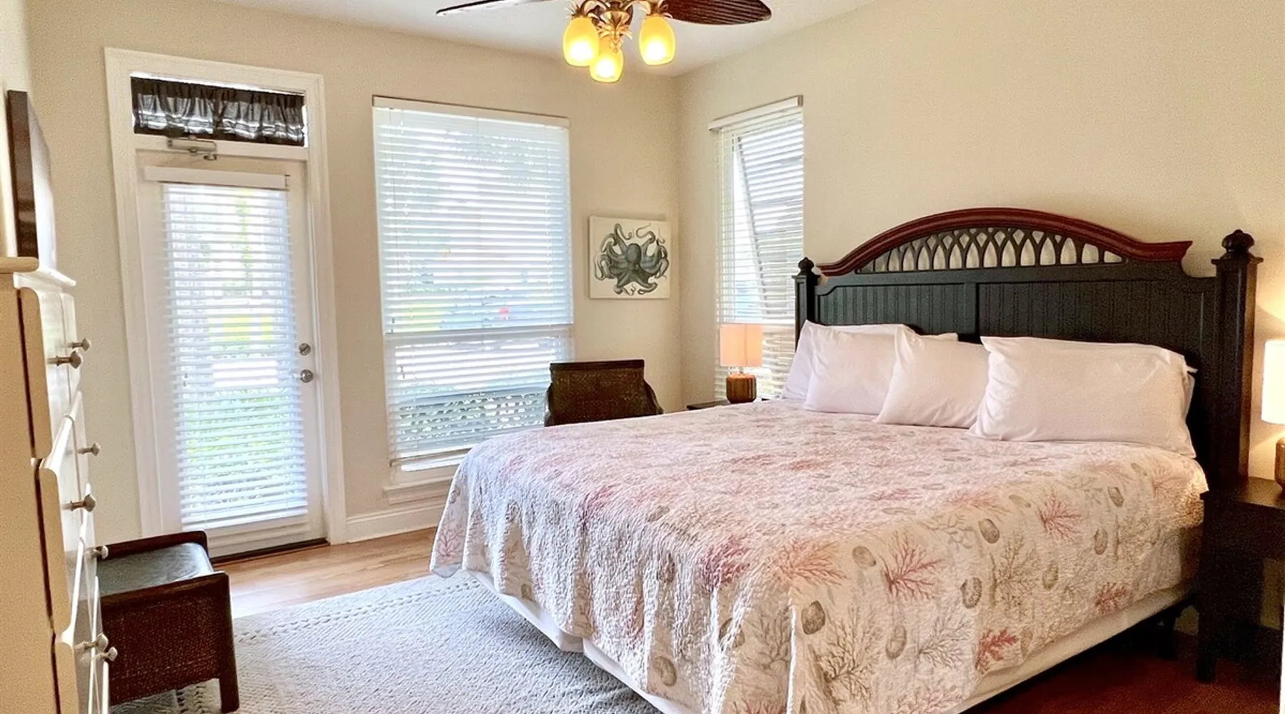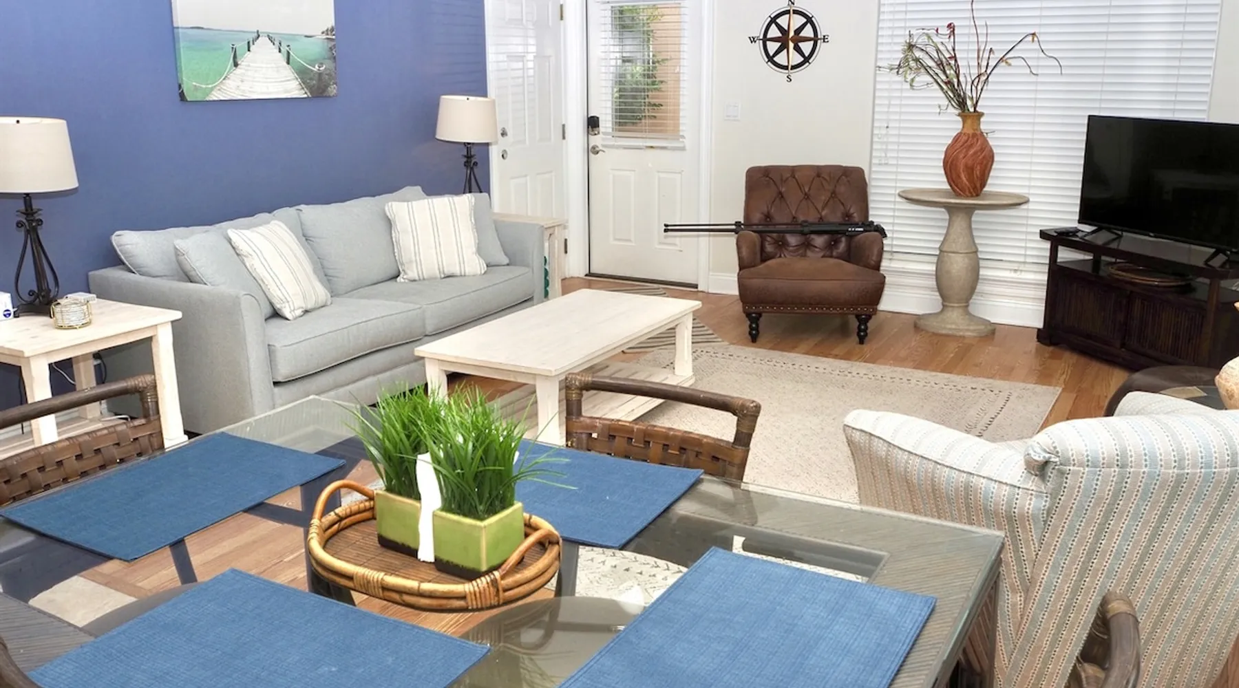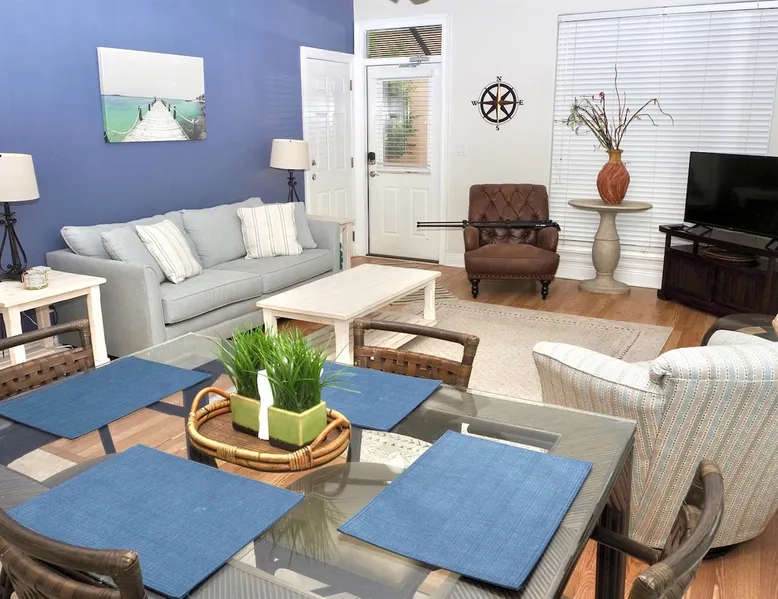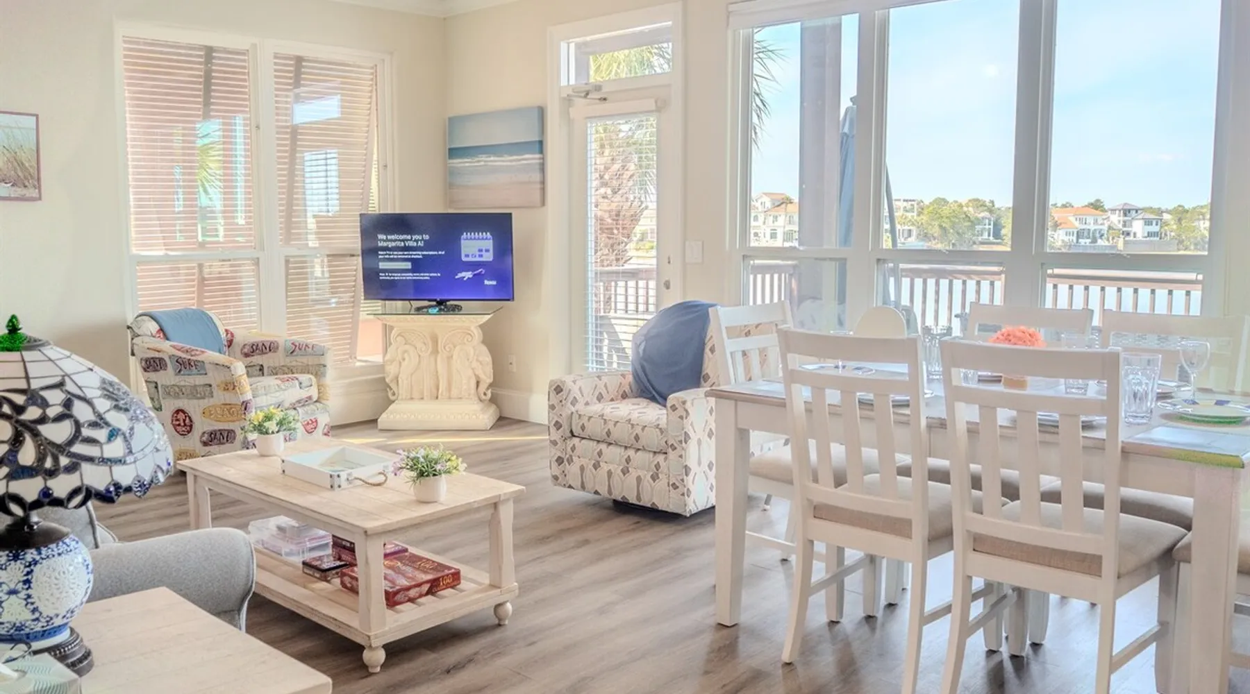 Why Remarkable Margarita Villa is a guest favorite: 🏖 200 Steps to beach 🌐 Fast Wi-Fi 🏊♀️ Heated pool 🍳 2 Full Kitchens 🛌 2 King Masters w/ensuites 📺 TV every room 🚗 Free parking 🌊 Waterfront w/2 decks 👧🏼 Beach playground, public bathhouse, Crab Trap Restaurant w/beach bar 50 steps to pool, heated about Oct 15 to Easter. (HOA can turn off heat based on weather, occupancy, and other factors). ▶︎ Click "♡ Save" to easily find us again. The space Stay at Margarita Villa in Destiny Beach Villas in Crystal Beach! Swim in the clear emerald waters of the Gulf, hop the waves, sunbathe in the Florida sun, or play in the powder-like white sands of America's #1 beach just across (or under) the street! The pool is only about 80 feet away! It is heated at Thanksgiving and from approximately December 18 to March 31. Heating may be affected by low occupancy or weather. ► From the front door of the home, it is only about 200 steps to the beach! If you are flying in, or have a full vehicle already, you'll like that we provide high-quality beach chairs with backpack-style straps, a beach wagon, toys, and beach towels. No need to buy them just to abandon. Note that we do not provide umbrellas or inflatables. The unit has 4 bedrooms; 2 King Masters with ensuite bathrooms, a guest bedroom with a queen and twin bed (not bunks), and another guest bedroom with 2 twin/full bunk beds. There are 2 other full baths as well. It is an ideal layout for a family vacation or a friend-cation. 2 well-equipped kitchens with coffee bars and 2 comfortable living areas with sofas, chairs, and HDTVs round out the home. The wall of windows on each floor with the view of the lake is the focus of this space! If your needs are smaller, we also rent the upper and lower floors separately as 2-bedroom units. The top unit (A) is property #48982004 and the lower unit (B) is #48982003. — THE HOME — ► Floor plans can be found in the photos for this listing. On the lower level is a roomy deck with dining table, beach chairs, and a deck box with storage of the other beach items. There is a spacious deck on the upper level with an outdoor sofa and chairs to relax and enjoy the Florida beach weather and the view of the lake. The lower level deck has an outdoor dining table and stores additional beach gear. The rear of the home is directly on the shore of Four Prong Lake. This fresh-water lake is generally so clear that you can see the bottom for quite some ways out from shore. Watch the waterfowl and fish in the mornings, then the turtles become active in the afternoon and evening. There is a lakeside walking path. No swimming or fishing is permitted in the lake though. Fishing is allowed on the beach, with a fishing license. In front of the home, the upper balcony has a cafe table set that offers partial views of the Gulf water. Doors from both upper bedrooms offer access to the balcony. The lower unit has a small porch with access from both bedrooms. The bench and chairs make it a great spot to hangout. Tastefully decorated and comfortably furnished throughout, the bedrooms and the living area each have ceiling fans. HDTVs with Roku streaming capability are throughout the home. With Roku Guest mode, just use your logins from your favorite streaming services or cable/satellite account. Roku offers our guests a wealth of options, including many no-cost providers. ⏤ KITCHENS ⏤ Each kitchen is well-equipped with the glassware, dinnerware, serving ware, and cookware needed to create meals for your group. There is even a coffee bar area with a drip brewer, a k-cup machine, and an electric water kettle. With a garbage disposal, microwave, dishwasher, oven and cooktop, and a larger refrigerator, it is a perfect setting to prepare your meals. The dining table upstairs seats 4 while the table downstairs seats 6. And, of course, there are Margarita glasses. Sorry, but Margaritas are not included. ⏤ THE POOL ⏤ Take a dip in the sparkling swimming pool located less than 50 steps from the front door and on the way to/from the beach! The pool area includes an outdoor rinse station (for removing that beach sand before swimming), restrooms with showers, as well as plenty of seating. Pool hours are generally 8:00 am to 10:00 pm. Children must be accompanied by an adult and there is no lifeguard on duty. Pool is heated from mid-Oct thru Easter. HOA may adjust the schedule based on weather, demand, and other factors. ⏤ WORK-CATION ⏤ Get some work done, attend virtual meetings and online school, and/or participate in video-conference meetings while visiting! We have a high-speed 1 gigabit Internet service with the latest mesh WiFi technology. This lets many devices be online without interference. ⏤ PARKING ⏤ There is free parking for up to 4 vehicles in the private parking lot. Spaces are not assigned, but parking passes are provided and are strictly required. If you choose to rent a golf cart during your visit, it counts as one of the 4 permitted vehicles. ► Permits *must* be displayed or vehicles will be towed. Due to being right across from the beach, the community vigorously enforces this to ensure there is sufficient parking for residents and our guests. ⏤ WHAT WE PROVIDE ⏤ - bed linens - bath towels & washcloths - hand towels - make-up towels - bath mats - blankets/comforters - beach wagon - beach chairs - beach toys* - beach towels - first aid kit - iron & ironing board - kitchen essentials such as foil, plastic wrap, salt/pepper, basic spices, etc.* - basic cleaners and cleaning tools (sponge, mop, bucket, broom, vacuum)* - starter set of soaps, shampoo, toilet paper, paper towels, and trash bags. - pack-n-play & high chair *We and our team do our very best to see that these items are stocked. However, it is not always possible to inventory every single item after every stay since our focus is on cleanliness. If we have not been alerted by a guest that something like salt/pepper or c