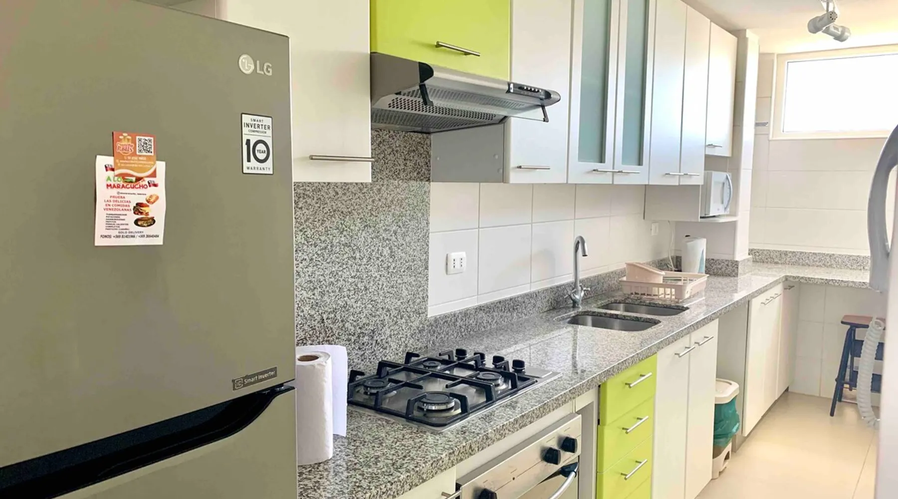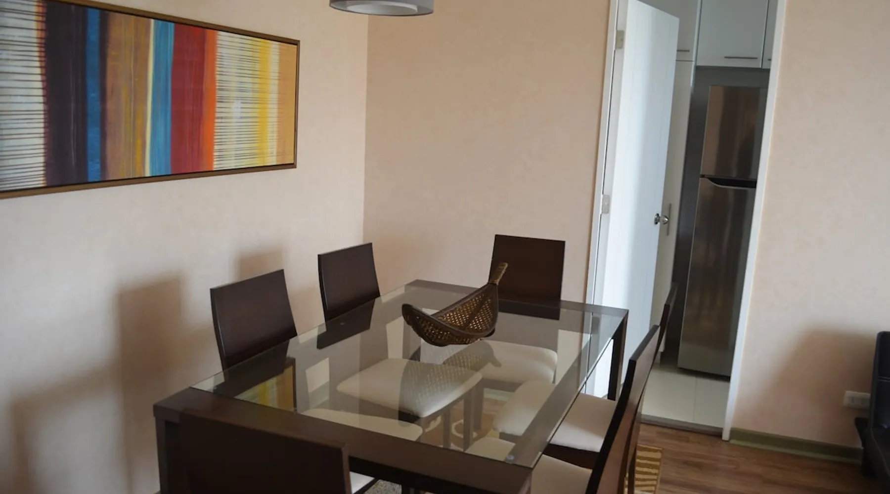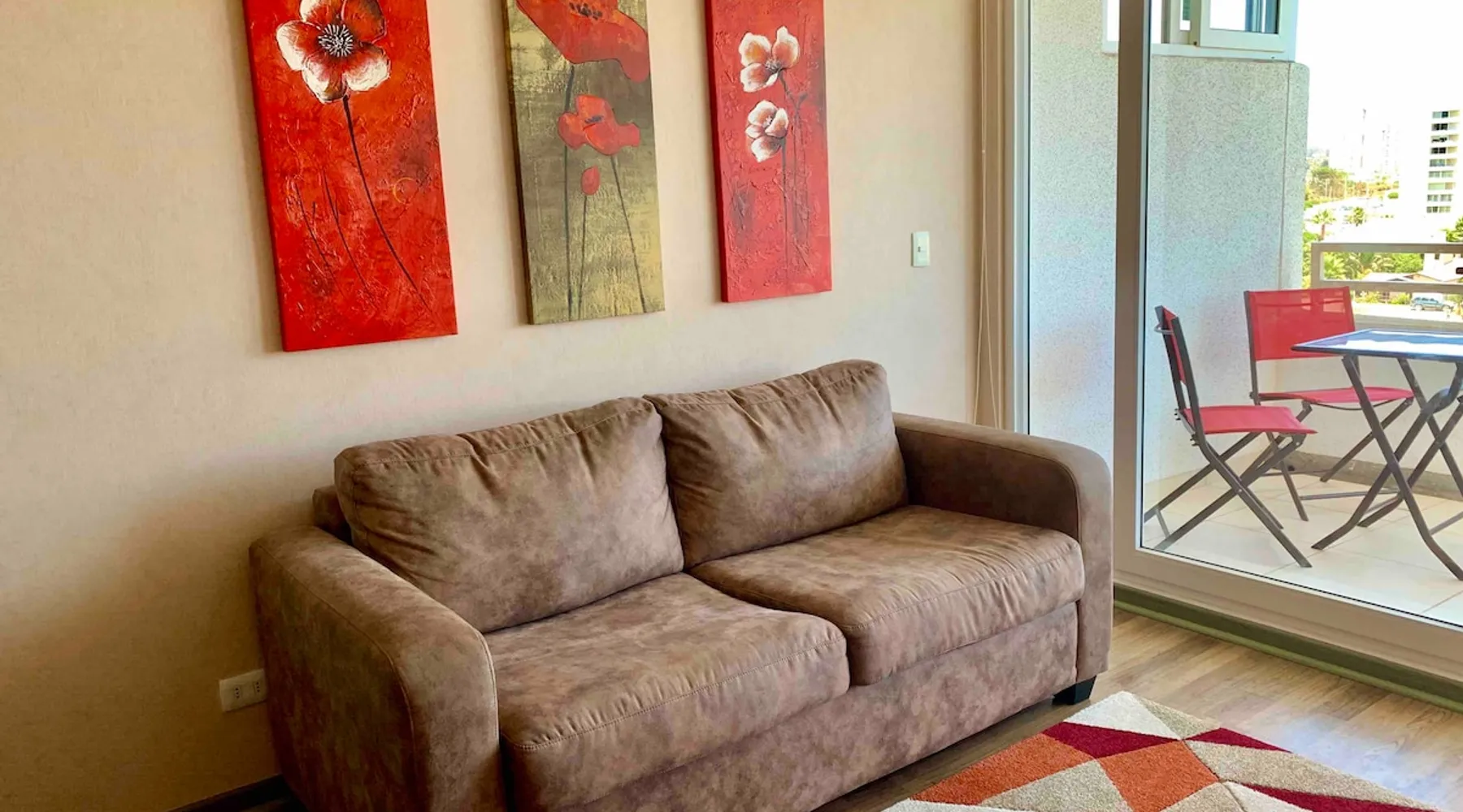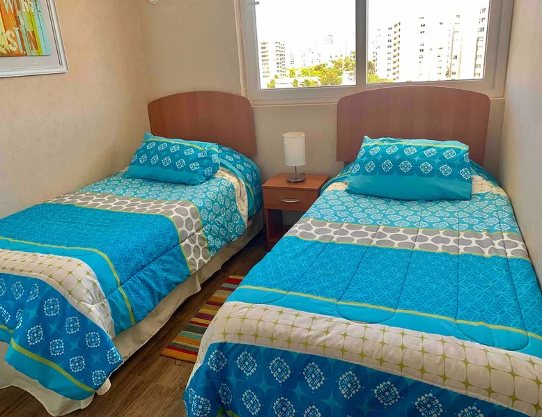 Apartment in an excellent location, Av. Pacífico in the city of La Serena, steps from the beach, restaurants, craft and entertainment fairs, near the Casino, among other points of interest. It is easily accessible and is very close to the authorized evacuation routes in case of emergencies. It has 3 rooms, 2 bathrooms, Living room - Dining room, equipped kitchen and balcony with side view to the side of the sea. The space The apartment is equipped for 6 people, with a sofa bed (which is in the living room). It is located on the 7th floor, has 1 parking and controlled access; it has prepaid wifi, Cable TV and 2 Smart TVs. In the common areas, there is an outdoor swimming pool (enabled in summer: from December to March 15 of each year, from 10:00 a.m. to 8:00 p.m. You can not use the maintenance days (Monday)) and children's games. There is also a laundry room (with direct cost to the user of that service).
