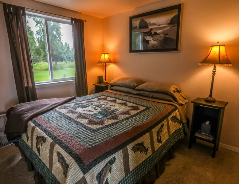 This cabin sits on the bluff above the beach facing the salmon-rich waters of the Cook Inlet to the west, providing perfect views of the sunset from inside the house or the patio! Centrally located in the Kenai, you will be 20 min from Soldotna, 1hrs from Homer, 2hrs from Seward, and 3hrs from Anchorage. The 'Foraker' cabin is the one of 7 private cabins at the Alaskan Sunset Cabins. We have a large, quiet and quaint property - perfect for a single or multi-family stay on the Kenai. The space The ultimate cabin-style home. Downstairs is complete with a full size kitchen, dining table, spacious living room, two bedrooms, and a bathroom. The king bedroom is upstairs with a private bathroom and laundry - plus a couch in the window facing the gorgeous cook inlet coast for sunset viewing. The patio, fire pit and hammocks in the yard are perfect for sunny afternoon and evenings. Guest access Outside parking next to cabin.