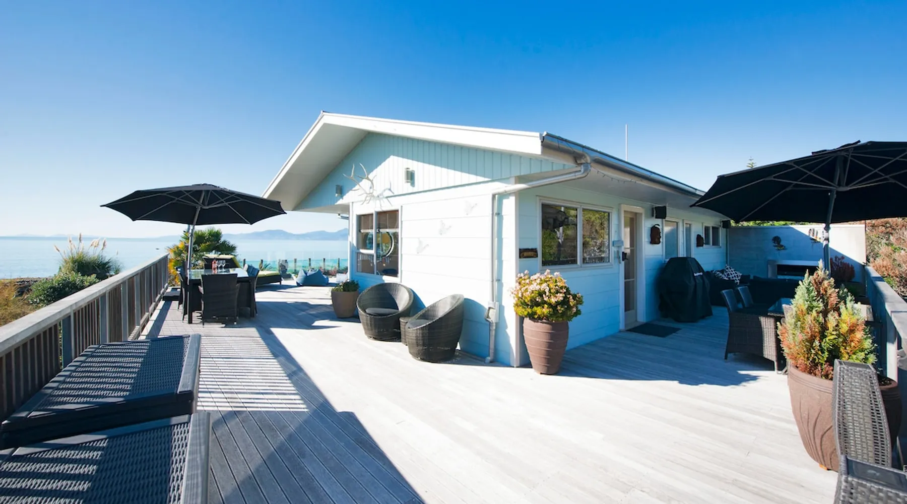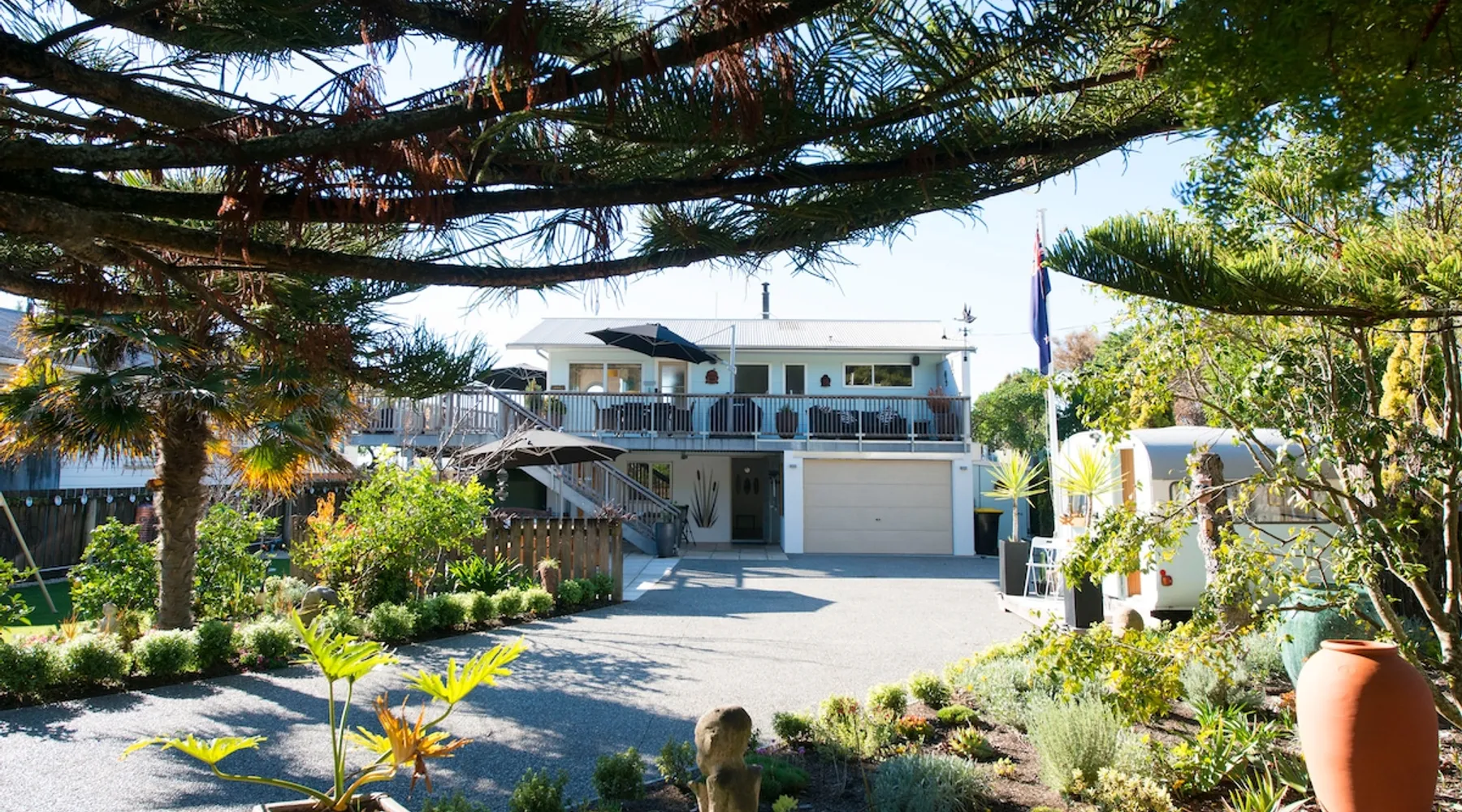 Situated on the Ruby Coast at the gateway to the Tasman Region, our oasis is the perfect place to relax or explore the Abel Tasman National Park. As soon as you arrive, you will be mesmerized by the uninterrupted sea views and beautifully landscaped gardens. With four bedrooms, two bathrooms, there is plenty of space for everyone. Facilities include a hot tub, outdoor fire, kayaks, BBQ area, outdoor lounges, fully enclosed lawn and gardens & more. The space Located right on the beach front in Ruby Bay, our place is the perfect spot to unwind and relax, or make the most of the outdoors. Our house is the perfect mix of modern and retro; you will have fun exploring some of the eclectic decor. It is as comfortable and as homely as you can get. There are four bedrooms with two bathrooms. External stairs connect the upstairs and downstairs. There is a caravan available on request if you have extra guests. Enjoy the outdoor hot tub, take the kayaks out on the bay in front of the house, wash the sand off in the outdoor shower and have a drink on the deck while the sun goes down. Getting there couldn't be easier. Less than 30 mins drive from the airport, the Tasman region has a plethora of activities at the ready. From award winning restaurants and cafes at the Mapua wharf, to breweries, galleries, Abel Tasman National Park, and the Great Taste Trail on your doorstep. - Drive on access with plenty of off street parking - Free unlimited high speed internet - All linens provided - Full service kitchen with quality appliances, pots, pans & crockery - Heat pump + Indoor fire - Washing machine - Baby friendly - Portacot + Highchair (upon request) Guest access - Hot tub under the stars - Full use of kayaks - Outdoor Fire & BBQ Area - Outdoor lounges - Full wrap around deck for entertaining - Indoor Fire place - Fully enclosed private lawn + gardens Other things to note Upstairs and Downstairs areas are connected with external stairs.