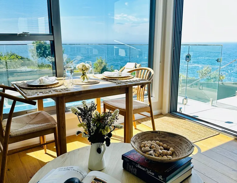 Perched on Kiama's stunning coastal escarpment, this private oceanview retreat offers romance, serenity, and front-row whale-watching from your lap pool terrace. Just a short stroll from Kiama's iconic Blowhole, cafes, and coastal walks, it's the ideal couples' escape for luxe comfort and breathtaking water views. The space Coastal Indulgence guest apartment is located in the west wing of the main residence, with its own separate entrance and complete privacy. You’ll have access to a King bedroom, living room, galley style kitchenette, bathroom, and an alfresco dining area. The apartment is tastefully decorated with contemporary coastal decor and a splash of Hamptons elegance. Whether you choose to relax by the pool, enjoy a BBQ on your balcony, or curl up on the couch, you’ll find everything you need for a perfect stay. Guest access On site hosts respect your privacy and independence, but are also happy to help you with anything you may need during your stay. Hosts live in the adjacent property, so are always available to answer your questions or offer recommendations. Your comfort and enjoyment are top priorities, and the hosts want you to feel at home in this little slice of paradise. Other things to note Feel free to make use of the kitchenette for light cooking during your stay, which is equipped with convenient amenities such as a microwave oven, countertop oven, sandwich press, portable hot plate, conventional toaster, fridge, kettle, and Nespresso coffee machine. Additionally, guests have exclusive access to a Weber BBQ, situated on the alfresco balcony of the private suite. Enjoy the freedom to prepare your own meals and savor delicious grilled dishes while taking in the tranquil surroundings. Registration Details PID-STRA-105