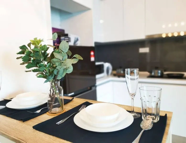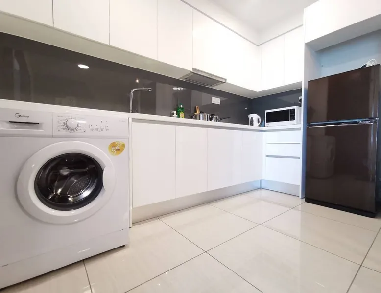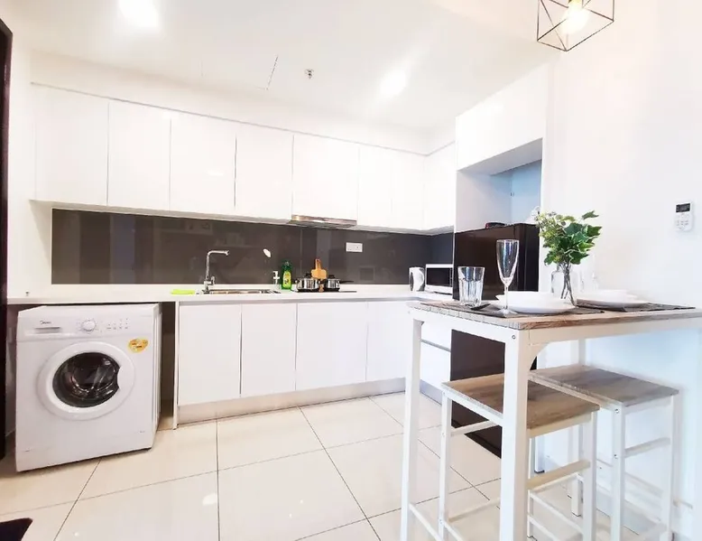 Almas Puteri Harbour 1 bedroom is a newly developed project at Iskandar Puteri. Best choice for small family, couple or by yourself. The Modern design set up provides a Cosy, and relaxing getaway . With an almost-full facilities for a home stay that is situated in the Heart of Fun, Food, Entertainment and Shopping...... all within walking distance. You can easily explore Puteri Harbour yourself for a short holiday. Unlimited wifi allows you to stay connected with your friends and family. The space This 1 bedroom Apartment is situated on the 25th floor of Almas Puteri Harbour, balcony overlooks the Harbourside and beyond the horizon.. -Living Area: 3 seated sofa bed, coffee table and a 43 inch tv for you to enjoy smart TV , King sized Divan bed, A Sofa Bed, Washer, Hair Dryer, Iron facilities -Dining Area: 2 seater high-chair table . -Kitchen: Fridge, Pots and Pans, Induction stove, Kettle, Full set of cutlery,Washing Machine. -Bathroom: Shower with Body Wash and Shampoo, toothpaste and toothbrush, towel is provided (3 guests) With basic essentials provided and basic kitchen necessities, you'll enjoy your home away from home. Guest access Common facilities at Level 7 where you can spend time and soak-in the breath-taking sunset with friends & family: - The Skydeck with Outdoor Garden on the 34th Floor - Air conditioned Gym - Indoor Basketball court (booking required) - Jacuzzi and Sauna - Lap Pool & Kids Pools (Proper and decent swimming attire required, No shorts/beach wear etc) - Children’s Playground Other things to note - Extra mattress, pillow, blanket (set) will be charged at rm20 per day - Room cleaning request will be charged RM40 (each time) - Smoking is allowed BUT please confine it to the balcony with glass door shut. - All electronic items can be used by guests, please use with care
