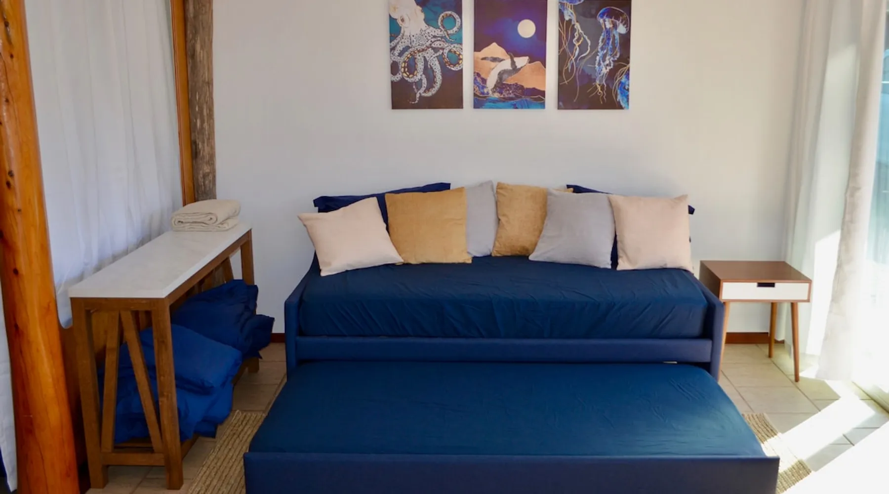 A Peaceful Beach Cottage on the Pacific Scenic Route awaits you! On two lush, beautiful acres, which you can enjoy and relax when you are not on the beach, hiking, biking or enjoying any other activity in this majestic area. A place for relaxing and enjoying beauty and tranquility, where you can connect to nature. Access path to the beach across from property, and mountain view in rear of property. The space This unique, lovely cottage is equipped with a kitchen, one bedroom and a bath. A trundle bed for two single beds in the living room. A BBQ grill outside. Semi loop trail on the property, where you can enjoy wildlife and beautiful sunsets over the ocean. Guest access A code will be provided by 4pm on arrival day. The lockbox is located right next to the sliding glass door entrance to the cottage. Front gate must remain opened at all times. Other things to note Both vacation rentals on the property share the 2 acres of land. Please do not wonder right around the perimeter of the other home