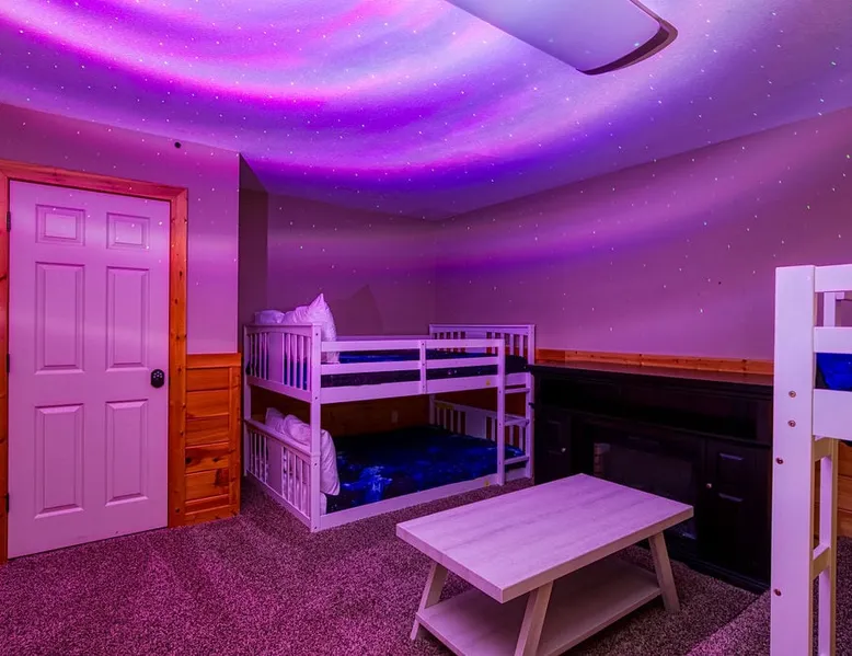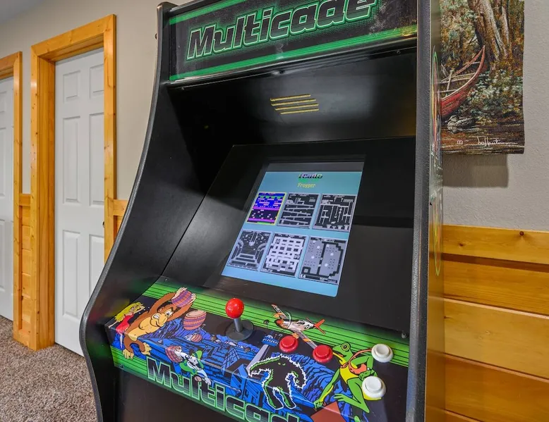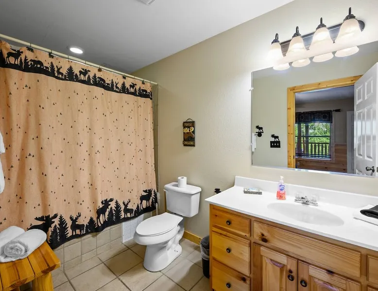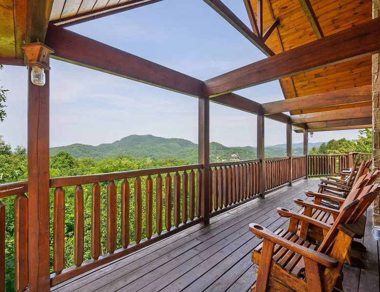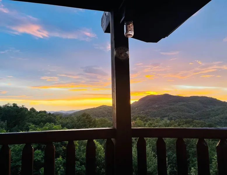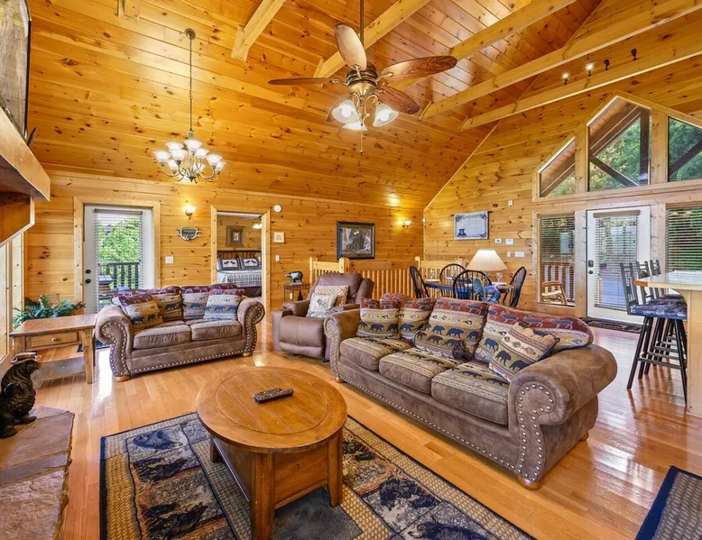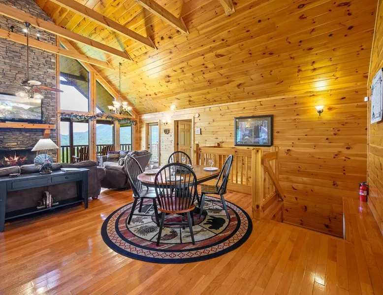 Stunning mansion cabin 7 minutes away from Great Smoky Mountains National Park! ~ EPIC mountain view sunsets * 5 King Master Suites + bunk rm (sleeps 16) ~ Luxury Theater room 86" TV (w/ popcorn maker!) ~ Game Room (Pool, Foosball, Arcade machine) ~ Private Hot Tub ~ EASY ROADS year round! ~ Stocked Fishing pond +lap pool 5min away (free access)! ~ Every bedroom has its own full bathroom River tubing minutes away and Cades cove is less than 30min away. The space TOP/ENTRANCE Level ~ 2 King Bedrooms, ensuite BR w/ jet tubs & Dish TV in each ~ Living area with Dish TV, streaming apps ~ Electric fireplace ~ Full kitchen: electric range, microwave, dishwasher, k cup and drip coffee makers, toaster oven, crock pot, blender ~ Deck with weber charcoal grill (BYO charcoal/fluid), rockers and picnic tables ~ Rockers on the deck, facing the mountains for amazing mountain views! MIDDLE LEVEL ~ 2 King Bedrooms, ensuite bathrooms w/ jet tubs + DISH Tv in every BR ~ Wet bar w/ ice maker , coffee machine ~ NEW! Theater Room with luxury recliners + POPCORN MAKER (stocked) ~ 86" Smart TV w/ special effect lighting, streaming services, Dish ~ Deck LOWER LEVEL ~ King Bedroom w/ ensuite bathroom, jet tub + TV with fire stick/streaming apps ~ 2nd Bedroom with 4x Double Size Beds (two bunk beds) ~ GAME ROOM : Arcade machine, foosball, pool table, board games, TV ~ New memory foam Queen sleeper couch ~ Full bathroom ~ Wet bar ~ Washer/Dryer ~ Private hot tub on deck Pack n play & highchair are in the cabin free to use. This cabin is in the beautiful area of Wears Valley. Easy access to restaurants/shops in Wears Valley or Townsend, avoiding the busy areas of Pigeon Forge, but still only a short drive away. Perfect location for peaceful getaway. Cade's cove, tubing, Great Smoky Mountains National Park entrance, and lots of hiking are all very close to the cabin and on easy roads! Guest access This cabin is one of the most easily accessible cabins with a view, avoiding much of the steep mountain roads. It's only a mile off wears valley rd! Large lap pool and fishing pond are a 5 min drive away (access is free with your stay) Other things to note BATH towels and linens for all beds are provided. Please bring your own towels for the pool and do not bring ours. Please note all fireplaces in the cabin are electric. Open flames are not allowed on the premises. We DO have a pack & play & highchair in the cabin as well. Pool is generally open Memorial Day to Labor day but if weather is good sometimes they open earlier or close later in the season. We have no control or responsibility for pool closures. Food items including coffee are not provided. A starter supply of TP and paper towel are provided but you should anticipate having to purchase more. This cabin is in the woods! You may see or hear insects and bears. This cabin is only about a mile off the main road (Wears Valley Rd) which is flat, but the last quarter mile is a little steep. The driveway is also a bit steep. For cabins with a view, this is relatively mild and only a short distance. Any car can easily handle it, however, if there is snow or ice you would want 4 wheel drive (as you would anywhere in the mountains here). That's the tradeoff for having an amazing mountain view :-) The TVs in the cabin all have wifi access with streaming apps such as netflix, but bring your own logins. Pets are not allowed. If you sneak in a pet you will be charged $500 and asked to leave. Please note there are security cameras monitoring the front and rear entrances for our mutual protection. Please make sure your guest count is accurate. The price varies slightly depending on the total number of guests. A security deposit of $500 will be collected through our API system after booking. No refunds are offered for weather, please plan accordingly! If available, early checkins and late checkouts can be arranged at a cost of $30 per hour rounded to the nearest hour. Please message us for availability.