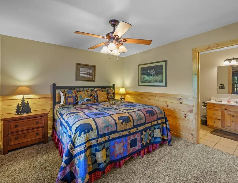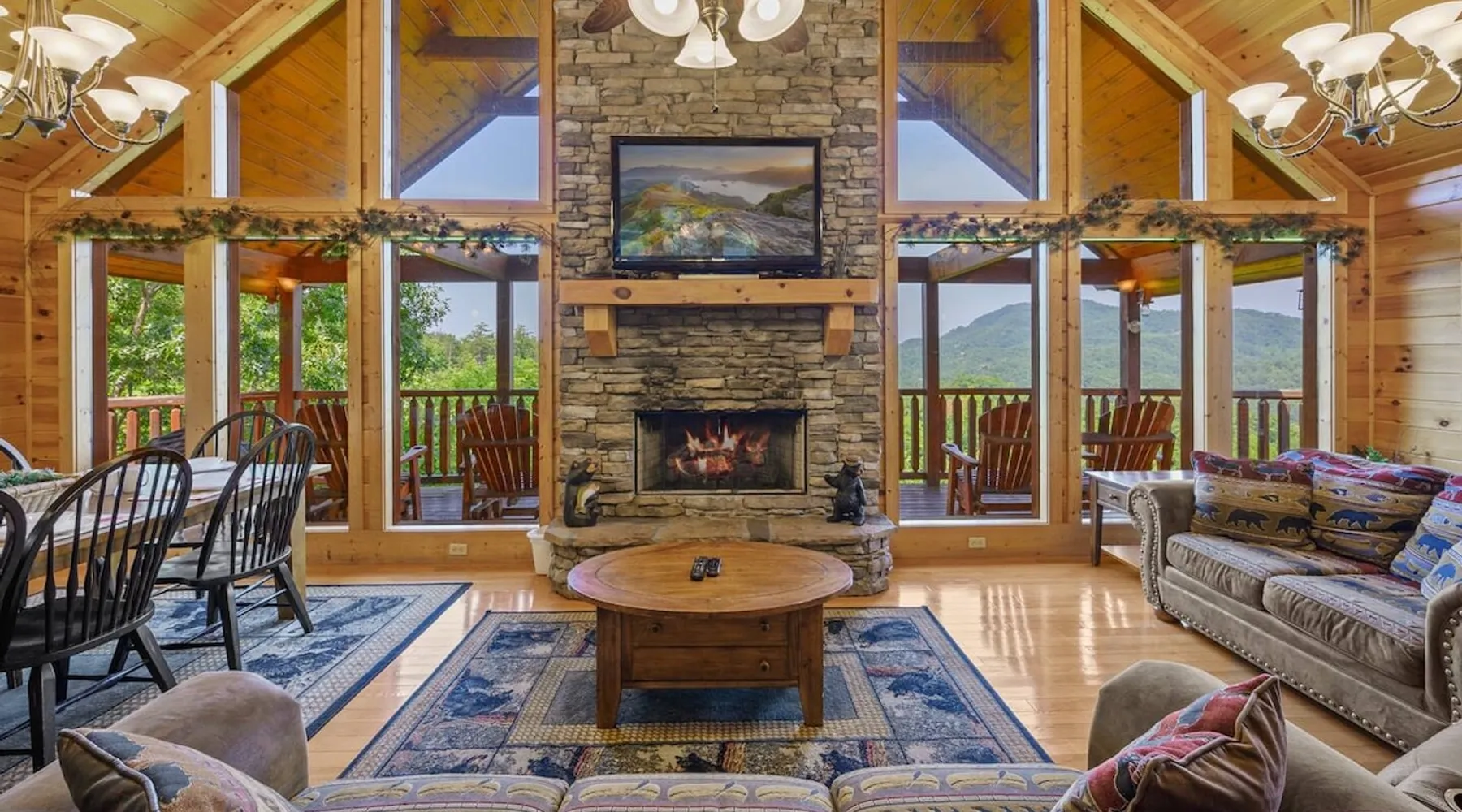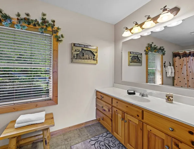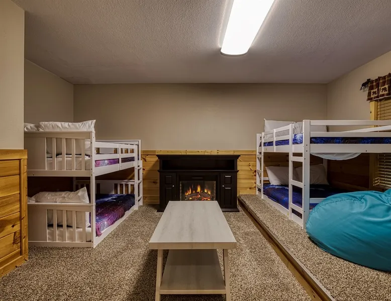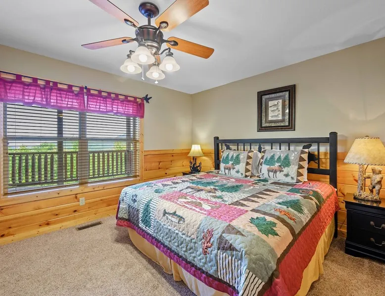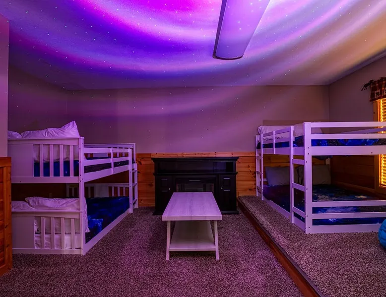 Stunning mansion cabin 7 minutes away from Great Smoky Mountains National Park! ~ EPIC mountain view sunsets * 5 King Master Suites + bunk rm (sleeps 16) ~ Luxury Theater room 86" TV (w/ popcorn maker!) ~ Game Room (Pool, Foosball, Arcade machine) ~ Private Hot Tub ~ EASY ROADS year round! ~ Stocked Fishing pond +lap pool 5min away (free access)! ~ Every bedroom has its own full bathroom River tubing minutes away and Cades cove is less than 30min away. The space TOP/ENTRANCE Level ~ 2 King Bedrooms, ensuite BR w/ jet tubs & Dish TV in each ~ Living area with Dish TV, streaming apps ~ Electric fireplace ~ Full kitchen: electric range, microwave, dishwasher, k cup and drip coffee makers, toaster oven, crock pot, blender ~ Deck with weber charcoal grill (BYO charcoal/fluid), rockers and picnic tables ~ Rockers on the deck, facing the mountains for amazing mountain views! MIDDLE LEVEL ~ 2 King Bedrooms, ensuite bathrooms w/ jet tubs + DISH Tv in every BR ~ Wet bar w/ ice maker , coffee machine ~ NEW! Theater Room with luxury recliners + POPCORN MAKER (stocked) ~ 86" Smart TV w/ special effect lighting, streaming services, Dish ~ Deck LOWER LEVEL ~ King Bedroom w/ ensuite bathroom, jet tub + TV with fire stick/streaming apps ~ 2nd Bedroom with 4x Double Size Beds (two bunk beds) ~ GAME ROOM : Arcade machine, foosball, pool table, board games, TV ~ New memory foam Queen sleeper couch ~ Full bathroom ~ Wet bar ~ Washer/Dryer ~ Private hot tub on deck Pack n play & highchair are in the cabin free to use. This cabin is in the beautiful area of Wears Valley. Easy access to restaurants/shops in Wears Valley or Townsend, avoiding the busy areas of Pigeon Forge, but still only a short drive away. Perfect location for peaceful getaway. Cade's cove, tubing, Great Smoky Mountains National Park entrance, and lots of hiking are all very close to the cabin and on easy roads! Guest access This cabin is one of the most easily accessible cabins with a view, avoiding much of the steep mountain roads. It's only a mile off wears valley rd! Large lap pool and fishing pond are a 5 min drive away (access is free with your stay) Other things to note BATH towels and linens for all beds are provided. Please bring your own towels for the pool and do not bring ours. Please note all fireplaces in the cabin are electric. Open flames are not allowed on the premises. We DO have a pack & play & highchair in the cabin as well. Pool is generally open Memorial Day to Labor day but if weather is good sometimes they open earlier or close later in the season. We have no control or responsibility for pool closures. Food items including coffee are not provided. A starter supply of TP and paper towel are provided but you should anticipate having to purchase more. This cabin is in the woods! You may see or hear insects and bears. This cabin is only about a mile off the main road (Wears Valley Rd) which is flat, but the last quarter mile is a little steep. The driveway is also a bit steep. For cabins with a view, this is relatively mild and only a short distance. Any car can easily handle it, however, if there is snow or ice you would want 4 wheel drive (as you would anywhere in the mountains here). That's the tradeoff for having an amazing mountain view :-) The TVs in the cabin all have wifi access with streaming apps such as netflix, but bring your own logins. Pets are not allowed. If you sneak in a pet you will be charged $500 and asked to leave. Please note there are security cameras monitoring the front and rear entrances for our mutual protection. Please make sure your guest count is accurate. The price varies slightly depending on the total number of guests. A security deposit of $500 will be collected through our API system after booking. No refunds are offered for weather, please plan accordingly! If available, early checkins and late checkouts can be arranged at a cost of $30 per hour rounded to the nearest hour. Please message us for availability.