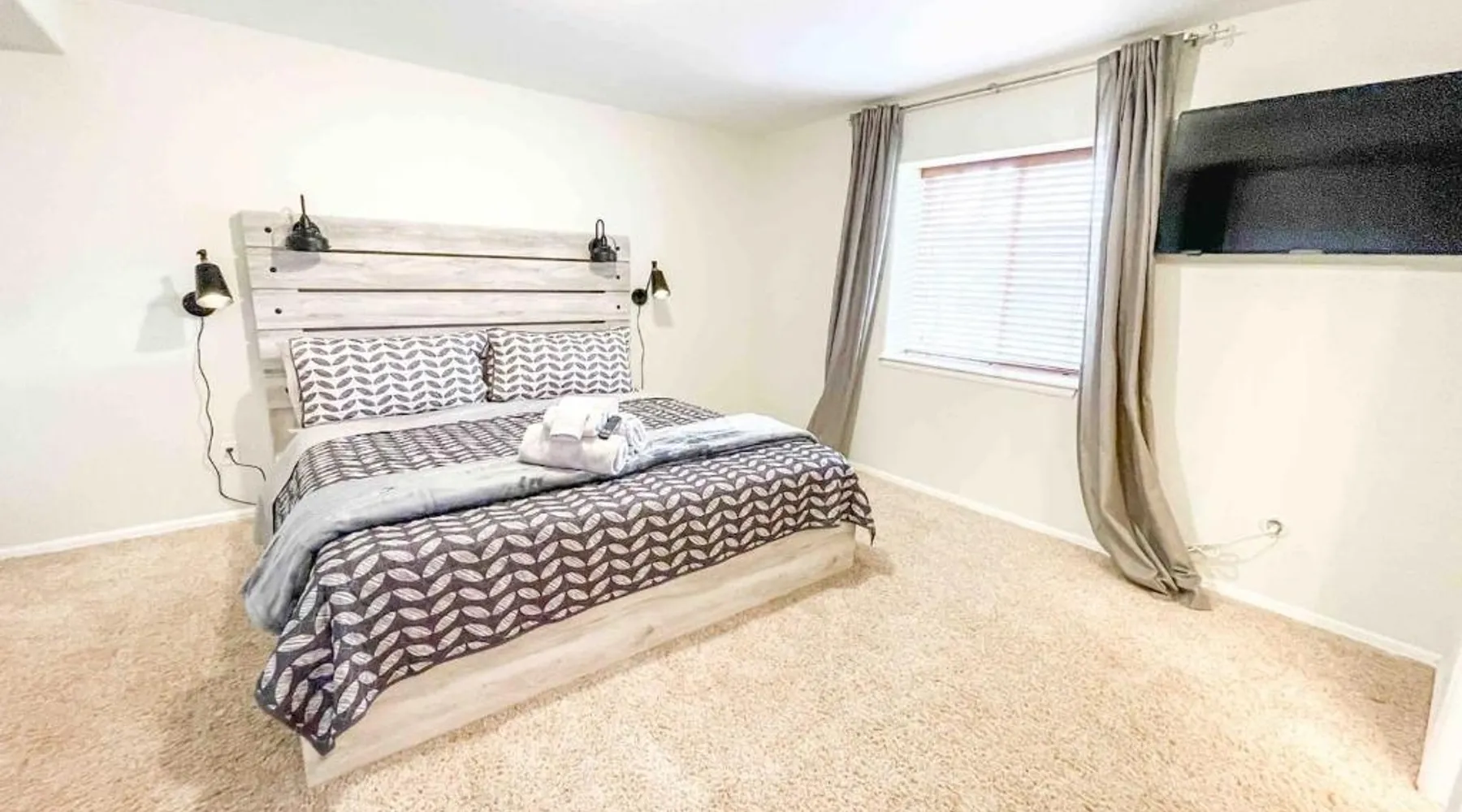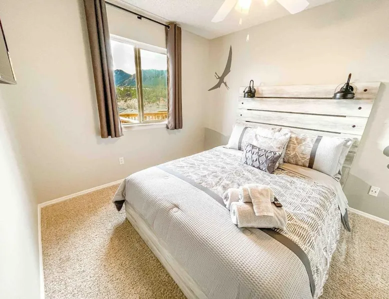 Spacious Accommodations: 2 Master Suites! Pet Friendly With MTN Views in Palmer Lake offers a spacious villa with five bedrooms and three bathrooms. The property includes a living room, family rooms, and a balcony with mountain views. Modern Amenities: Guests enjoy free WiFi, air-conditioning, and free on-site private parking. The villa features a fully equipped kitchen with a dishwasher, microwave, and oven. Additional amenities include a washing machine, barbecue, and a work desk. Convenient Location: Located 28 mi from Colorado Springs Airport, the villa is near attractions such as United States Air Force Academy (12 mi), Palmer Park (21 mi), and Garden of the Gods (22 mi). English is spoken at reception. This spacious villa features 1 living room, 5 separate bedrooms and 3 bathrooms with a bath and a shower. Guests will find a stovetop, a refrigerator, a dishwasher and kitchenware in the kitchen. The villa also comes with a barbecue. The air-conditioned villa features a flat-screen TV, a washing machine, a tea and coffee maker, a seating area as well as mountain views. The unit has 8 beds.
