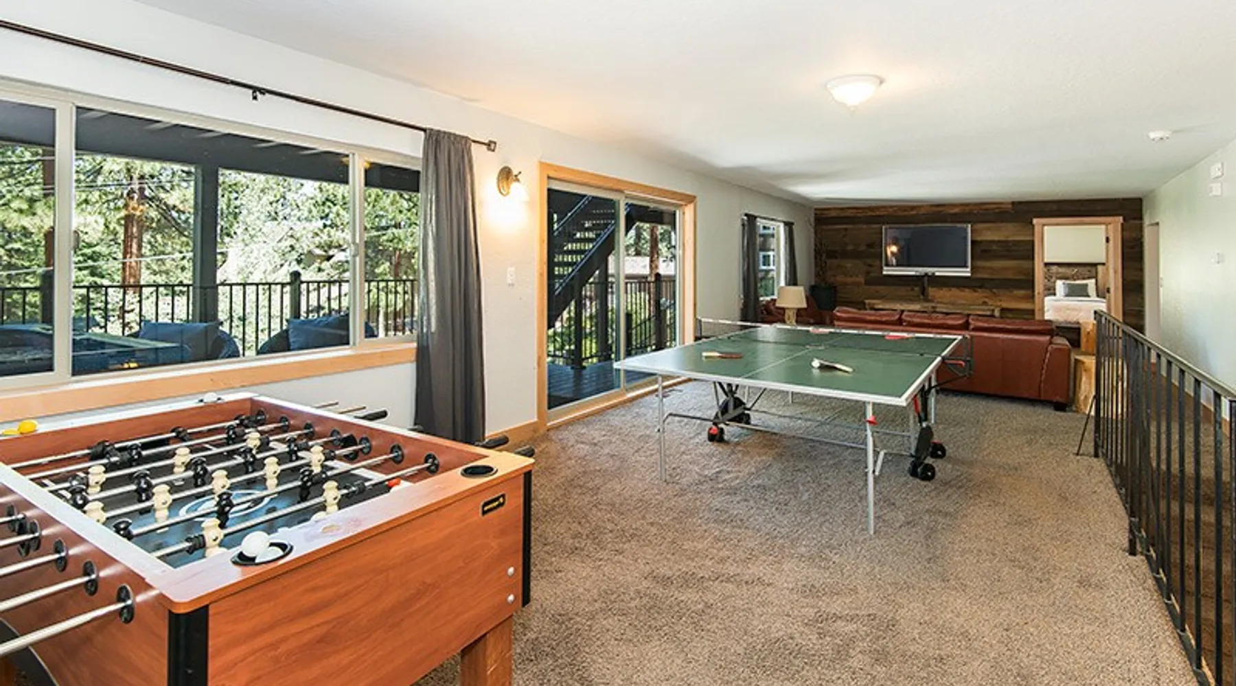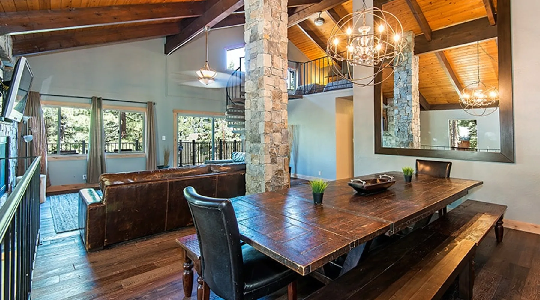Grand Estate near the Zephyr Cove beach. Estate boasts everything you could want and has high end everything. Permit # VHRP07-446 Max occ overnight - 10 Parking allowed - 7 car max (no street parking) Quiet hours between 9 pm to 8 am strictly enforced The space 8 bedroom home only 3 miles to South Lake Tahoe casinos and Heavenly, steps from the lake (300 yards). Adjacent beach has all the watercraft rentals you would want, tie up your boats and walk to the house. 4500 sq. ft in house. 4 levels of space, luxury and comfort. Hot tub on one of the decks with Restoration Hardware patio furniture. Large top deck boasts a Stainless Steel BBQ, Restoration Hardware dining table, Restoration Hardware Patio furniture. Game room with Pool table, Foosball, Ping pong, Full service wet bar. Family room with couches set in front of reclaimed wood wall with 60 inch HD TV for TV viewing from all around game room. Main Grand Living room with Grand rock fireplace and 70'inch Plasma TV set in front of Restoration Hardware couches. Large kitchen with new top of the line stainless steel appliances, reclaimed wood flooring throughout, granite counter tops with new cabinetry, large top of the line wood dining room table with leather with tons of seating. Huge 13X8 mirror on the wall above dining table completes the room... Master suite with King bed, private fully remodeled bath with high end granite countertops, travertine flooring, Flat Screen TV. All bathrooms completely remodeled with marble flooring, granite countertops, slate and travertine flooring.... Brand new carpet through the whole house. Hi-Speed Wireless throughout. Great location next to beach/lake, 3 miles to South Lake Tahoe casinos/Heavenly/Downtown nightlife, restaurants. Bedroom 1 - 3 Queens Bedroom 2 - Queen Bedroom 3 - Queen and Twin Bedroom 4 - Queen and Twin Bedroom 5 - Queen Bedroom 6 - Queen Bedroom 7 - King Bedroom 8 - 2 Queens Loft - Queen and Twin (Open Loft) VHRP 07-446 10 people max overnight 7 car max at all times (only park in garage and paved driveway) Parking pass required to be displayed on each dashboard Quiet hours from 9 pm to 8 am strictly enforced per Douglas county code No hot tub use allowed from 9 pm to 8 am Guest access Everything is accessible