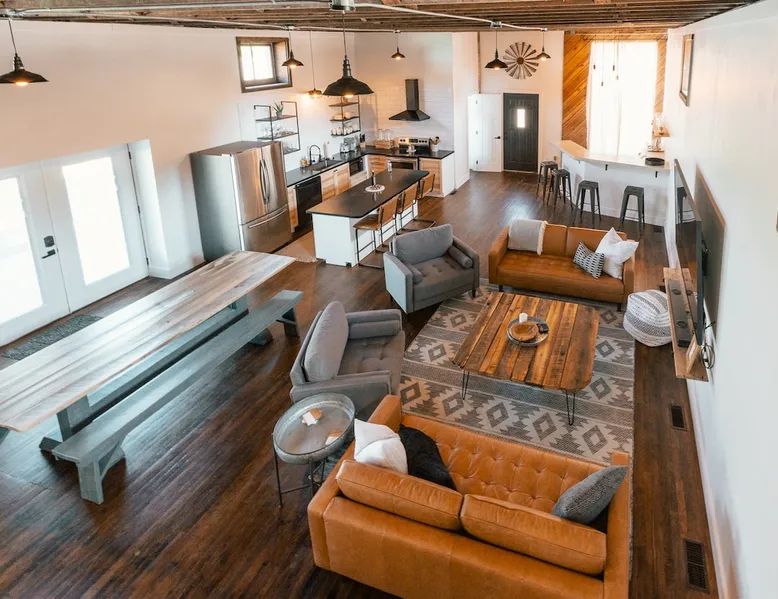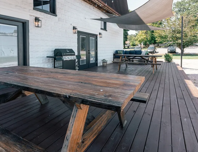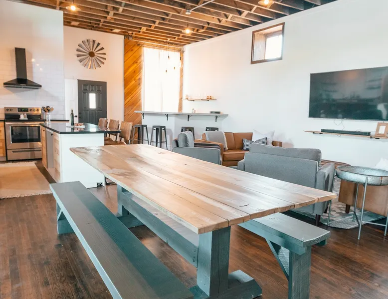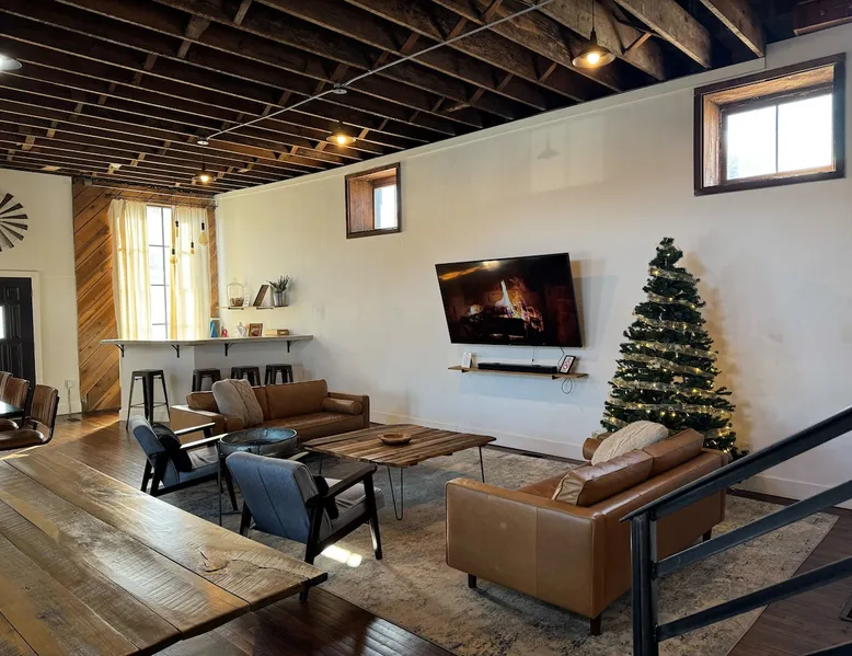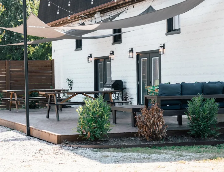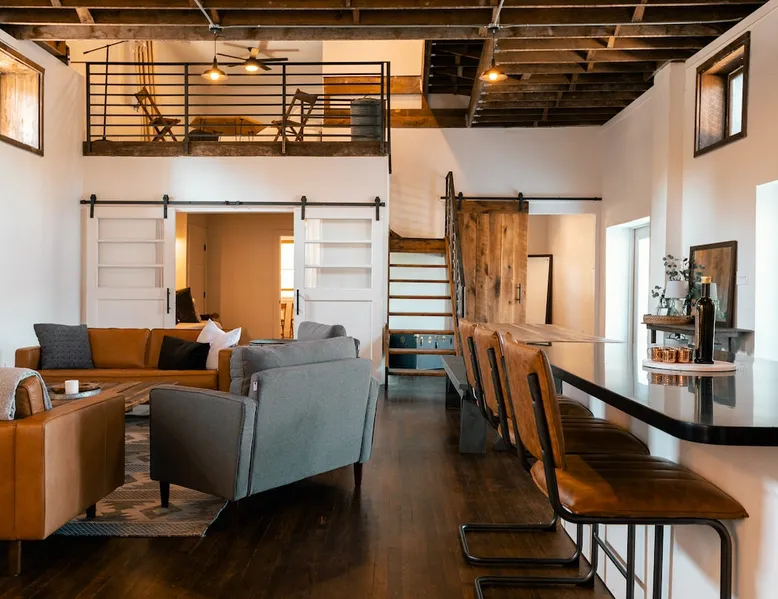 The South Knox Stable is 5 Minutes from Downtown Knoxville and University of TN. A barn like renovation was giving to this luxury vacation rental in order to provide guests with a unique experience as they visit our vibrant town. Every room in the stable is guaranteed to wow, and was carefully & thoughtfully designed with the guest in mind. You are going to LOVE this place. The space Your group will enjoy a VERY open concept space with two french doors that open up to the large deck. Ideal for larger groups with enough space to spread out, as well as to gather together. Note: If bringing a pet, please make sure to read the pet fee information under additional rules. The pet fee is a separate charge from the reservation. ✺ LIVING ROOM ✺ Relax on 2 comfortable sofa's and watch your favorite movie or show with friends or family. There is a Full bathroom just off the Kitchen Area. ✔ (2) Comfortable Leather Sofa's with Pillows ✔ (2) Linen arm chairs w/ Side table ✔ 65" Smart TV ✔ Custom Coffee table ✺ KITCHEN & DINING ✺ The kitchen features wood cabinetry w/ Stainless steel appliances and offers plenty of working areas with spacious countertops and island with seating for 3. Bring your meal in, or grab some fresh ingredients from the nearby Kroger grocery store and prepare some delicious homemade meals. ✔ Dining Seating for 8 + Island seating for 3 ✔ Microwave ✔ Stove ✔ Oven ✔ Refrigerator/Freezer ✔ Dishwasher ✔ Keurig Coffee Maker ✔ Toaster ✔ Sink - Hot & Cold Water ✔ Glasses ✔ Silverware ✔ Pots & Pans ✔ Cooking Utensils ✺ MASTER BEDROOM w/ Ensuite Bathroom ✺ ✔ King-Size Bed complete w/ Pillows, Linens, and Sheets ✔ Night Stands with Reading Lamps ✔ Luxury Full Bathroom w/ Walk-in Tile shower (3 shower heads) ✔ Towels ✔ Hair Dryer ✔ Essential Toiletries ✺ GUEST BEDROOM #1 ✺ ✔Trundle bedd with Pillows, Linens, and Sheets ✔ Writers Desk ✔ 32" Smart TV ✺ Full Bathroom #2✺ ✔ Vanity & Mirror ✔ Plenty of Natural lighting ✔ Walk-in tile Shower ✔ Towels ✔ Hair Dryer ✔ Essential Toiletries ✺ 2nd Floor Bunk Room ✺ The Bunk room features (2) Queen sized bunk beds ✔ (2) Queen Beds with Pillows, Linens, and Sheets ✔ 2nd Sitting Area w/ chairs and Coffee table Guest access Guests will have access to the entire property, including the 600sqft deck and 1/2 acre yard. Other things to note ✧We will require a $300 Security Deposit for reservations with more than 8 guests. ✧We are happy to have pets. "Pet fee charge separate from reservation fee for $50/night per pet fee for up to $250." " We ask that you don't allow pets on furniture, beddings and that you clean up after them. Any traces of this being violated guests can be charged up to $300 for extensive cleaning and breaking of house rules.” IMPORTANT NOTICE: Guests will be provided a link to our Guest Portal to complete within the first 48 hours after booking to verify booking details. For any questions regarding the Guest Portal feel free to send us a message. ALL RESERVATION CHANGES OR CANCELLATIONS are best completed within the FIRST 48 HOURS after confirmed booking. All guests please take into consideration our strict cancellation policy. If there is a chance you would need to cancel your reservation it may benefit you to purchase travel insurance to insure you receive your desires reimbursement. Halo Hospitality is NOT responsible for insuring our guests.