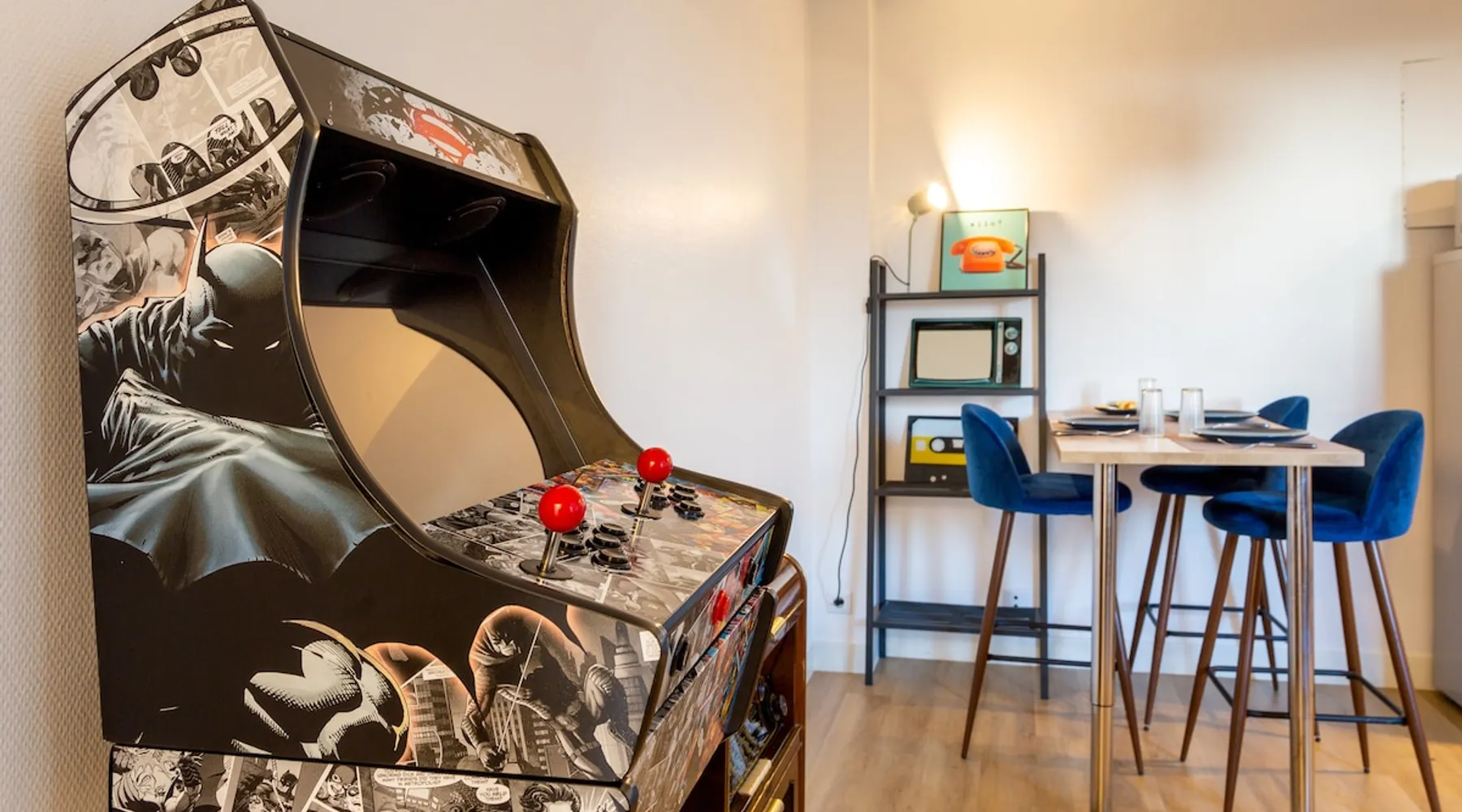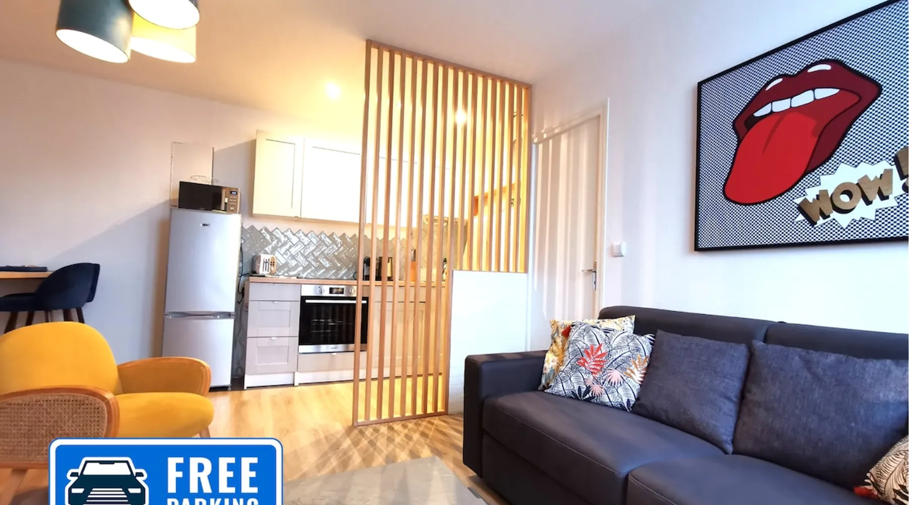 Feel free tosearchformoreinformationaboutour accommodations, their amenities, and our news. Located just 3 minutes walk from the historic city center of Blois, the Happy Kool is a cozy apartment of 40 sqm, completely renovated, offering an ideal setting for a comfortable stay, whether for holidays or business trips. This property is managed by our HAPPY LOCATIONS Blois concierge. The space The apartment has a bedroom with a double bed and a sofa bed with a real mattress, all modern equipment (Wifi, TV, soundbar, equipped kitchen, washing machine...) and the necessary comfort for your tourist or business trips. For families, 1 umbrella bed with mattress is available for your baby, as well as1 high chair with tray. An arcade terminal is available to replay more than 3000 video games from the 80s/90s! A dedicated and secure PARKING SPACE (with entrance badge) is also available for your stay. The accommodation is located on the ground floor (no stairs) and quiet in the inner courtyard of the residence. Linens/towels provided and shower gel This is being managed by our partner HAPPY RENTALS Blois. __________________________________________ >>> 1- Ventilation of rooms after each rental. 2- Dust, suction and cleaning of floors. 3- Disinfection of main contact surfaces (virucide): light switches, handles, toilet, remotes, stair ramp, etc. 4- Washing linens and linens by a professional laundromat (in a 60° machine). 5- Availability of disinfectant wipes and hydroalcoholic gel in the unit. __________________________________________ * **ǐ ǐ ǐǐǐǐ ǐǐǐǐ ǐǐǐǐ ǐǐǐ ǐ ǐǐ ǐǐ ǐǐǐǐ ǐǐǐǐ ǐǐa ǐǐ ǐǐǐǐ ǐǐǐǐ ǐǐǐǐ ǐǐǐǐ ǐǐǐ ǐ ǐǐǐ __________________________________________ - HAPPY COCOON | Hypercenter apartment with private parking (for 6 people). Pets allowed / Pet friendly - HAPPY LOFT | Hypercenter apartment with private parking (for 6 people). Pets allowed / Pet friendly __________________________________________ Guest access Access to the dwelling is provided by a key deposit. Other things to note PETS ALLOWED/ pet FRIENDLY (1 pet maximum per trip). Ideal for rentals during conferences /shows "les Rendez-vous de l 'Histoire" and "BD Boom". For the curious and animal lovers, the Beauval Zoo is 45km from Blois. The mobile app "VISIT' BLOIS" can be downloaded from the Android Play Store and Apple's App Store. nyd37