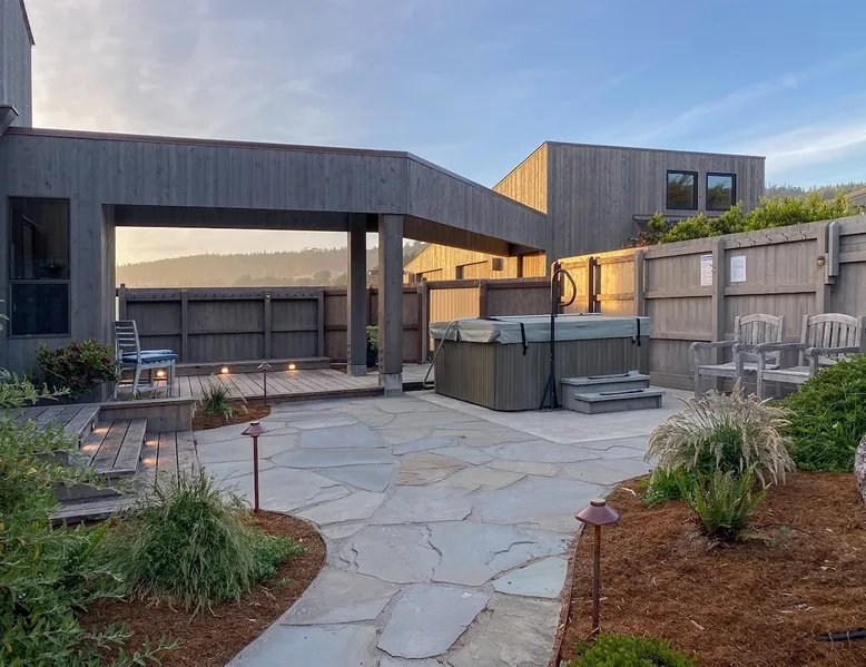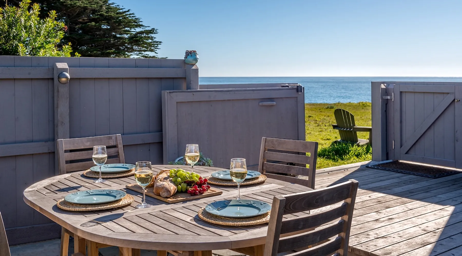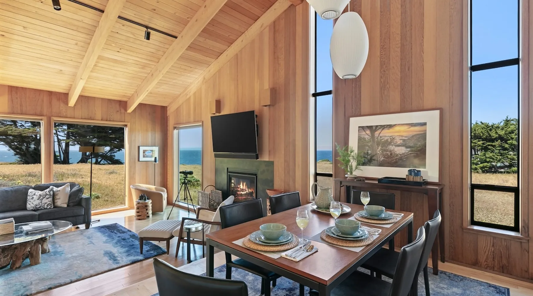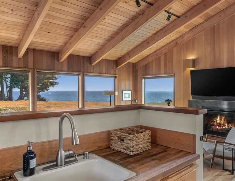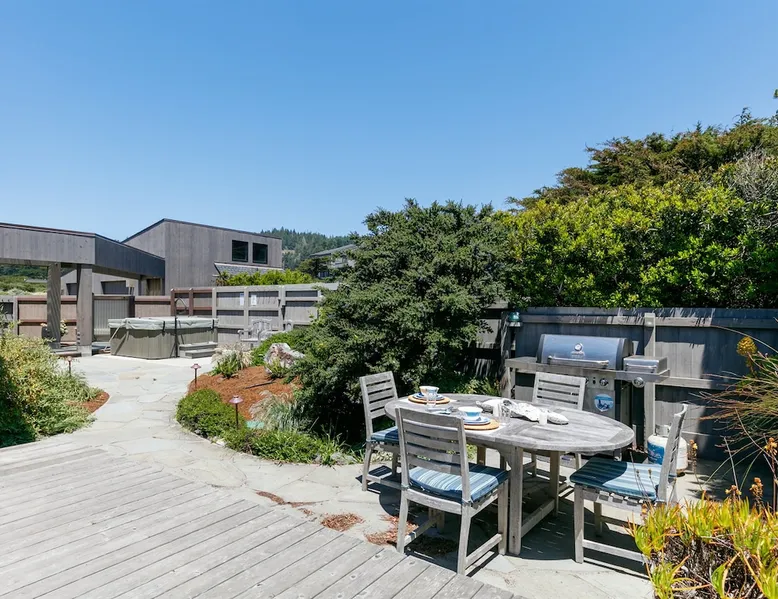Curated amenities make oceanfront Sea Ranch Abalone Bay a perfect romantic escape, girls' weekend, golfer's getaway, gentleman's holiday, or relaxing retreat for the family. Ample workspace, Pre-planning support, and a concierge assure you have the experience of a lifetime. Guests are required to sign the rental agreement within 24 hours and to provide a $500 security credit hold. Added Pet fee of $80 for 1 dog, $160 for 2 dogs. Host welcomes all and does not discriminate against anyone. The space Sea Ranch Abalone Bay: An Oceanfront Architectural Gem Welcome to Abalone Bay, a stunning oceanfront retreat perfect for a romantic escape, a golfer's getaway, a girls' weekend, a gentleman's holiday, or a relaxing family holiday. With curated amenities, dedicated workspaces, and pre-planning support, we ensure your stay is an experience of a lifetime. This classic Sea Ranch home was recently remodeled by famed architect Obie Bowman, blending unique design with modern comfort. The Space Step inside this 3-bedroom, 2-bathroom home and be greeted by panoramic ocean views from the main living area. Designed to comfortably sleep six guests, the house offers a serene, stylish home base for your coastal adventures. * Bedrooms: Features three tranquil bedrooms with one King bed and two Queen beds, complete with fresh linens and extra blankets for your comfort. The principal bedroom opens to the courtyard with a hot tub. * Bathrooms: Unwind in two spa-like bathrooms, one with a bathtub/shower combo and another with a luxurious Roman tub and shower. * Living & Entertainment: The open-plan living space connects seamlessly to a well-equipped kitchen. Relax by the gas fireplace, enjoy the 65" HDTV with premium streaming services, or challenge someone to a match on the ping pong table in the game room. * Work & Connect: A dedicated workspace, strong 920 Mbps WiFi, and a wireless printer make this an ideal spot for remote work. * Gourmet Kitchen: The kitchen is a chef's delight, fully equipped with a gas stove, convection oven, multiple coffee makers (drip, espresso, French press), an Instapot, and all the cookware you need to prepare delicious meals. * Garage: When not used for parking your car out of the elements, the space includes stored lounge chairs, basketball and air pump, outdoor Connect-4 game, child/pet gate, yoga mat, kick boards, pickleball paddles and balls, high chair, and folding ping pong table with rackets and balls. Guest Access You will have private access to the entire home, including the beautifully landscaped and fully fenced private courtyard, where you can soak in the hot tub. Your access also includes one garage space equipped with 120v & 240v plugs for EV charging (please bring your own cord). As our guest, you can also enjoy the shared Sea Ranch community amenities, including Sea Ranch Golf Links, outdoor pools and tennis/pickleball courts. Visitor and parking passes are required and will be provided. The Neighborhood Abalone Bay is a true waterfront property with private beach access, allowing you to step out and explore the tide pools and coastline. The Sea Ranch community offers 50 miles of natural trails winding from the ocean bluffs, through grassy meadows, and into majestic redwood forests. Guests also have access to three recreation centers, each with a pool, tennis courts, and saunas. This property is immersed in a vibrant coastal environment. You may encounter local wildlife, including deer, raccoons, and various birds. Please be aware that you are in a natural setting. Getting Around Parking is available for one vehicle in the garage, with an additional uncovered carport. The community is best explored on foot via the extensive trail network, but a car is recommended for visiting nearby towns and attractions. House Rules To ensure a wonderful stay for you and a peaceful environment for our neighbors, we ask that you observe the following rules: * The primary guest must be at least 25 years of age and be present for the entire stay. * Maximum occupancy is strictly limited to 6 persons, including infants and children. * No house parties, events, or third-party bookings (including Airbnb Experiences). * No smoking or vaping is permitted anywhere on the property. * Quiet hours are from 9:00 p.m. to 7:00 a.m. * A maximum of two dogs is welcome. A pet fee of $80 for one dog or $160 for two will be added. Please pick up after your pets to avoid a $100 fine. * Please respect HOA rules, including light restrictions and a ban on drones. Important Information * Booking Requirement: Your booking is finalized upon signing our rental agreement and providing a copy of your valid photo ID within 48 hours. A $500 security hold on a credit card is required prior to arrival. * Safety First: The property is located on an ocean bluff with an unfenced 30-foot drop to the rocks below. Please supervise children at all times, especially near the cliffs and ocean. Sneaker waves can be dangerous. * Construction Notice: A new home is under construction next door (expected completion Feb. 2026). Potential for construction noise may exist during daytime hours. * No Air Conditioning: This home does not have central A/C. We provide ventilation fans to supplement the natural sea breezes that keep the house cool and comfortable. * Property Systems: The house operates on a septic system; please do not flush anything other than toilet paper. A full-house generator ensures you have power during any outages (generator does not heat the hot tub). * Security: For your safety and to ensure adherence to policies, security cameras are installed on the exterior of the property, monitoring the driveway and entryways only. * Check-in/Out: Check-in is at 4:00 PM, and check-out is at 11:00 AM. We are an inclusive host and welcome all. We strongly recommend purchasing trip insurance for your peace of mind. Registration Number: 1596/LIC25-0230 Guest access Guests have private access to the whole house, private courtyard