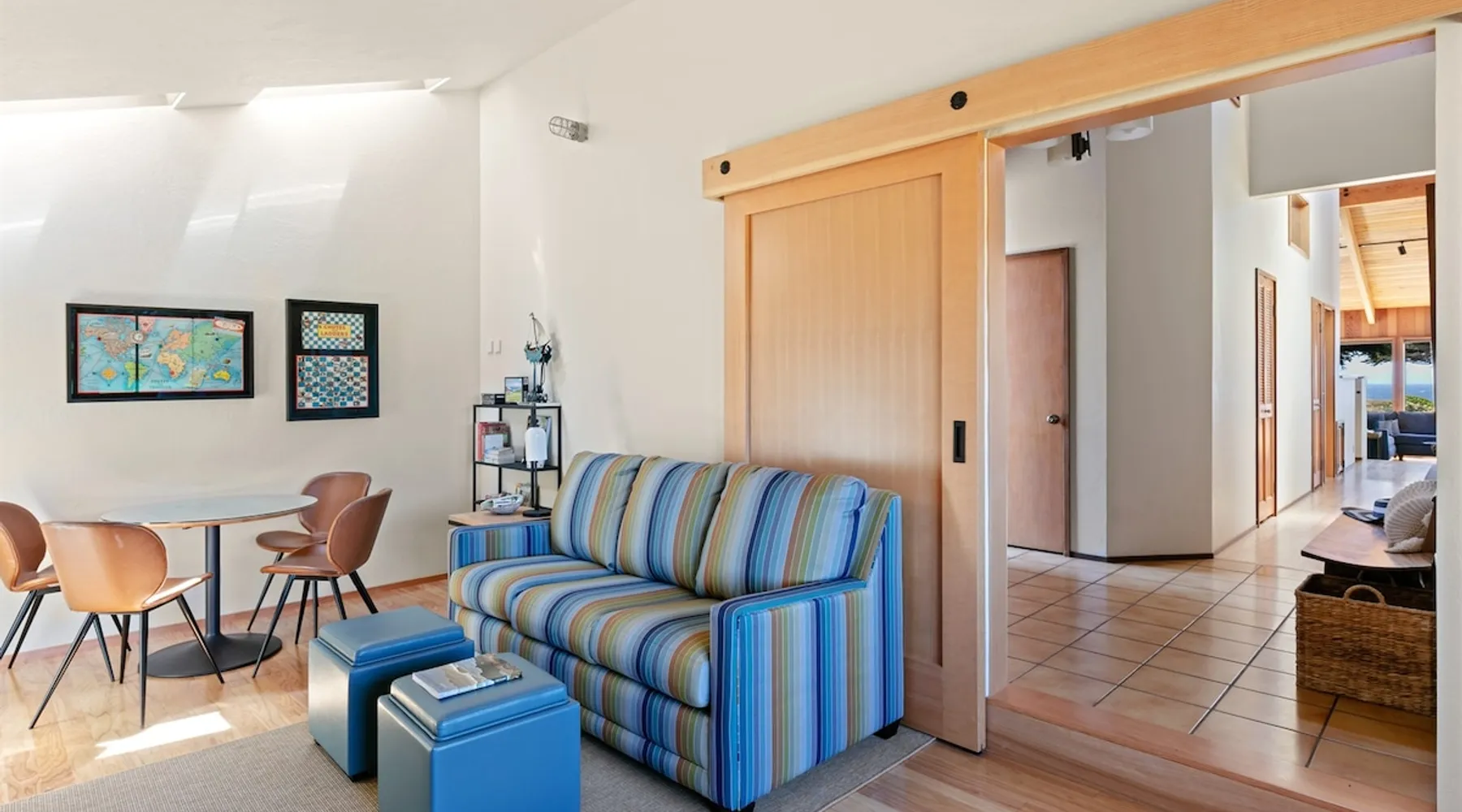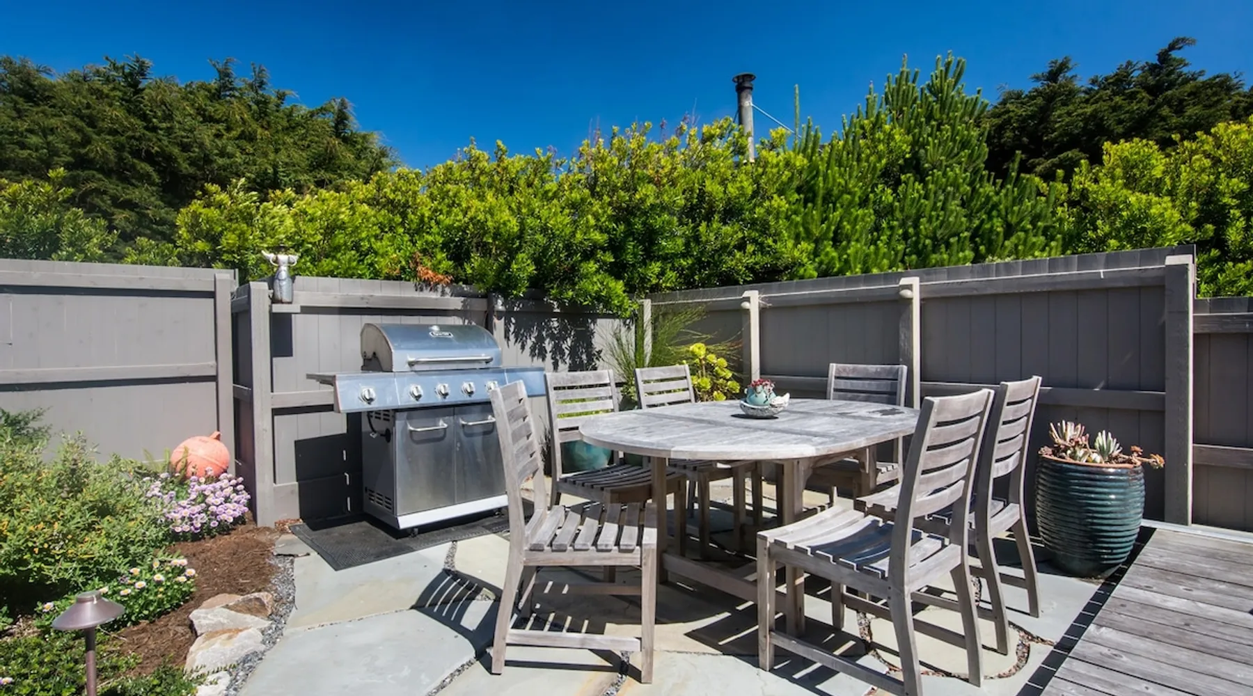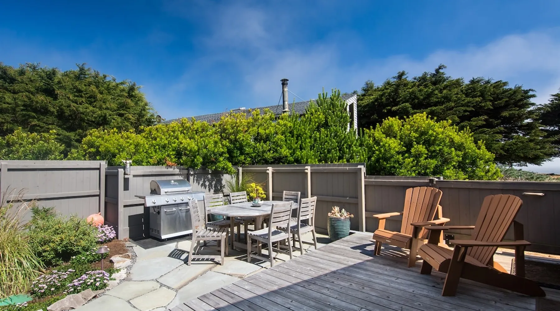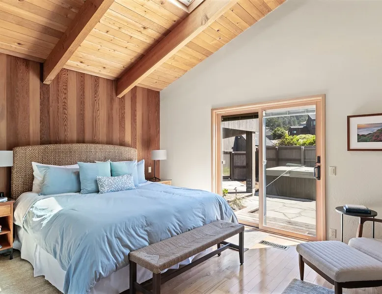 Curated amenities make oceanfront Sea Ranch Abalone Bay a perfect romantic escape, girls' weekend, golfer's getaway, gentleman's holiday, or relaxing retreat for the family. Ample workspace, Pre-planning support, and a concierge assure you have the experience of a lifetime. Guests are required to sign the rental agreement within 24 hours and to provide a $500 security credit hold. Added Pet fee of $80 for 1 dog, $160 for 2 dogs. Host welcomes all and does not discriminate against anyone. The space Sea Ranch Abalone Bay: An Oceanfront Architectural Gem Welcome to Abalone Bay, a stunning oceanfront retreat perfect for a romantic escape, a golfer's getaway, a girls' weekend, a gentleman's holiday, or a relaxing family holiday. With curated amenities, dedicated workspaces, and pre-planning support, we ensure your stay is an experience of a lifetime. This classic Sea Ranch home was recently remodeled by famed architect Obie Bowman, blending unique design with modern comfort. The Space Step inside this 3-bedroom, 2-bathroom home and be greeted by panoramic ocean views from the main living area. Designed to comfortably sleep six guests, the house offers a serene, stylish home base for your coastal adventures. * Bedrooms: Features three tranquil bedrooms with one King bed and two Queen beds, complete with fresh linens and extra blankets for your comfort. The principal bedroom opens to the courtyard with a hot tub. * Bathrooms: Unwind in two spa-like bathrooms, one with a bathtub/shower combo and another with a luxurious Roman tub and shower. * Living & Entertainment: The open-plan living space connects seamlessly to a well-equipped kitchen. Relax by the gas fireplace, enjoy the 65" HDTV with premium streaming services, or challenge someone to a match on the ping pong table in the game room. * Work & Connect: A dedicated workspace, strong 920 Mbps WiFi, and a wireless printer make this an ideal spot for remote work. * Gourmet Kitchen: The kitchen is a chef's delight, fully equipped with a gas stove, convection oven, multiple coffee makers (drip, espresso, French press), an Instapot, and all the cookware you need to prepare delicious meals. * Garage: When not used for parking your car out of the elements, the space includes stored lounge chairs, basketball and air pump, outdoor Connect-4 game, child/pet gate, yoga mat, kick boards, pickleball paddles and balls, high chair, and folding ping pong table with rackets and balls. Guest Access You will have private access to the entire home, including the beautifully landscaped and fully fenced private courtyard, where you can soak in the hot tub. Your access also includes one garage space equipped with 120v & 240v plugs for EV charging (please bring your own cord). As our guest, you can also enjoy the shared Sea Ranch community amenities, including Sea Ranch Golf Links, outdoor pools and tennis/pickleball courts. Visitor and parking passes are required and will be provided. The Neighborhood Abalone Bay is a true waterfront property with private beach access, allowing you to step out and explore the tide pools and coastline. The Sea Ranch community offers 50 miles of natural trails winding from the ocean bluffs, through grassy meadows, and into majestic redwood forests. Guests also have access to three recreation centers, each with a pool, tennis courts, and saunas. This property is immersed in a vibrant coastal environment. You may encounter local wildlife, including deer, raccoons, and various birds. Please be aware that you are in a natural setting. Getting Around Parking is available for one vehicle in the garage, with an additional uncovered carport. The community is best explored on foot via the extensive trail network, but a car is recommended for visiting nearby towns and attractions. House Rules To ensure a wonderful stay for you and a peaceful environment for our neighbors, we ask that you observe the following rules: * The primary guest must be at least 25 years of age and be present for the entire stay. * Maximum occupancy is strictly limited to 6 persons, including infants and children. * No house parties, events, or third-party bookings (including Airbnb Experiences). * No smoking or vaping is permitted anywhere on the property. * Quiet hours are from 9:00 p.m. to 7:00 a.m. * A maximum of two dogs is welcome. A pet fee of $80 for one dog or $160 for two will be added. Please pick up after your pets to avoid a $100 fine. * Please respect HOA rules, including light restrictions and a ban on drones. Important Information * Booking Requirement: Your booking is finalized upon signing our rental agreement and providing a copy of your valid photo ID within 48 hours. A $500 security hold on a credit card is required prior to arrival. * Safety First: The property is located on an ocean bluff with an unfenced 30-foot drop to the rocks below. Please supervise children at all times, especially near the cliffs and ocean. Sneaker waves can be dangerous. * Construction Notice: A new home is under construction next door (expected completion Feb. 2026). Potential for construction noise may exist during daytime hours. * No Air Conditioning: This home does not have central A/C. We provide ventilation fans to supplement the natural sea breezes that keep the house cool and comfortable. * Property Systems: The house operates on a septic system; please do not flush anything other than toilet paper. A full-house generator ensures you have power during any outages (generator does not heat the hot tub). * Security: For your safety and to ensure adherence to policies, security cameras are installed on the exterior of the property, monitoring the driveway and entryways only. * Check-in/Out: Check-in is at 4:00 PM, and check-out is at 11:00 AM. We are an inclusive host and welcome all. We strongly recommend purchasing trip insurance for your peace of mind. Registration Number: 1596/LIC25-0230 Guest access Guests have private access to the whole house, private courtyard