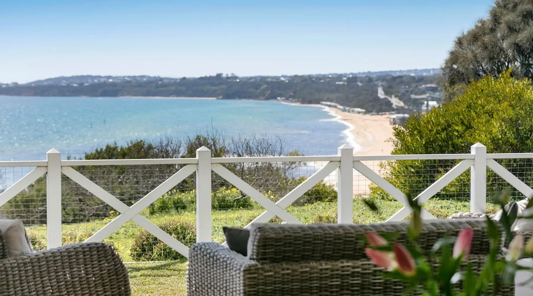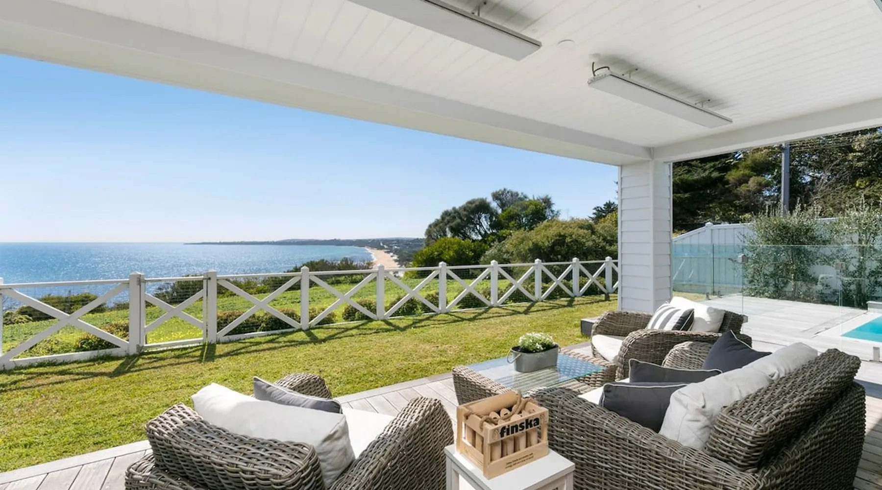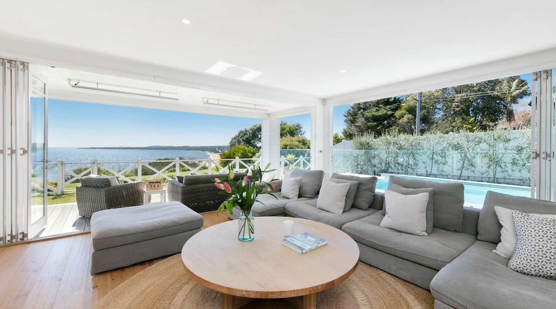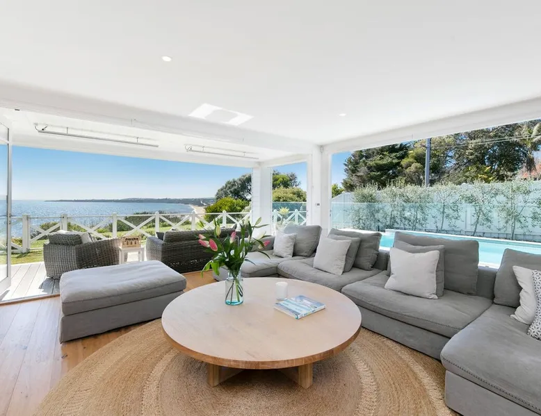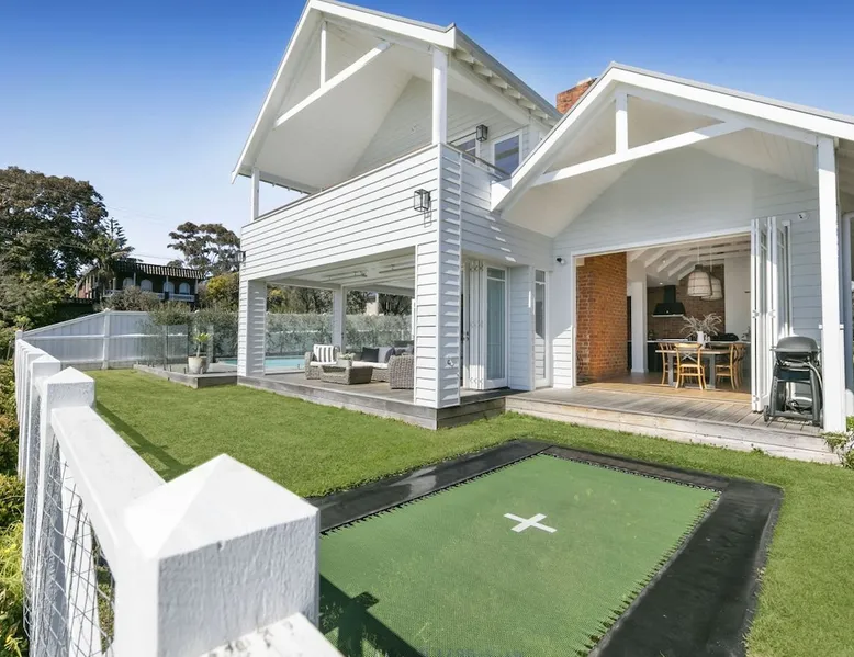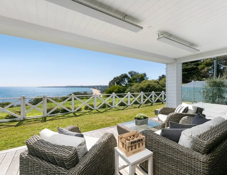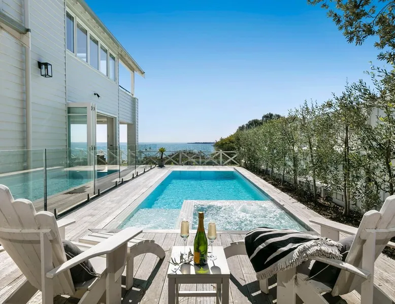 Located in one of Mount Martha's most prestigious streets, this four bedroom coastal house has direct views of the entire iconic South Beach The space Located in one of Mount Martha's most prestigious streets, this four bedroom coastal house has direct views of the entire iconic South Beach. Walk across the road to the beach, South Beach café and onward to Mt Martha village - you will not need your car again if you are keeping things local. Enter the house into open plan area with views over the beach and the bay. Fold back glass doors turns this area into indoor/outdoor depending on the weather. The Living area has large couches, fireplace, Smart Tv with Fetch and sound bar. The living area also opens to Solar heated pool and Gas spa. The pool deck includes patio with couches, lounges and incorporates an inground trampoline BBQ area. Large Kitchen has an Island bench with four stools, all modern appliances, coffee machine, microwave and walk in pantry. This downstairs area is serviced by an inbuilt split system offering cooling and heating as well as in floor hydronic heating. Dining table with views of beach and bay. Two bedrooms are located downstairs, along with family bathroom , office, laundry with washing machine and dryer, and a second living area/ kids retreat with couches, gas fireplace and wall mounted Smart Tv. There are a further two bedrooms upstairs including Master, and a third living area/ parent retreat with gas fireplace, air conditioning, large couch, wall mounted Smart Tv and opening to undercover balcony with panoramic views of Bay, beaches and City. There is a two car garage and basketball ring and key at side of house. A Gymnasium is a welcome addition for guests to use. The house has wifi, pets will be considered on application Bedroom Configuration Upstairs - Master Bedroom 1 - King Bed - air conditioning - Ensuite - Shower, toilet and dual sinks - Bedroom 4 - Queen Bed + Double Bed + Single Bed - air conditioning - Separate toilet Downstairs - Bedroom 2 - Queen Bed - Ceiling Fan - Bedroom 3 - Queen Bed - Ceiling fan and ensuite with shower and toilet - Family Bathroom- Shower, separate Bath, toilet and dual sinks Pool and Spa area - Bathroom - shower, toilet and sink