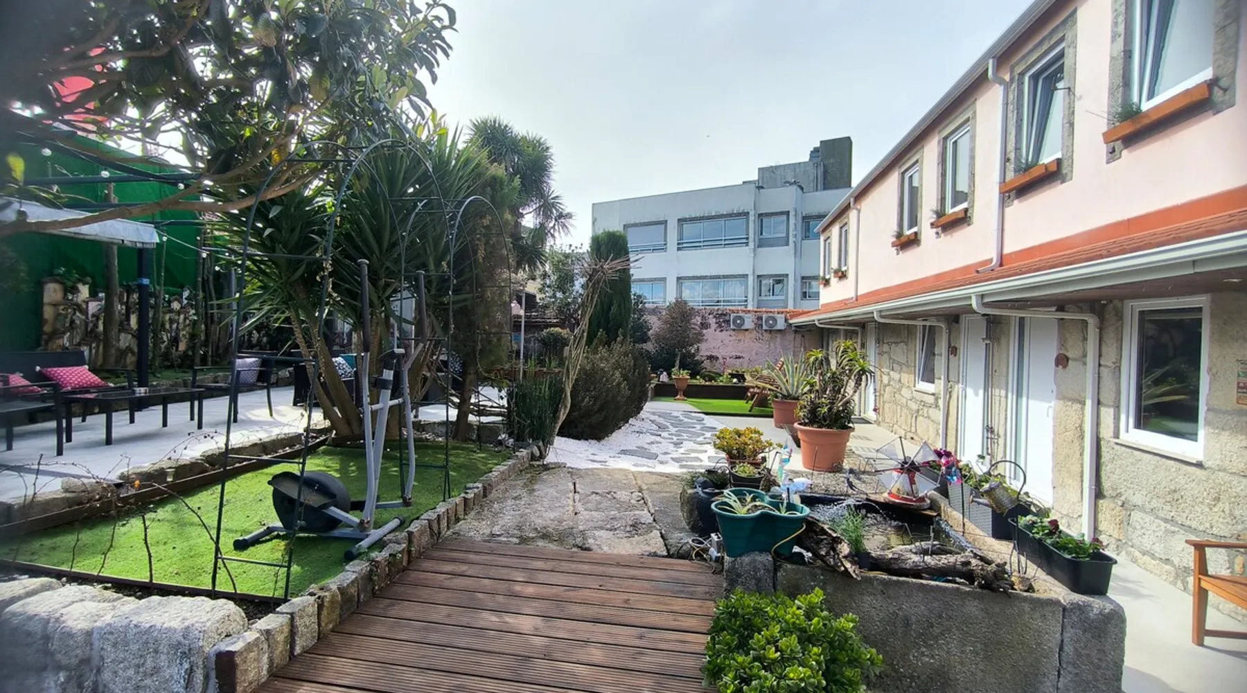 Located between the metro stations of Faria Guimarães and Marquês, in the city centre, this property allows access to the heart of the city of Porto in just over 2 minutes. Here you will have the opportunity to relax and enjoy the tranquility of the countryside, while enjoying the city life. With a welcoming atmosphere and a fantastic outdoor space equipped with laundry, barbecue, urban vegetable garden, games and leisure spaces, you will enjoy an experience that will make you feel at home The space Private studio with kitchen and outdoor living area. Common areas Laundry, vegetable garden, barbecue and garden Our studios are non-smoking environments. Air-conditioned studio with garden. The apartment has a master bedroom, where you will find a cozy double bed, a TV on the wall, a small dining table and plenty of storage. The kitchen has everything you need to prepare a meal, including an oven and a microwave. In the WC, you will find a sizeable shower with luxurious hydromassage jets. A deposit (security deposit) of EUR 200 is required upon arrival. This deposit is fully refundable upon check-out, provided there is no damage to the property. CHILDREN UNDER 8 YEARS CANNOT STAY IN THE HOUSE. There is no capacity for extra beds in the room. Minimum age for check-in is 18 years old. Check-in 15:00 - 00:00 Check-out 8:00 - 11:00 You must show a photo ID and credit card upon check-in. It is necessary to inform the property in advance of your arrival time. No pets allowed No parties allowed Guest access Common spaces Laundry, vegetable garden, BBQ, jacuzzi and garden. Laundry Open from Monday to Saturday from 9:30 am to 7:30 pm. Closed on Sundays. The use of the washing machine is subject to a payment of 3€/wash (detergent included) Jacuzzi The Jacuzzi is closed from October 1 to April 30 Hours of Operation Monday to Friday - from 2:00 pm to 7:30 pm Saturday and Sunday - 10:00 to 14:00 Price/person: 5 €, (Water, cleaning and disinfection) maximum 1h00m Access rules: The use of the jacuzzi must be booked at least 24 hours in advance of the time of use, subject to the availability of the jacuzzi. Other things to note Early check-in (depending on availability): check-in from 11:30h - 15 10€ Late check-out (depending on availability): Check-out after 11.30h until 14.00h: 10€ Check-out after 11.30h until 17.00h: 25€ Check-out after 17.00h is 100% of the stay plus Municipal Tourist Tax. Registration Details 116354/AL