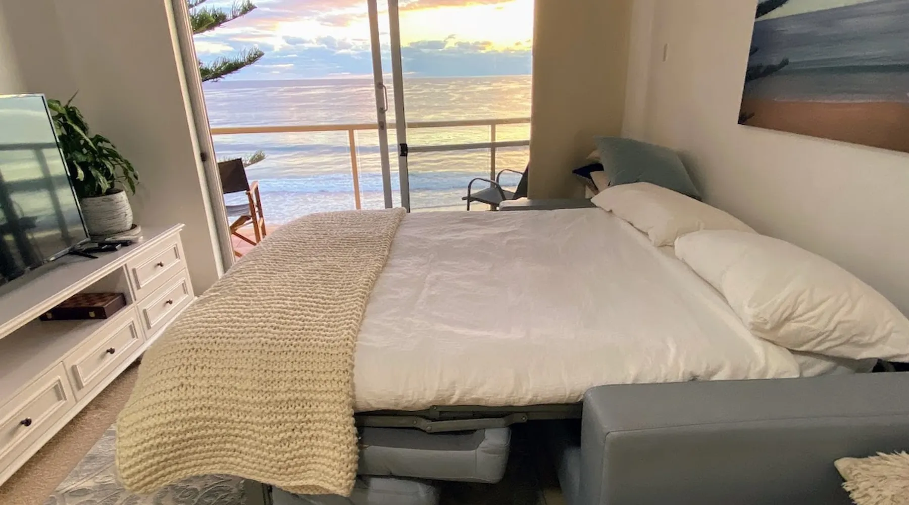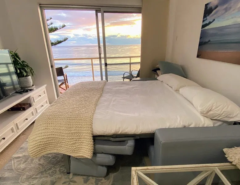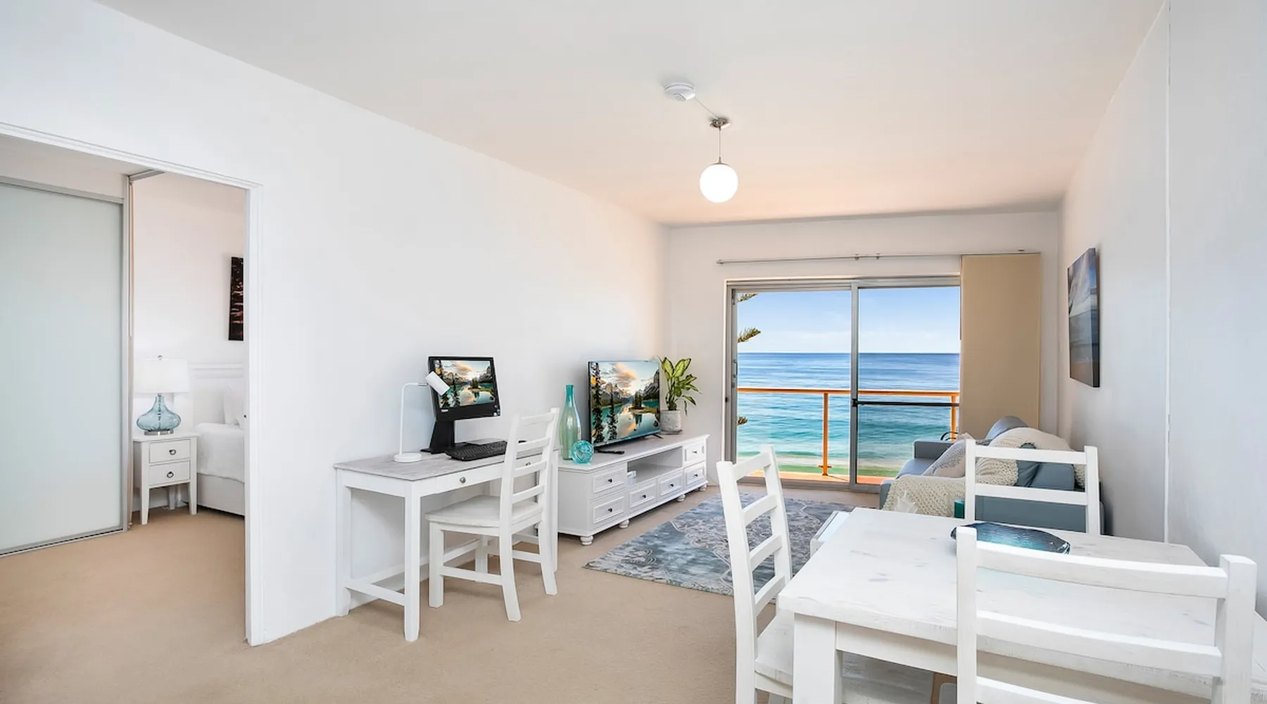 Wake up to the ocean and escape to a beach-front life. Enjoy spectacular views of the beach from almost everywhere in the unit; it's the perfect destination to unwind from life's pressures. Watch the waves come in as you cook in a full-size kitchen. Or take a stroll to one of the nearby restaurants and cafes. Spend the day swimming at the beach or paddleboarding on the lagoon and spend the evening snuggled up with glass in hand, listening to the waves. 3rd floor with stair access (no lift) The space Watch the sun rising over the ocean from the king-sized bed. Delight in the magic of watching the waves roll onto the beach while dining on the balcony. Enjoy all this with at-home amenities, air conditioning, a computer, a smart TV, and unlimited WiFi. Guest access The entire unit is yours to enjoy. This unit is bathed with views. The only places you can't see the ocean from is the shower (sorry:-). Other things to note Monthly discounts are available for bookings of 21 nights or more. Registration Details PID-STRA-381