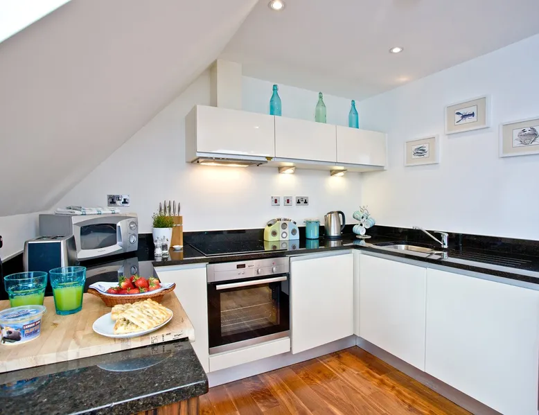 A stylish apartment set in an idyllic location in Watergate Bay. The space A stylish apartment set in an idyllic location in Watergate Bay.. All on the Second Floor: Living room/kitchen: Freeview TV, Sofa Bed (Double) (One Adult Only), Sofa Bed (Double) (One Adult Only), Breakfast Bar, Electric Oven, Electric Hob, Microwave, Fridge/Freezer, Wine Cooler, Dishwasher, Washer Dryer Bedroom: Super Kingsize (6ft) Bed Bathroom: Bath With Shower Over, Heated Towel Rail, Toilet. Heating, electricity, bed linen, towels and Wi-Fi included. Garden with barbecue and outdoor shower (shared with other properties on-site). Storage for surf equipment available. Allocated parking for 1 car. Electric vehicle charging point (£50 for 7 nights, payable to owner on arrival). No smoking. Please note: Dogs must be kept on a lead in the grounds.. The Whitehouse is an impressive development on Cornwall’s north coast, just a few minutes from the award-winning beach of Watergate Bay. 9 The Whitehouse is a modern penthouse apartment, has one bedroom, with two sofa beds suitable for a further two guests in the spacious living area, making it ideal for small families and couples alike. It’s open plan living and dining space lends itself to spending quality time with someone special. If you don’t fancy venturing out, you’ll find everything you need for a cosy night in, including the all-important inbuilt wine cooler, a saviour at the end of a long day at the beach. Conveniently located between Padstow and Newquay, Watergate Bay has everything that you could need for an amazing beach experience. With a variety of extreme sports, including surfing, mountain boarding, kitesurfing, traction kiting and wave skiing are just some of the adrenaline fuelled activities available from The Extreme Sports Academy, located right on the beach. Within minutes of leaving 9 The Whitehouse you can be in one of the best surfing spots in Cornwall, offering the most beautiful of North Cornwall’s seascapes. Some nearby sights include, The Eden Project near St Austell, and for natural wonders there are the Bedruthan Steps, Gurnards Head and Kynance Cove. Free WiFi Can comfortably fit up to 4 people
