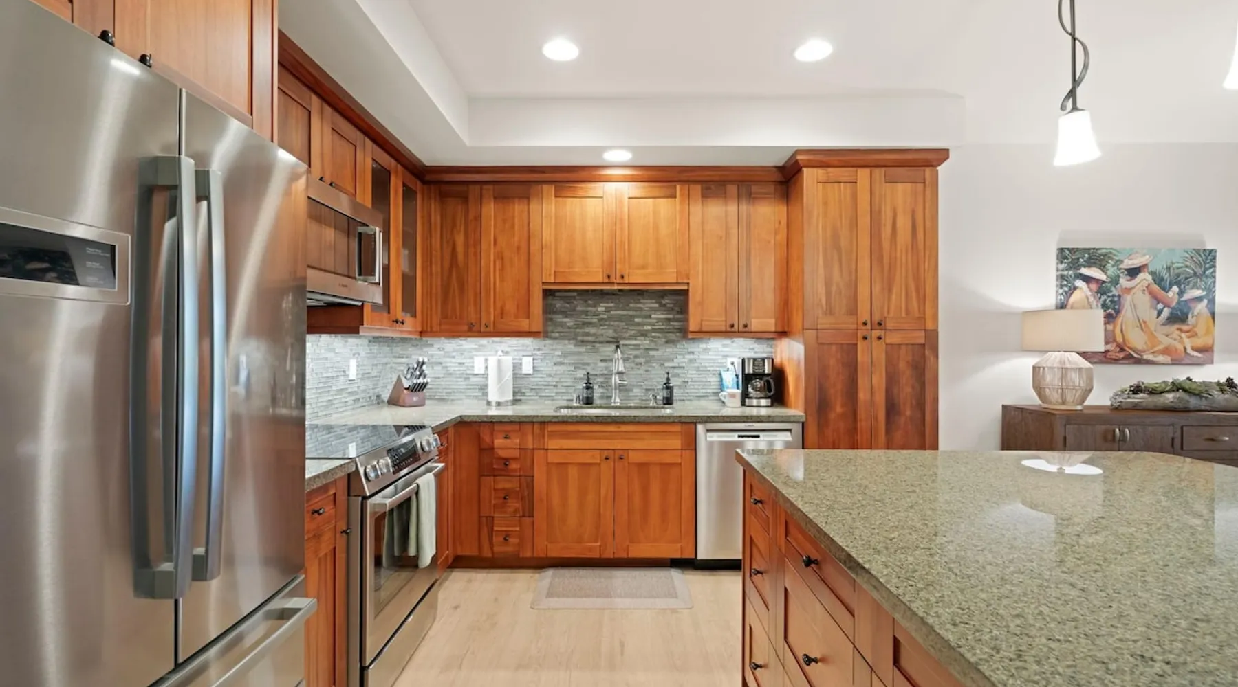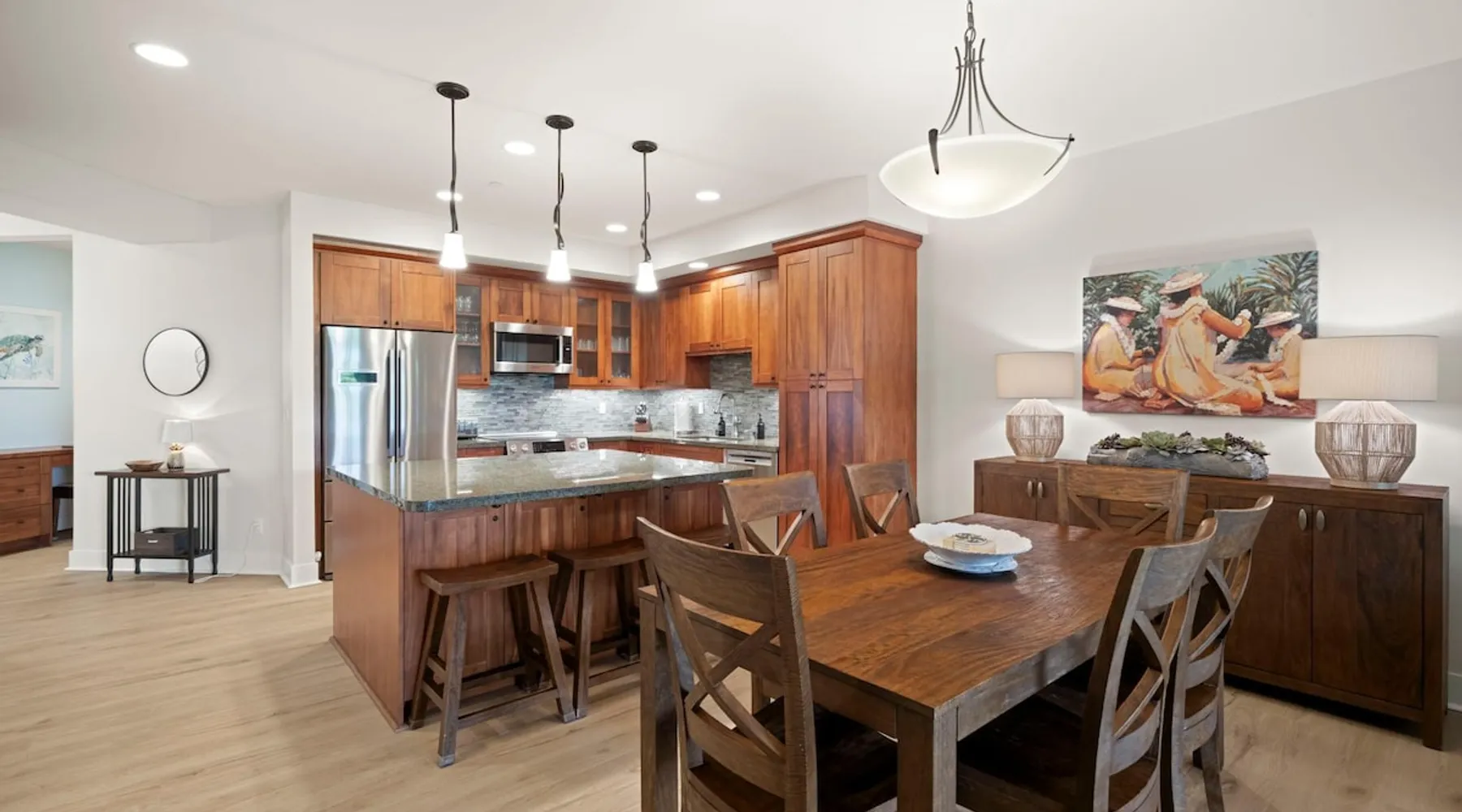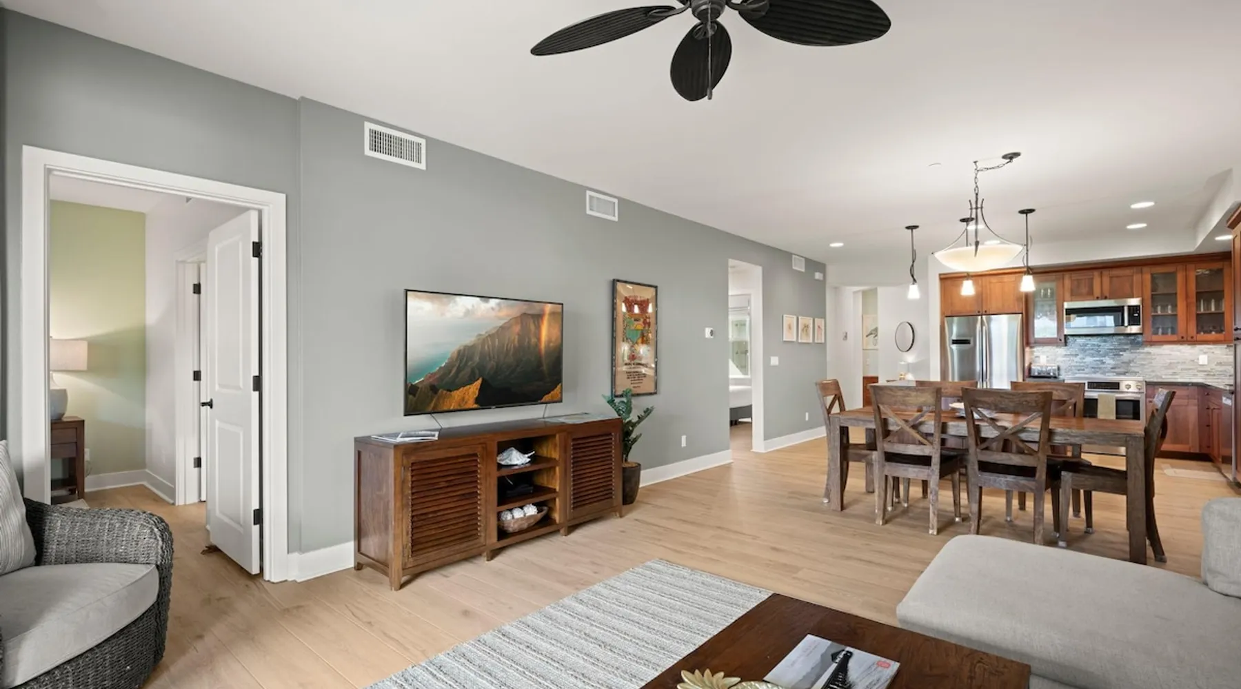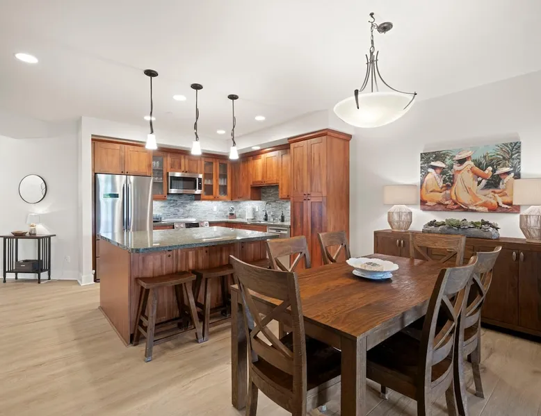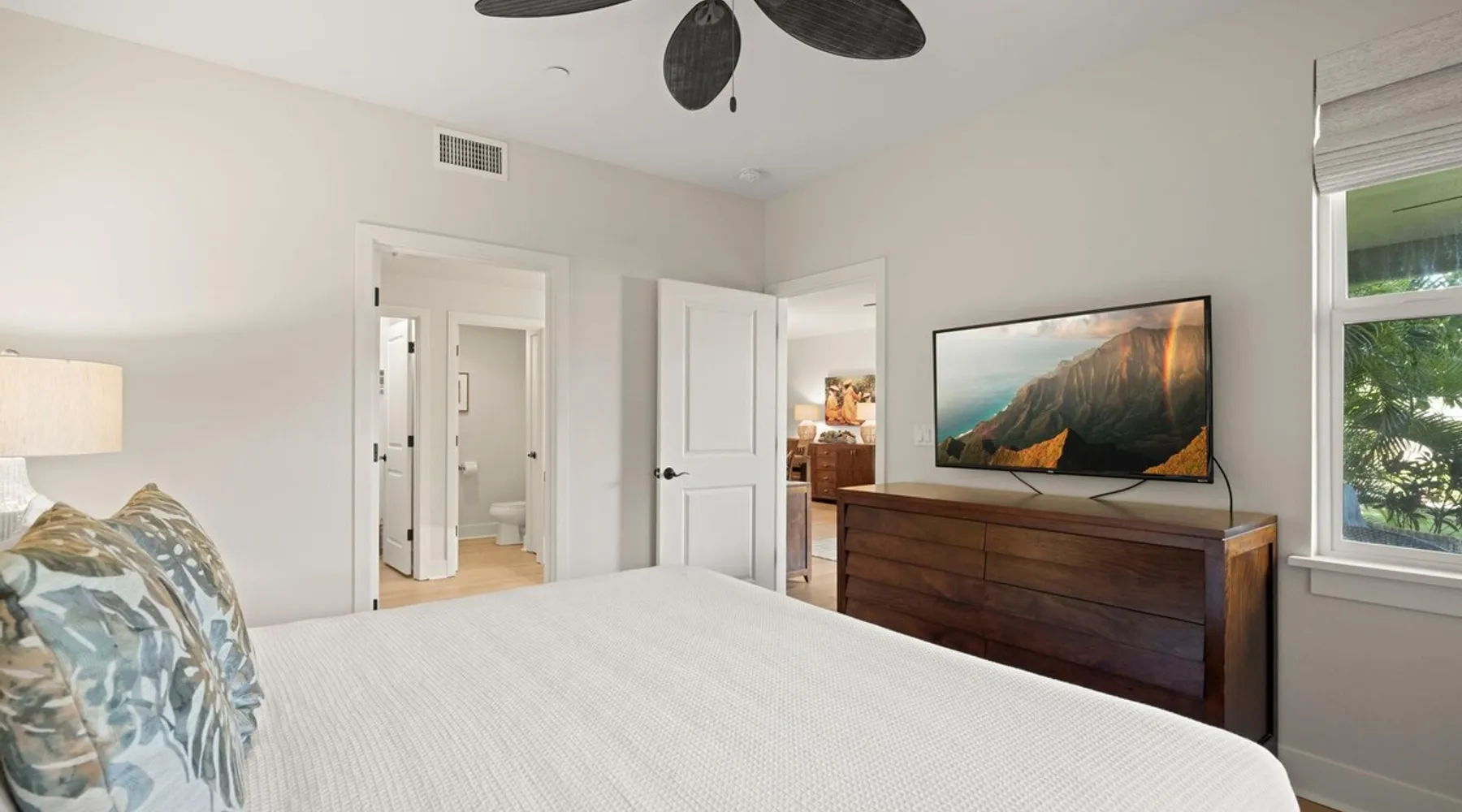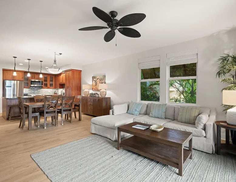 Hawaii Life Rental Presents Pili Mai 5D - Luxury three bedroom, three bathroom condo. Centrally located on Kauai’s sunny south side! The space Make yourself at home in this luxury three bedroom, three bathroom condo located on Kauai’s sunny south side! A generously open-floor plan allows for abundant natural lighting and air flow throughout the entire home. The spacious living room features comfortable furnishings and a large entertainment center with flat-screen, cable TV. Plentiful windows offer cooling trade-winds and display lush greenery with beautiful mountain views. Step through sliding glass doors to a covered lanai which includes a dining area and lounge space. Enjoy a morning cup of coffee, afternoon drink, or dinner surrounded by colorful, tropical foliage! The living room flows into the appointed dining area with a lovely wood table and chairs for six. You will find everything you need to create a gourmet meal at home in this fully-stocked kitchen, equipped with granite countertops, stainless appliances, bountiful cabinet and counter space, and large center island. Wonderfully bright and modern, anyone will feel like a five-star chef here! The Master Bedroom features a king size bed, generous walk-in closet with wardrobe, and colorful garden views. The spacious ensuite bathroom includes a double vanity and walk-in, glass shower. The Second Bedroom also features a king size bed, ample closet space, and small dresser. The private ensuite bathroom includes a full bathtub and shower. The Third Bedroom offers a Queen Bed, full closet, and dresser. The third bathroom is a shared full bath with a combination bathtub and shower. All three bedrooms include Cable TV, Ceiling Fans, and double bedside tables with reading lights. Adjacent to the second bedroom is an executive office area with desk, chair, additional storage, and enough privacy to get work done! Contemporary and tasteful island decor creates a tropical vibe throughout the house. The perfect balance of luxury and comfort. This unit is single-level plan so no need to worry about carrying luggage up any stairs! Additional amenities include Washer and Dryer, Wifi, Hair dryers, iron and ironing board, parking, one in-room safe, telephone and beach essentials. Indoor Features: -King bedroom with en suite, walk in shower -King bedroom with ensuite, bathtub and shower -Queen bedroom -Hall bath with tub/shower combo -Washer/Dryer in unit -Central air conditioning Pili Mai is Kauai's newest resort development and is located within the famous Kiahuna Golf Course. Guest’s have access to the resort’s community recreation center with gas BBQ's, outdoor pool, children's pool, and spa, sun deck with lounge chairs and umbrellas, outdoor showers, covered dining and lounge area, and indoor fitness center. Centrally located, everything you need is within walking distance at the Poipu Shopping Village which offers restaurants, coffee shops, small convenience stores, shopping, and entertainment! Poipu Beach Park is just over a mile away and is an ideal location to spend a day snorkeling and relaxing. ***Disclosure: As of Aug 19, 2022 a new project is underway approximately. 0.6 miles away which guests may hear noise from machinery & construction. Hawaii Life Rentals is a locally owned, licensed real estate company with rentals on Kauai, Maui, Oahu, and Hawaii. We offer on-island personal assistance and Concierge services. Rates do not include taxes, cleaning and applicable fees. Hawaii Life/VRBO bookings: Guests must sign a rental contract within 48 hours of booking to confirm the reservation. TA-097-841-3568-01 TMK- Registration Details 280140330311, TA-097-841-3568-01