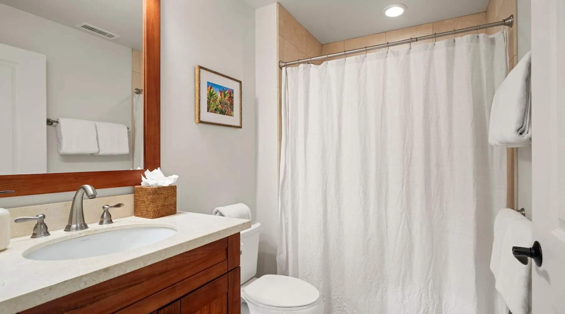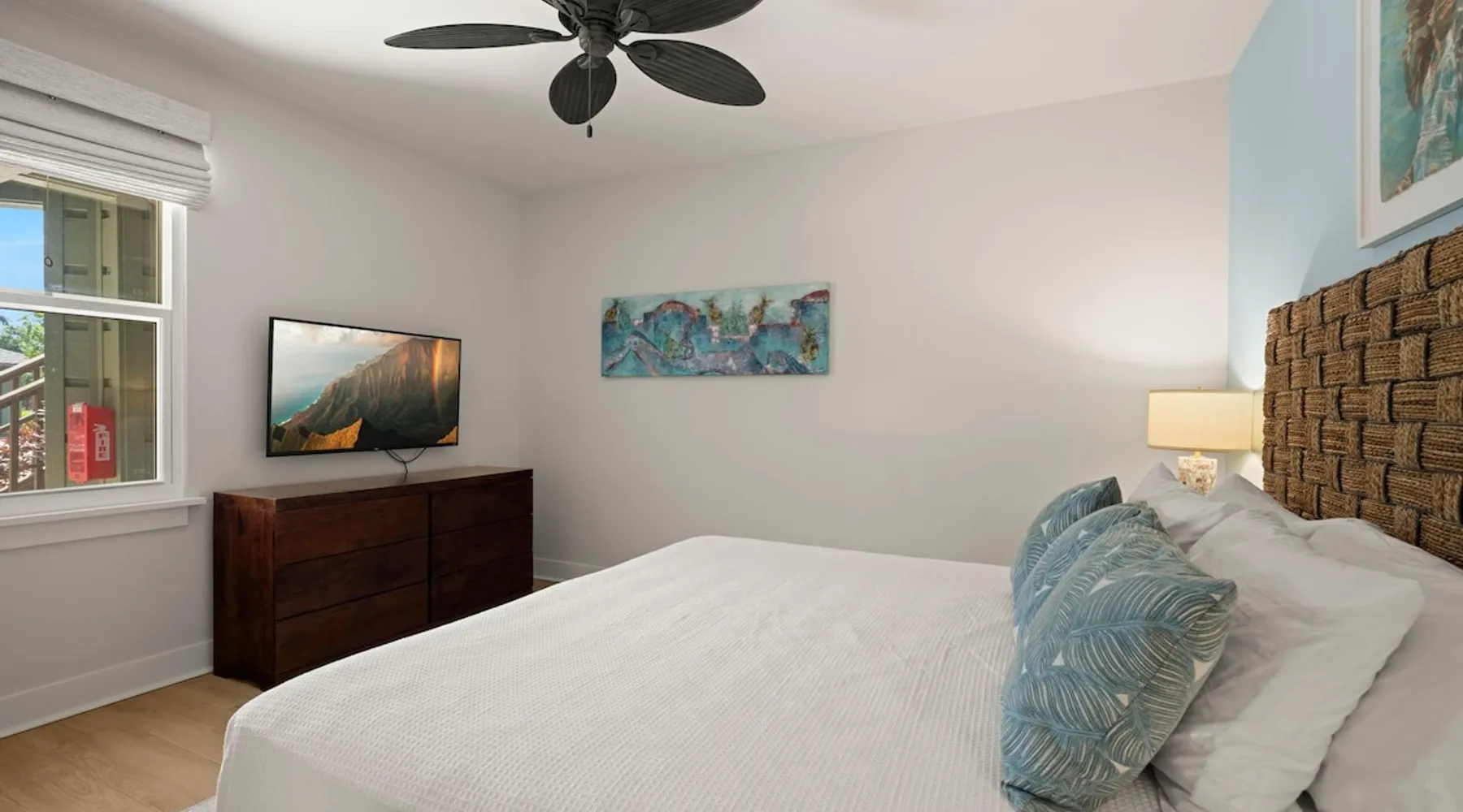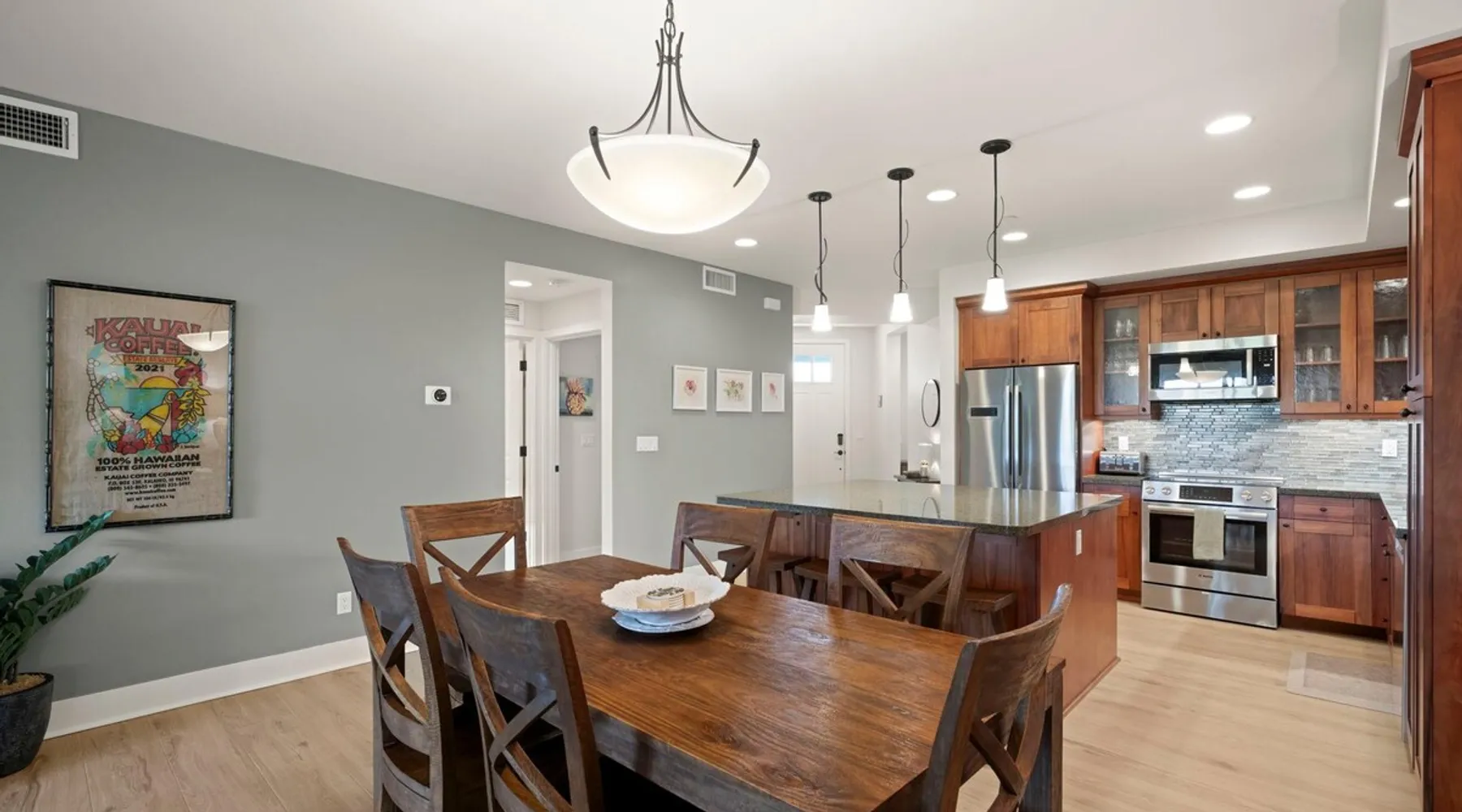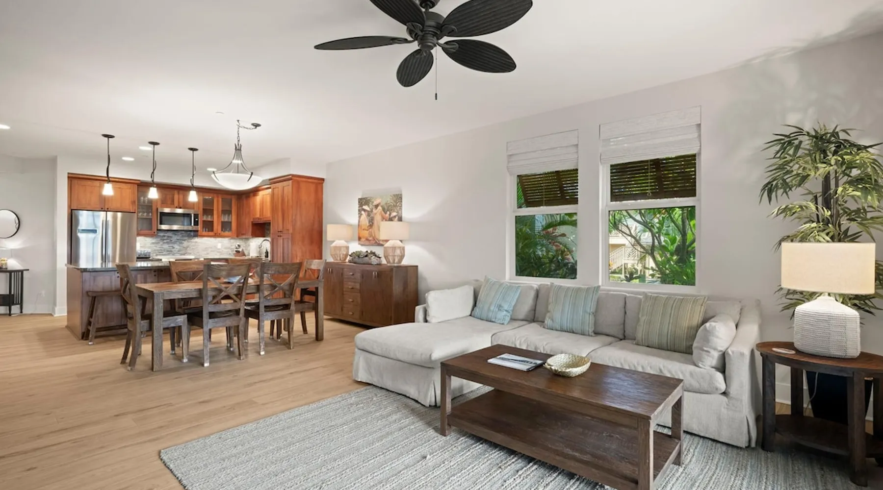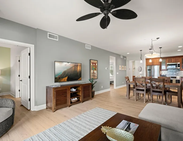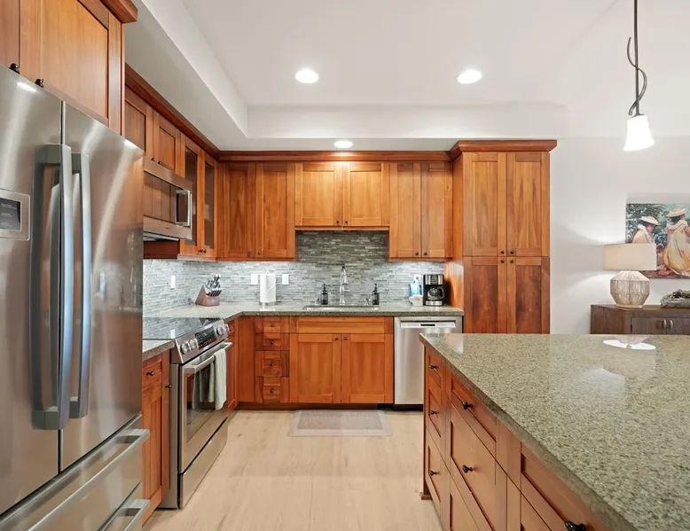 Hawaii Life Rental Presents Pili Mai 5D - Luxury three bedroom, three bathroom condo. Centrally located on Kauai’s sunny south side! The space Make yourself at home in this luxury three bedroom, three bathroom condo located on Kauai’s sunny south side! A generously open-floor plan allows for abundant natural lighting and air flow throughout the entire home. The spacious living room features comfortable furnishings and a large entertainment center with flat-screen, cable TV. Plentiful windows offer cooling trade-winds and display lush greenery with beautiful mountain views. Step through sliding glass doors to a covered lanai which includes a dining area and lounge space. Enjoy a morning cup of coffee, afternoon drink, or dinner surrounded by colorful, tropical foliage! The living room flows into the appointed dining area with a lovely wood table and chairs for six. You will find everything you need to create a gourmet meal at home in this fully-stocked kitchen, equipped with granite countertops, stainless appliances, bountiful cabinet and counter space, and large center island. Wonderfully bright and modern, anyone will feel like a five-star chef here! The Master Bedroom features a king size bed, generous walk-in closet with wardrobe, and colorful garden views. The spacious ensuite bathroom includes a double vanity and walk-in, glass shower. The Second Bedroom also features a king size bed, ample closet space, and small dresser. The private ensuite bathroom includes a full bathtub and shower. The Third Bedroom offers a Queen Bed, full closet, and dresser. The third bathroom is a shared full bath with a combination bathtub and shower. All three bedrooms include Cable TV, Ceiling Fans, and double bedside tables with reading lights. Adjacent to the second bedroom is an executive office area with desk, chair, additional storage, and enough privacy to get work done! Contemporary and tasteful island decor creates a tropical vibe throughout the house. The perfect balance of luxury and comfort. This unit is single-level plan so no need to worry about carrying luggage up any stairs! Additional amenities include Washer and Dryer, Wifi, Hair dryers, iron and ironing board, parking, one in-room safe, telephone and beach essentials. Indoor Features: -King bedroom with en suite, walk in shower -King bedroom with ensuite, bathtub and shower -Queen bedroom -Hall bath with tub/shower combo -Washer/Dryer in unit -Central air conditioning Pili Mai is Kauai's newest resort development and is located within the famous Kiahuna Golf Course. Guest’s have access to the resort’s community recreation center with gas BBQ's, outdoor pool, children's pool, and spa, sun deck with lounge chairs and umbrellas, outdoor showers, covered dining and lounge area, and indoor fitness center. Centrally located, everything you need is within walking distance at the Poipu Shopping Village which offers restaurants, coffee shops, small convenience stores, shopping, and entertainment! Poipu Beach Park is just over a mile away and is an ideal location to spend a day snorkeling and relaxing. ***Disclosure: As of Aug 19, 2022 a new project is underway approximately. 0.6 miles away which guests may hear noise from machinery & construction. Hawaii Life Rentals is a locally owned, licensed real estate company with rentals on Kauai, Maui, Oahu, and Hawaii. We offer on-island personal assistance and Concierge services. Rates do not include taxes, cleaning and applicable fees. Hawaii Life/VRBO bookings: Guests must sign a rental contract within 48 hours of booking to confirm the reservation. TA-097-841-3568-01 TMK- Registration Details 280140330311, TA-097-841-3568-01