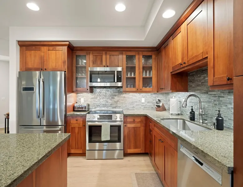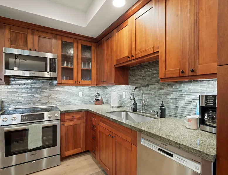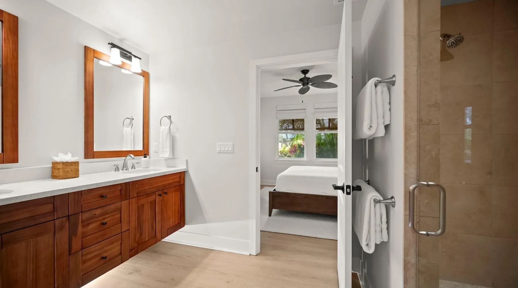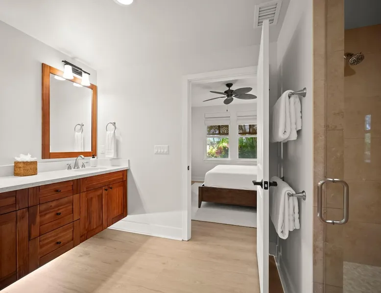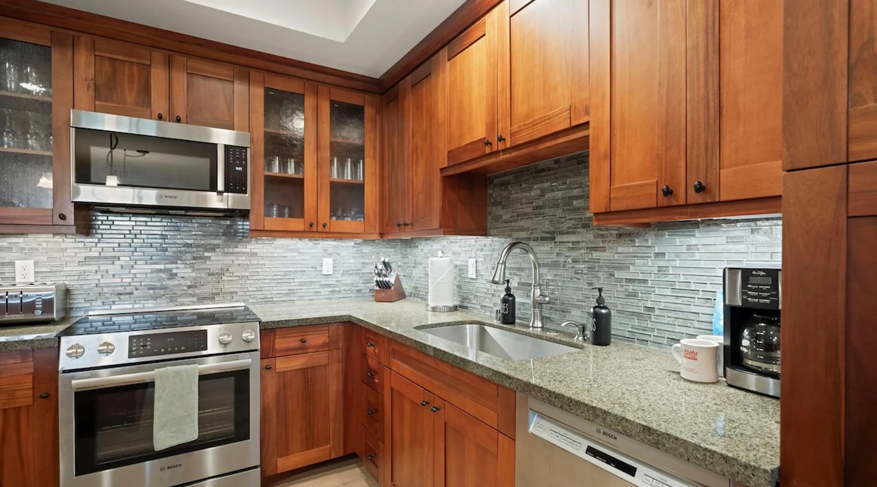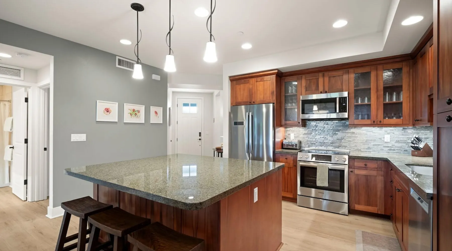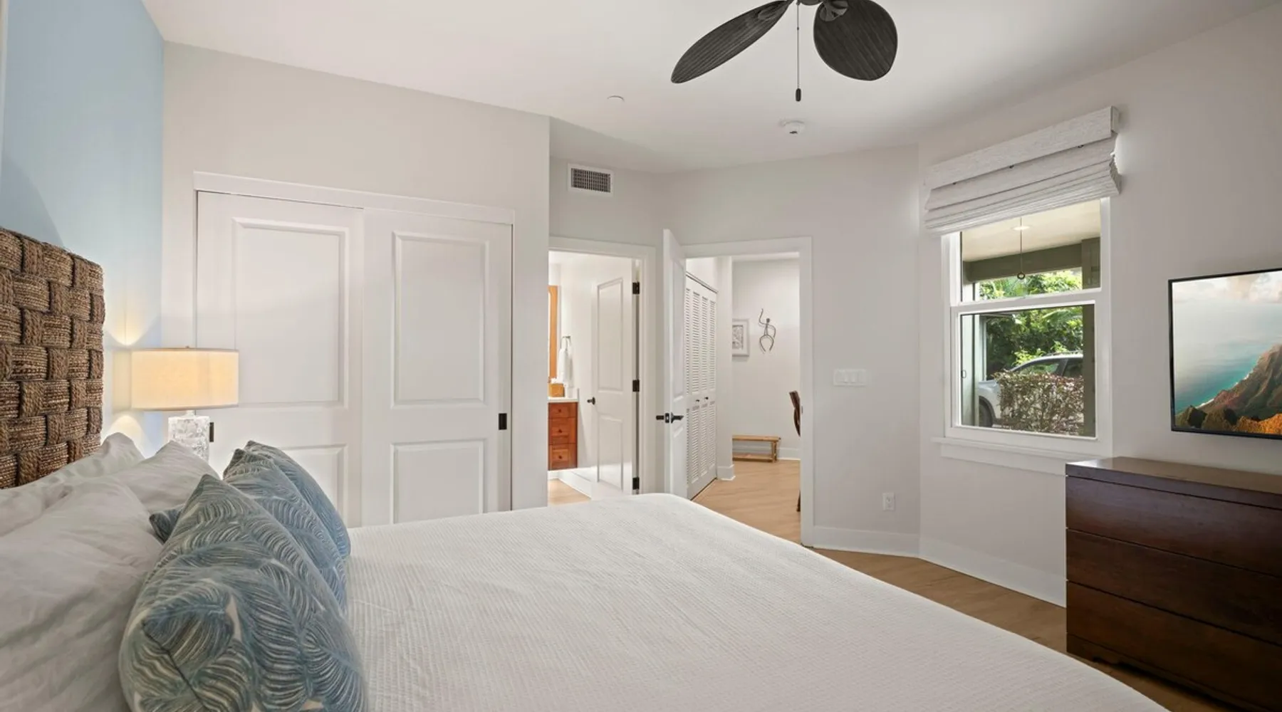 Hawaii Life Rental Presents Pili Mai 5D - Luxury three bedroom, three bathroom condo. Centrally located on Kauai’s sunny south side! The space Make yourself at home in this luxury three bedroom, three bathroom condo located on Kauai’s sunny south side! A generously open-floor plan allows for abundant natural lighting and air flow throughout the entire home. The spacious living room features comfortable furnishings and a large entertainment center with flat-screen, cable TV. Plentiful windows offer cooling trade-winds and display lush greenery with beautiful mountain views. Step through sliding glass doors to a covered lanai which includes a dining area and lounge space. Enjoy a morning cup of coffee, afternoon drink, or dinner surrounded by colorful, tropical foliage! The living room flows into the appointed dining area with a lovely wood table and chairs for six. You will find everything you need to create a gourmet meal at home in this fully-stocked kitchen, equipped with granite countertops, stainless appliances, bountiful cabinet and counter space, and large center island. Wonderfully bright and modern, anyone will feel like a five-star chef here! The Master Bedroom features a king size bed, generous walk-in closet with wardrobe, and colorful garden views. The spacious ensuite bathroom includes a double vanity and walk-in, glass shower. The Second Bedroom also features a king size bed, ample closet space, and small dresser. The private ensuite bathroom includes a full bathtub and shower. The Third Bedroom offers a Queen Bed, full closet, and dresser. The third bathroom is a shared full bath with a combination bathtub and shower. All three bedrooms include Cable TV, Ceiling Fans, and double bedside tables with reading lights. Adjacent to the second bedroom is an executive office area with desk, chair, additional storage, and enough privacy to get work done! Contemporary and tasteful island decor creates a tropical vibe throughout the house. The perfect balance of luxury and comfort. This unit is single-level plan so no need to worry about carrying luggage up any stairs! Additional amenities include Washer and Dryer, Wifi, Hair dryers, iron and ironing board, parking, one in-room safe, telephone and beach essentials. Indoor Features: -King bedroom with en suite, walk in shower -King bedroom with ensuite, bathtub and shower -Queen bedroom -Hall bath with tub/shower combo -Washer/Dryer in unit -Central air conditioning Pili Mai is Kauai's newest resort development and is located within the famous Kiahuna Golf Course. Guest’s have access to the resort’s community recreation center with gas BBQ's, outdoor pool, children's pool, and spa, sun deck with lounge chairs and umbrellas, outdoor showers, covered dining and lounge area, and indoor fitness center. Centrally located, everything you need is within walking distance at the Poipu Shopping Village which offers restaurants, coffee shops, small convenience stores, shopping, and entertainment! Poipu Beach Park is just over a mile away and is an ideal location to spend a day snorkeling and relaxing. ***Disclosure: As of Aug 19, 2022 a new project is underway approximately. 0.6 miles away which guests may hear noise from machinery & construction. Hawaii Life Rentals is a locally owned, licensed real estate company with rentals on Kauai, Maui, Oahu, and Hawaii. We offer on-island personal assistance and Concierge services. Rates do not include taxes, cleaning and applicable fees. Hawaii Life/VRBO bookings: Guests must sign a rental contract within 48 hours of booking to confirm the reservation. TA-097-841-3568-01 TMK- Registration Details 280140330311, TA-097-841-3568-01