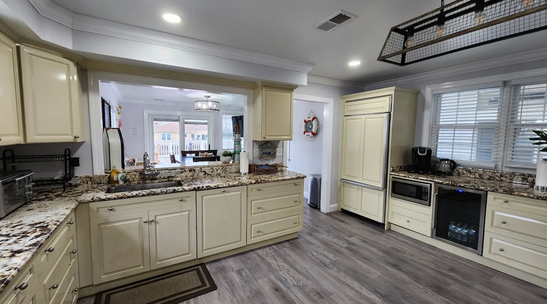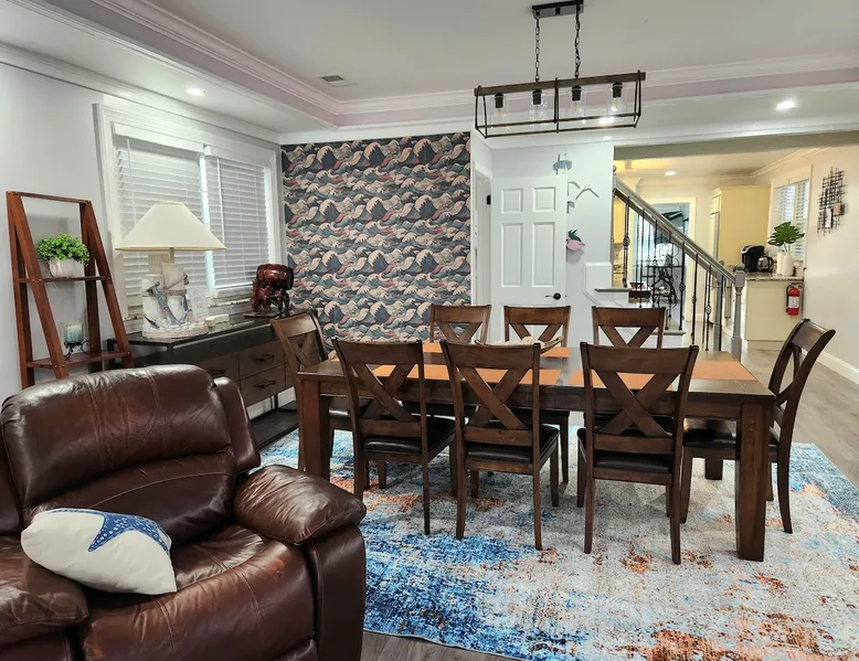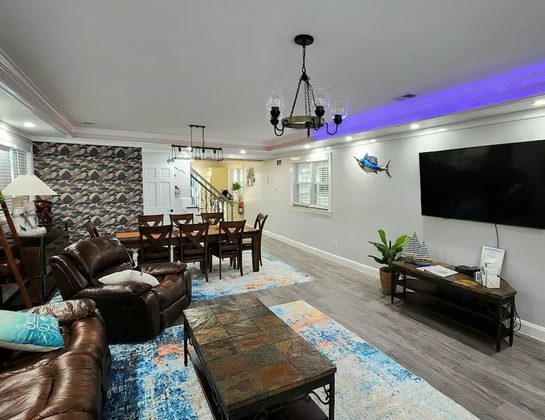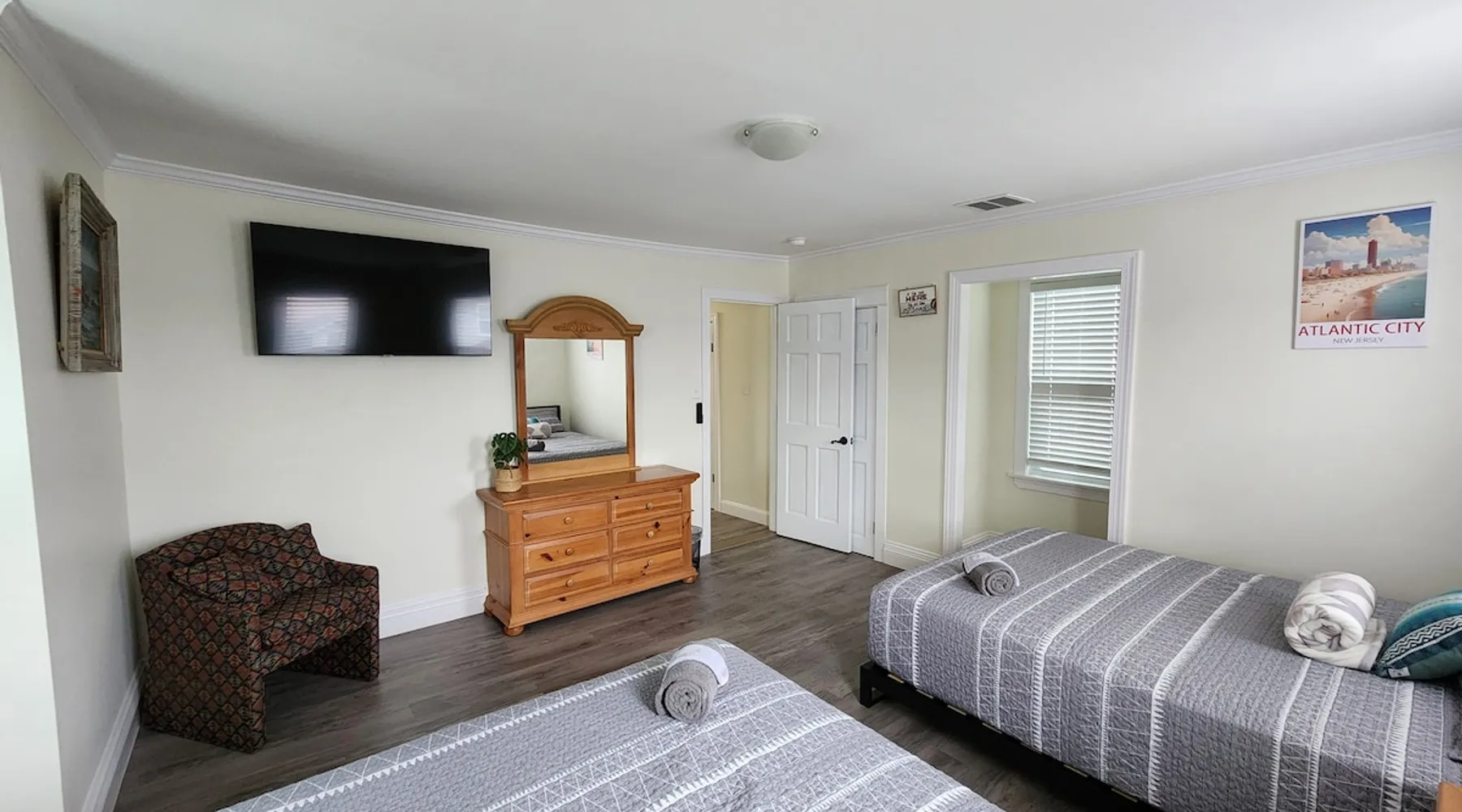 This luxury home has been newly renovated with high-end features and stunning decor. Set right on the water in Atlantic City, it’s ideal for a relaxing retreat with top-tier amenities for families or friends. Just a 7-minute walk to the beach and boardwalk! Enjoy the expansive living area, cozy bedrooms, and a spacious deck with water views. Immaculate, inviting, and perfect for entertaining guests. Experience the best of the shore—book your stay at Buoy Bay AC for an unforgettable getaway! The space ENTRY WAY: -Upon entering the home, there is a vestibule area with large closets and an entry bench that has storage for shoes and other items. LIVING ROOM: -Spacious with 2 couches, a large SmartTV (there is no cable for the TVs only streaming apps) -This space is perfect for guests to relax and enjoy a comfortable setting. DINING AREA: -Large table to seat 8 for meals. BATHROOM: -There is a newly renovated full bathroom on the main level of the home with luxury features including a bidet & heated toilet seat. KITCHEN: -Large and open, with ample counter space, lots of cabinets and brand new luxury appliances. -Stocked with basic cookware, dish ware, glassware, utensils, and much more! -There is a separate beverage fridge, a Keurig coffee maker, and a table to seat 4. BAR AREA: -Off of the kitchen is another dining and entertainment space with a table to seat 6, a large TV, and a counter bar area with 3 stools. DECK: -Through the bar area, open the sliding doors, and you will be greeted with a large deck that sits directly on the water. -The deck has a propane grill, an outdoor table to seat 6, and 2 lounge chairs for sunning. -There is no access permitted to the lower portion of the deck -We do not provide propane for the grill. UPSTAIRS: -On the 2nd floor of the home, there are 3 roomy bedrooms and 1 full bathroom. Each bedroom has cozy and luxurious linens with ample closet space. BEDROOM 1 - 1 King Sized Bed, chaise lounge couch, water views BEDROOM 2 - 1 Queen Sized Bed, deck & designated work space BEDROOM 3 - 2 Queen Sized Beds, dresser for clothing storage BOOK WITH US and unlock discounts and special offers exclusive to Cozy Cohost guests. Take advantage of all that Atlantic City has to offer and enjoy savings at top local spots including famous restaurants, night clubs, spas, coffee shops, distilleries, breweries, boat tours, bike rentals, mini golf, and more... Guest access ACCESS & ENTRY: -Guests have access to the entire 2 story, 3 bedroom, 2 bathroom home, and deck. -Please note that there are steps to enter this home. -Please be respectful to the neighbors and the surrounding homes and businesses. -Please note that check-out time is promptly at 11:00 AM. Failure to check out by this time may result in a $100 fee per hour. We appreciate your cooperation in ensuring a smooth transition for our next guests. Thank you for your understanding! KEYLESS ENTRY: -There is keyless entry. Your host will provide you with the door code approximately one hour prior to check in the day of your trip. PARKING: -There is driveway parking for 1 vehicle. -There is also a large driveway next door that our guests can use for parking up to 4 vehicles. -You will be provided with parking passes for the extra driveway that will be located at the home for your arrival. ADDITIONAL PARKING: -There is free street parking in front of the house. -Please be courteous to the neighbors when parking, do not block driveways or sidewalks. -Guests are responsible for city street parking compliance; read & follow signage to avoid parking tickets. -We are not responsible for parking tickets due to negligence. MAIL: -Please do not ship items to the property. -If there is something of priority that you need shipped please reach out to us directly for alternative options. -We are not responsible for any items shipped to the property. ENVIRONMENTAL NOTES: -Property located in a city environment; potential for noise from cars or foot traffic. SECURITY: -The home is protected by exterior ring camera security. Other things to note HONESTY & EXPECTATIONS: At "Buoy Bay", we want our guests to have a clear understanding of the distinctions between vacation rentals and hotels. While we diligently maintain our properties, wear and tear are inherent aspects of vacation rentals. Although we address issues promptly, the high volume of guests may result in occasional delays between stays. Any significant damage or serious concerns are prioritized and resolved before a guest's check-in, provided we are made aware of the issue. CLEANING: Our dedicated cleaning team meticulously sanitizes and cleans each home. Unlike standard hotel rooms, homes entail a more detailed cleaning process due to their larger size. Despite our team's efforts to ensure optimal cleanliness, minor oversights may occur. For substantial errors, we are committed to rectifying the situation promptly. While we take pride in our cleaning standards, we ask for understanding that, as in any human endeavor, perfection is not always attainable, especially when minor details have no direct impact on your stay. HOUSEHOLD ITEMS: As private residences, it's important to recognize that household items may break or require repairs during your stay. While we understand the inconvenience this may pose to our guests, it's equally disruptive for us. Appliances such as water tanks, HVAC systems, dishwashers, and refrigerators may experience issues. We cannot guarantee immunity from such occurrences, but we pledge to address and resolve any situation swiftly. While we assure our commitment to guests' well-being, we're honest about the potential for unforeseen issues. AMENITIES: -WiFi included; exterior ring camera security for added safety. -Linens, towels, and basic amenities provided. -Guests must purchase their own amenities when stock runs out. -No laundry detergent is provided. -Basic cookware supplies; no salt, pepper, oil, or kitchen condiments. RESERVATION/CANCELLATION N