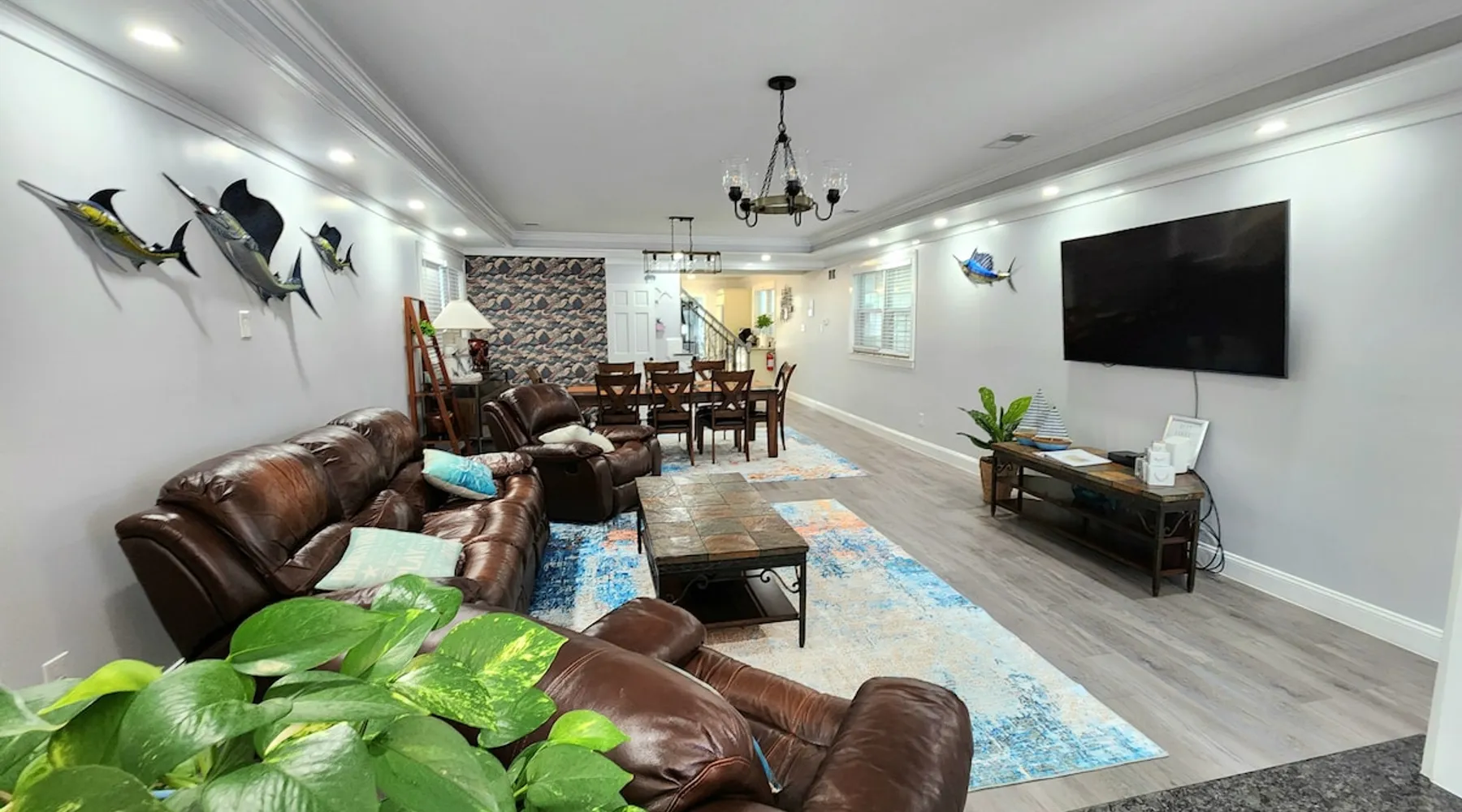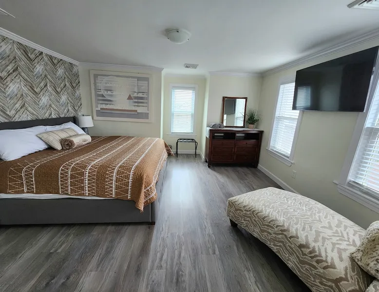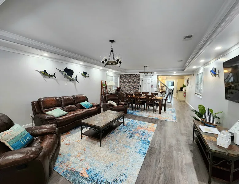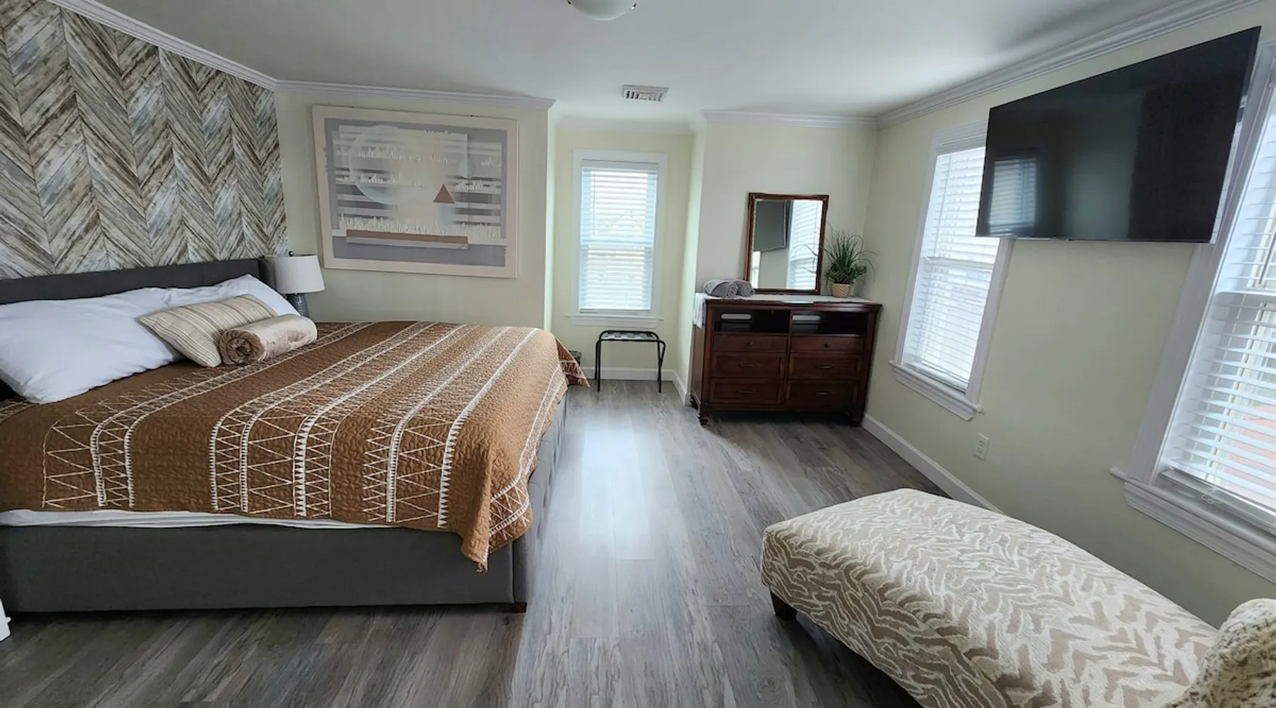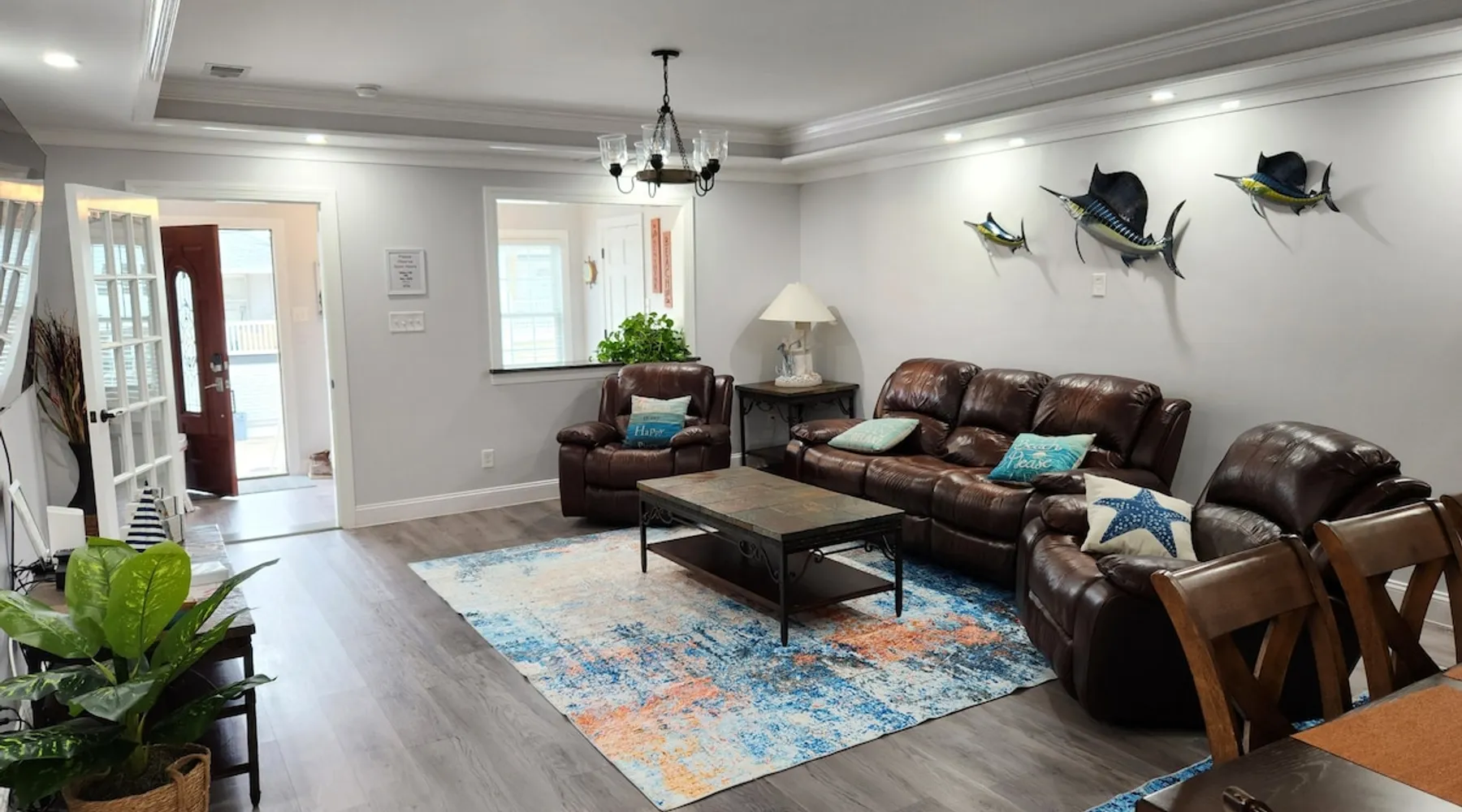 This luxury home has been newly renovated with high-end features and stunning decor. Set right on the water in Atlantic City, it’s ideal for a relaxing retreat with top-tier amenities for families or friends. Just a 7-minute walk to the beach and boardwalk! Enjoy the expansive living area, cozy bedrooms, and a spacious deck with water views. Immaculate, inviting, and perfect for entertaining guests. Experience the best of the shore—book your stay at Buoy Bay AC for an unforgettable getaway! The space ENTRY WAY: -Upon entering the home, there is a vestibule area with large closets and an entry bench that has storage for shoes and other items. LIVING ROOM: -Spacious with 2 couches, a large SmartTV (there is no cable for the TVs only streaming apps) -This space is perfect for guests to relax and enjoy a comfortable setting. DINING AREA: -Large table to seat 8 for meals. BATHROOM: -There is a newly renovated full bathroom on the main level of the home with luxury features including a bidet & heated toilet seat. KITCHEN: -Large and open, with ample counter space, lots of cabinets and brand new luxury appliances. -Stocked with basic cookware, dish ware, glassware, utensils, and much more! -There is a separate beverage fridge, a Keurig coffee maker, and a table to seat 4. BAR AREA: -Off of the kitchen is another dining and entertainment space with a table to seat 6, a large TV, and a counter bar area with 3 stools. DECK: -Through the bar area, open the sliding doors, and you will be greeted with a large deck that sits directly on the water. -The deck has a propane grill, an outdoor table to seat 6, and 2 lounge chairs for sunning. -There is no access permitted to the lower portion of the deck -We do not provide propane for the grill. UPSTAIRS: -On the 2nd floor of the home, there are 3 roomy bedrooms and 1 full bathroom. Each bedroom has cozy and luxurious linens with ample closet space. BEDROOM 1 - 1 King Sized Bed, chaise lounge couch, water views BEDROOM 2 - 1 Queen Sized Bed, deck & designated work space BEDROOM 3 - 2 Queen Sized Beds, dresser for clothing storage BOOK WITH US and unlock discounts and special offers exclusive to Cozy Cohost guests. Take advantage of all that Atlantic City has to offer and enjoy savings at top local spots including famous restaurants, night clubs, spas, coffee shops, distilleries, breweries, boat tours, bike rentals, mini golf, and more... Guest access ACCESS & ENTRY: -Guests have access to the entire 2 story, 3 bedroom, 2 bathroom home, and deck. -Please note that there are steps to enter this home. -Please be respectful to the neighbors and the surrounding homes and businesses. -Please note that check-out time is promptly at 11:00 AM. Failure to check out by this time may result in a $100 fee per hour. We appreciate your cooperation in ensuring a smooth transition for our next guests. Thank you for your understanding! KEYLESS ENTRY: -There is keyless entry. Your host will provide you with the door code approximately one hour prior to check in the day of your trip. PARKING: -There is driveway parking for 1 vehicle. -There is also a large driveway next door that our guests can use for parking up to 4 vehicles. -You will be provided with parking passes for the extra driveway that will be located at the home for your arrival. ADDITIONAL PARKING: -There is free street parking in front of the house. -Please be courteous to the neighbors when parking, do not block driveways or sidewalks. -Guests are responsible for city street parking compliance; read & follow signage to avoid parking tickets. -We are not responsible for parking tickets due to negligence. MAIL: -Please do not ship items to the property. -If there is something of priority that you need shipped please reach out to us directly for alternative options. -We are not responsible for any items shipped to the property. ENVIRONMENTAL NOTES: -Property located in a city environment; potential for noise from cars or foot traffic. SECURITY: -The home is protected by exterior ring camera security. Other things to note HONESTY & EXPECTATIONS: At "Buoy Bay", we want our guests to have a clear understanding of the distinctions between vacation rentals and hotels. While we diligently maintain our properties, wear and tear are inherent aspects of vacation rentals. Although we address issues promptly, the high volume of guests may result in occasional delays between stays. Any significant damage or serious concerns are prioritized and resolved before a guest's check-in, provided we are made aware of the issue. CLEANING: Our dedicated cleaning team meticulously sanitizes and cleans each home. Unlike standard hotel rooms, homes entail a more detailed cleaning process due to their larger size. Despite our team's efforts to ensure optimal cleanliness, minor oversights may occur. For substantial errors, we are committed to rectifying the situation promptly. While we take pride in our cleaning standards, we ask for understanding that, as in any human endeavor, perfection is not always attainable, especially when minor details have no direct impact on your stay. HOUSEHOLD ITEMS: As private residences, it's important to recognize that household items may break or require repairs during your stay. While we understand the inconvenience this may pose to our guests, it's equally disruptive for us. Appliances such as water tanks, HVAC systems, dishwashers, and refrigerators may experience issues. We cannot guarantee immunity from such occurrences, but we pledge to address and resolve any situation swiftly. While we assure our commitment to guests' well-being, we're honest about the potential for unforeseen issues. AMENITIES: -WiFi included; exterior ring camera security for added safety. -Linens, towels, and basic amenities provided. -Guests must purchase their own amenities when stock runs out. -No laundry detergent is provided. -Basic cookware supplies; no salt, pepper, oil, or kitchen condiments. RESERVATION/CANCELLATION N