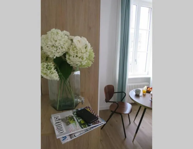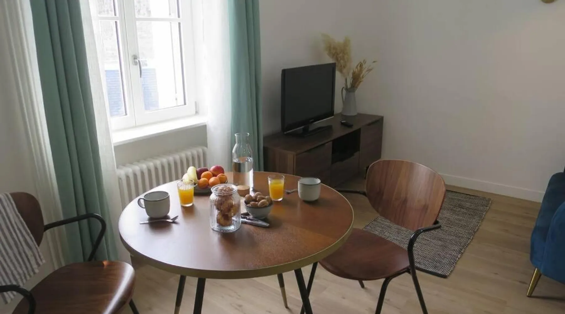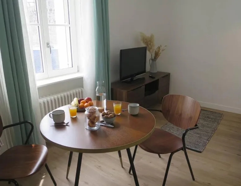 Comfortable Living Space: Dinan Château offers a one-bedroom apartment in Dinan, France. The property features a fully equipped kitchen with a refrigerator, microwave, dishwasher, oven, stovetop, toaster, and coffee machine. Guests can enjoy garden and city views from the dining area and seating space. Modern Amenities: The apartment includes free WiFi, a washing machine, and a dining table. Additional amenities include a hairdryer, free toiletries, TV, sofa, and wardrobe. A dressing room provides additional storage space. Convenient Location: Dinan Train Station is a 16-minute walk away. Rennes–Saint-Jacques Airport is 37 mi from the property. Nearby attractions include Port-Breton Park (13 mi), Marina Dinard and Casino of Dinard (14 mi), and Solidor Tower (17 mi). Outdoor Activities: Guests can enjoy kayaking or canoeing in the surrounding area. The apartment has 1 bedroom and 1 bathroom with a shower and free toiletries. In the well-fitted kitchen, guests will find a stovetop, a refrigerator, a dishwasher and kitchenware. The apartment features a flat-screen TV, a washing machine, a tea and coffee maker, a seating area as well as garden views. The unit has 1 bed.