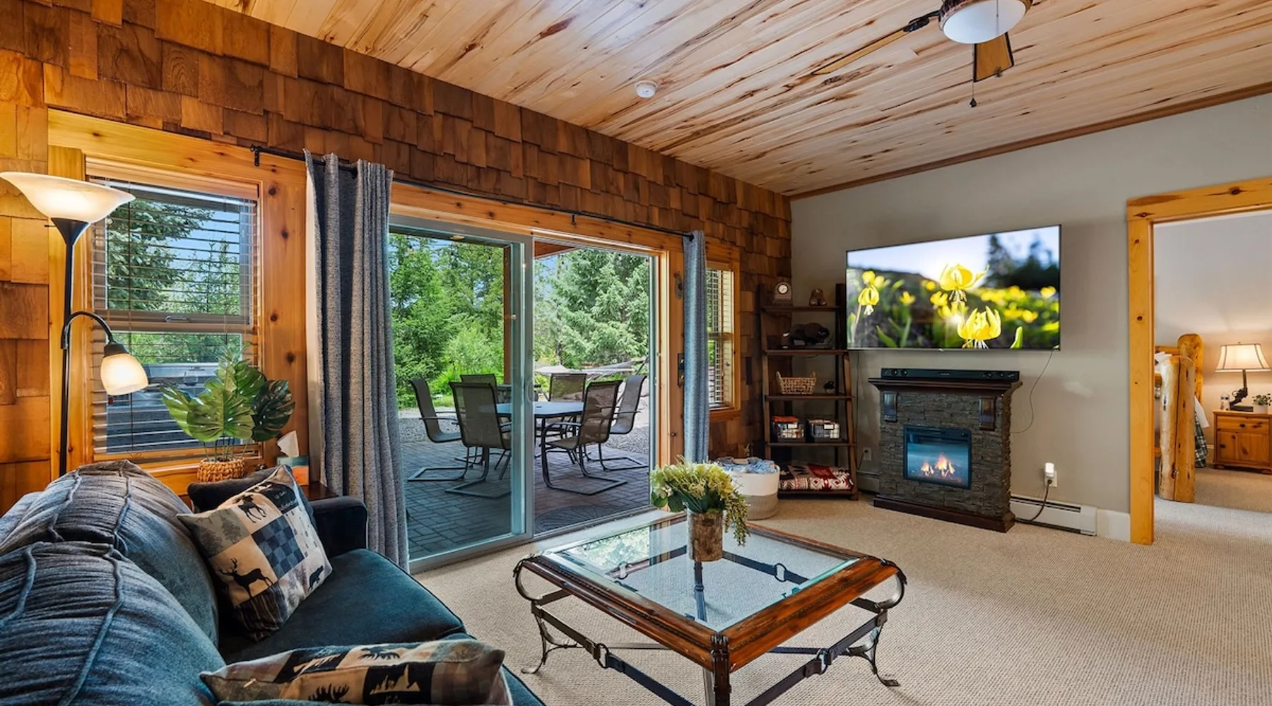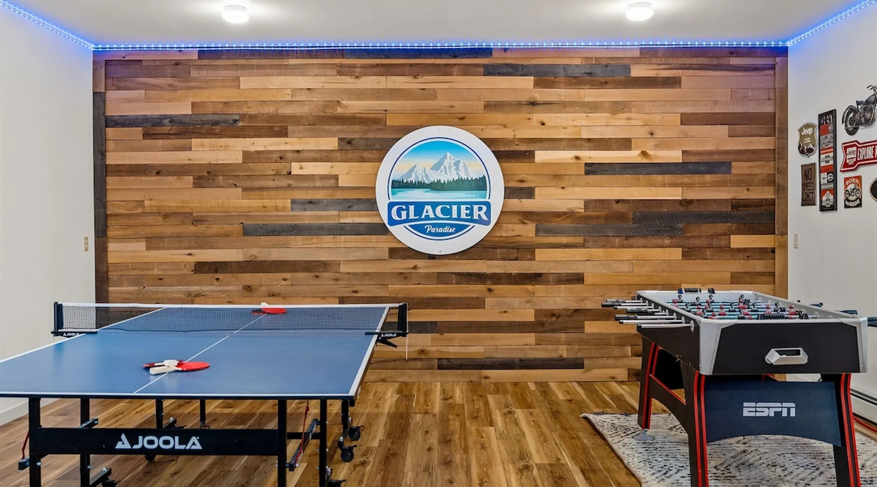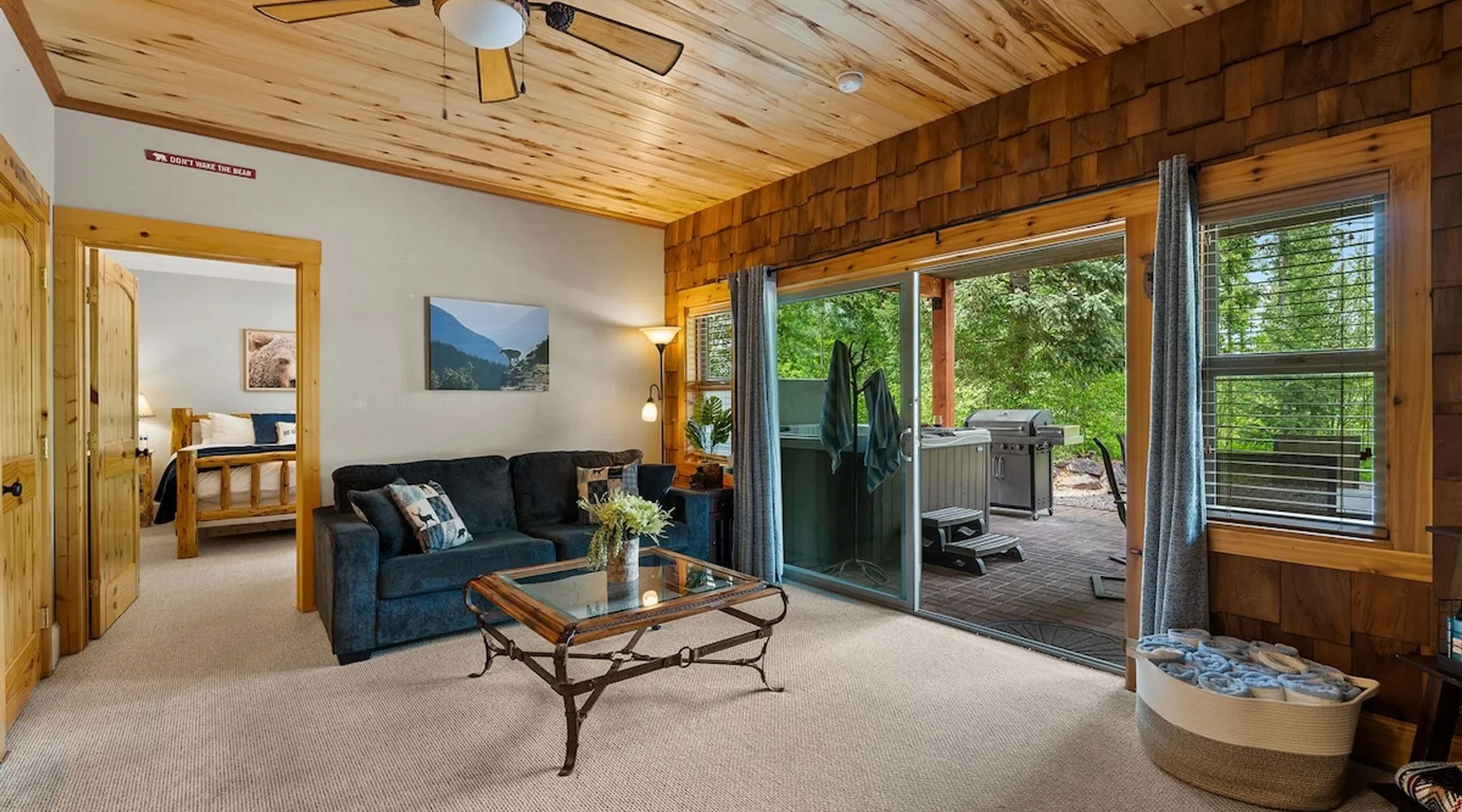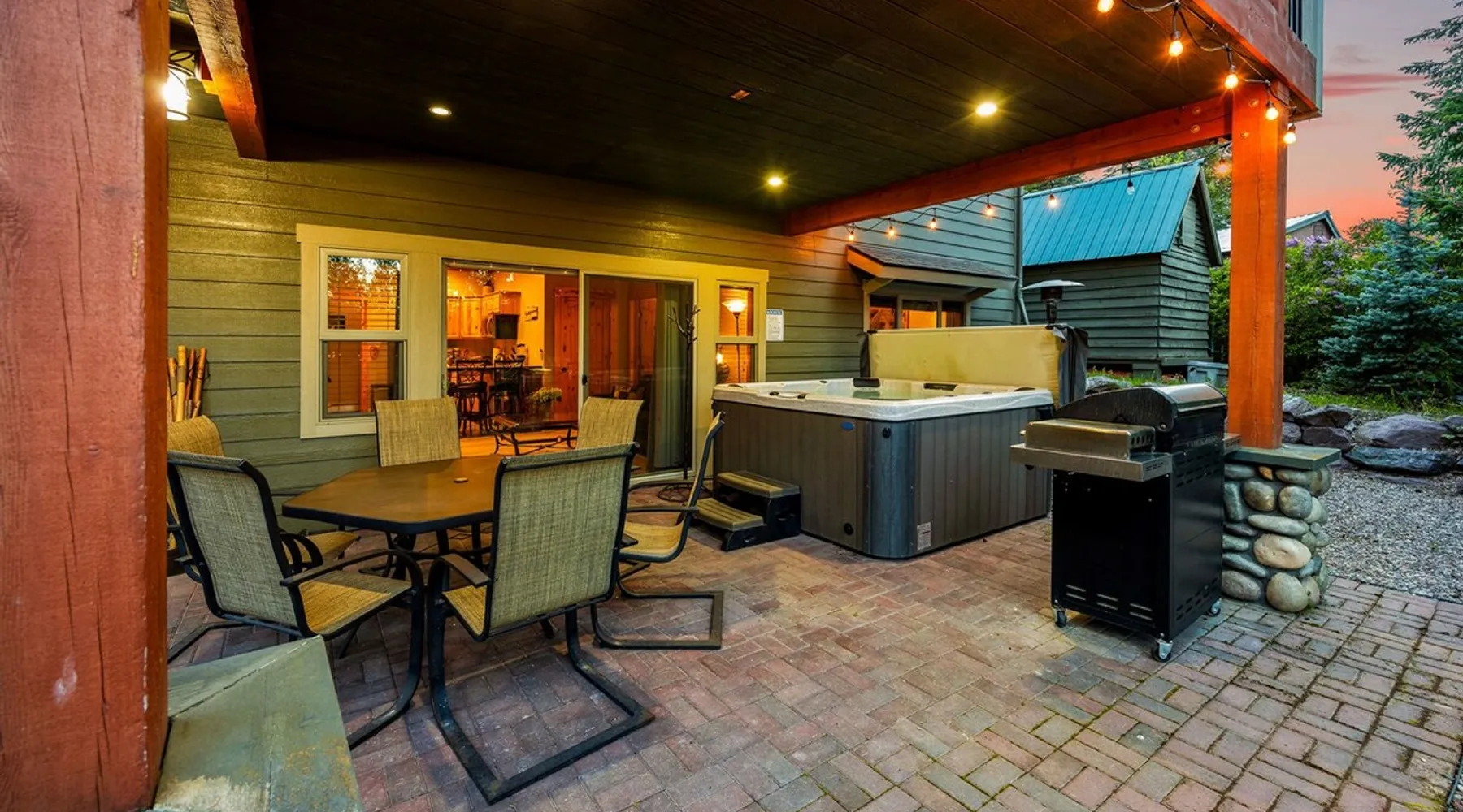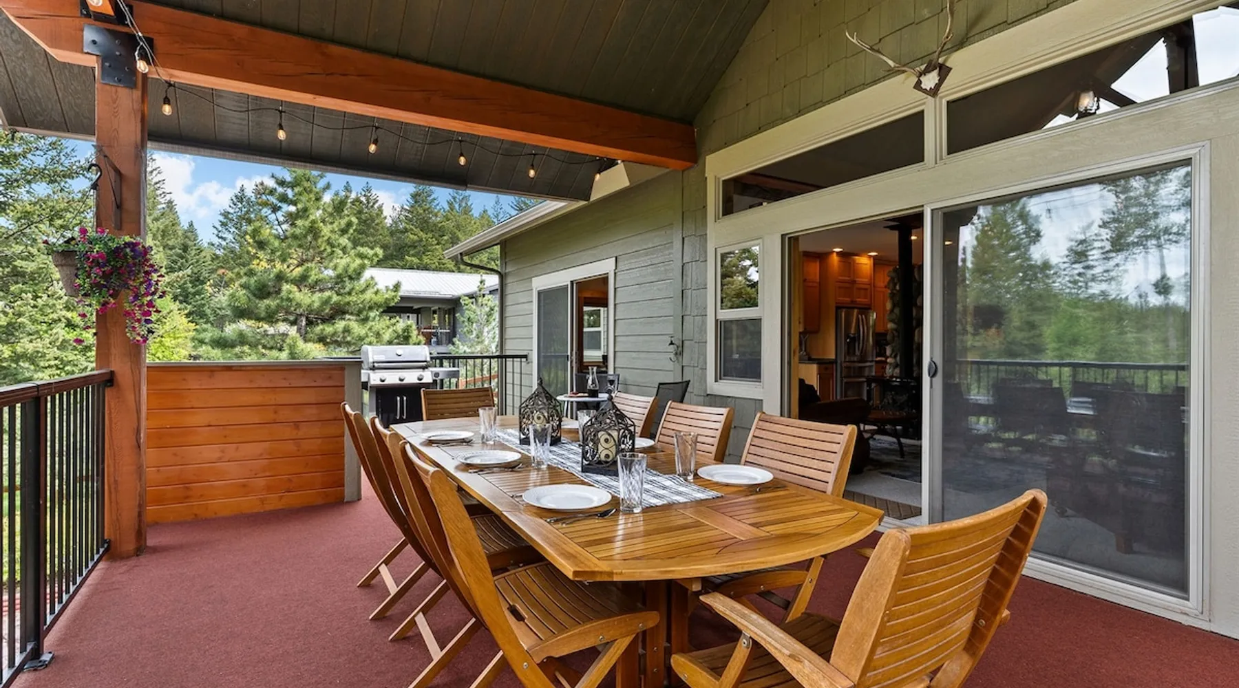 The perfect location to experience it all! Just 10 min from the West entrance of Glacier National Park, 29 miles from Flathead Lake (the largest natural lake in the west), 6 minutes away from two different ziplines and aerial parks, 4 minutes to mini golf, 10 minutes to water slides, along with ample opportunities for white-water rafting, horse-back riding, hiking, fishing, boating, skiing, biking and many other activities. Just 23 mi from Big Mountain, with 3000 acres of World class skiing! The space After a full day of adventure, come home and curl up by the fire or soak away your sore muscles in the large, 6 person hot tub. Enjoy amazing views of the river and mountains from the waterfront gazebo and secluded backyard or treat yourself to a family-style BBQ on the upper deck! There's plenty of space to unwind and relax with family and friends! Conveniently located within walking distance to groceries, fuel and dining and only 14 miles from Glacier International Airport. ☆☆ LUXURY AMENITIES ☆☆ This custom 3200 sq. ft. home combines rustic charm with five-star amenities for an incredible retreat! It offers 3 bedrooms, 3.5 bathrooms, spacious living areas, a well-stocked kitchen and sweeping balconies to help you relax while surrounded by natural beauty with river and mountain views. This home sleeps 10-12 and has been stocked with everything you'll need for an unforgettable vacation! With 43" 4K Smart TVs in every bedroom, a 60" Smart TV in each living room, a 6 person hot tub, stainless steel appliances, pine log beds with luxury mattresses, a fireplace, a fully-stocked kitchen including spices, coffee and tea supplies, a ping-pong table, foosball table, double shot basketball, corn hole, old fashioned popcorn maker, and much more! It even has three refrigerators and two dishwashers for those wanting to do their own meal prep, and a washer and dryer for your convenience. ☆☆ BEDROOMS & SLEEPING ARRANGEMENTS ☆☆ On the upper level you'll find a master suite (nicknamed the Eagle's Nest) with a luxury King size bed and ensuite bathroom including an infrared sauna, with large windows that look over the wooded back yard. On the lower level there is a second master suite (the Bear's Den) with a luxury King size bed and ensuite bathroom, the third bedroom (Moose Hollow) with a Queen size bed, each located conveniently right off the additional kitchenette, living room & bathroom. There is also a brand new sleeper sofa in the downstairs lounge area (Goat Mountain) and 2 rollaway beds and 2 blow up queen sized air mattresses available for extra guests. ☆☆ BATHROOMS ☆☆ This home is perfect for groups of 10-12 for many reasons, and one is because it has 3.5 updated bathrooms. The master bathroom has a gorgeous tiled walk in shower with rain shower features, two sinks with expansive counter space, huge walk-in closet, separate toilet room and designer finishes. The second ensuite bathroom has a walk in shower behind glass doors, rain shower features and double sinks with ample counter space and a large walk-in closet. The third bathroom features a tub/shower combo and a single sink with adequate counter space, while the half bathroom is conveniently located between the dining room and game room. Plush hotel quality towels are provided throughout. ☆☆ KITCHEN & LOUNGE ☆☆ Designed for entertaining groups, this home features multiple lounge spaces indoors and out and a fully stocked, galley style gourmet kitchen. The main living room has a wall of windows that overlook the shady patio and lush green, wooded property. The designer finishes and decor bring the beauty of nature indoors, and the luxury furniture makes this open space the perfect place to get together. Relax in the leather recliners or matching sofa and watch your favorite shows on the sleek 65" flat-screen TV. The gourmet kitchen sits right off the living room and dining room areas. There's room to keep your groceries in the cabinets and any one of the three stainless steel fridges, use the gas range to make homemade meals from scratch or heat leftovers in the microwave. Enjoy using the coffee maker for freshly brewed coffee, the toaster, blender, InstaPot, or any other gadgets to make your family's favorite meals and treats. The formal dining room sits in a sunny alcove of windows and offers comfortable seating for 8. Downstairs, there is even more room to hang out. A kitchenette with a fridge, dishwasher, microwave and slow drip and Kuerig coffee equipment and supplies, making it easy to whip up a quick snack or drink to enjoy in the adjacent secondary lounge area. Sit at the custom log bar with your snacks or set up your laptop here and get some work done. The lounge has a comfortable sofa in front of an electric fireplace, 65" flat screen TV, and sliding glass doors that lead out to the covered patio and hot tub. The final lounge area is a place the kids won't want to leave! Check out the brand new Infinity Game Table with games for all ages! Also features a large sofa/chaise lounger in a carpeted area for watching TV or playing your favorite PS4 game with an old fashioned movie theatre style popcorn popper. It also has an Infinity Game table, ping pong table, foosball table, and large connect four. This area is located in the detached, heated garage which is perfect for keeping the noise down in the main living areas. ☆☆ OUTSIDE SPACE ☆☆ Nothing beats feeling the crisp mountain air on your cheeks, hearing the chirp of a passing robin, the breeze as it ruffles the aspen leaves, and the sound of the river as it traverses down the canyon while sitting in the comfort of your own private deck in solitude. What a feeling of peace and freedom and exhilaration as you experience relaxation like never before! This nature lover's oasis offers multiple ways to enjoy the outdoors. There are two private patios, one on each level of the home. The main patio has soaring wood-paneled ceilings, outdoor lounge furni