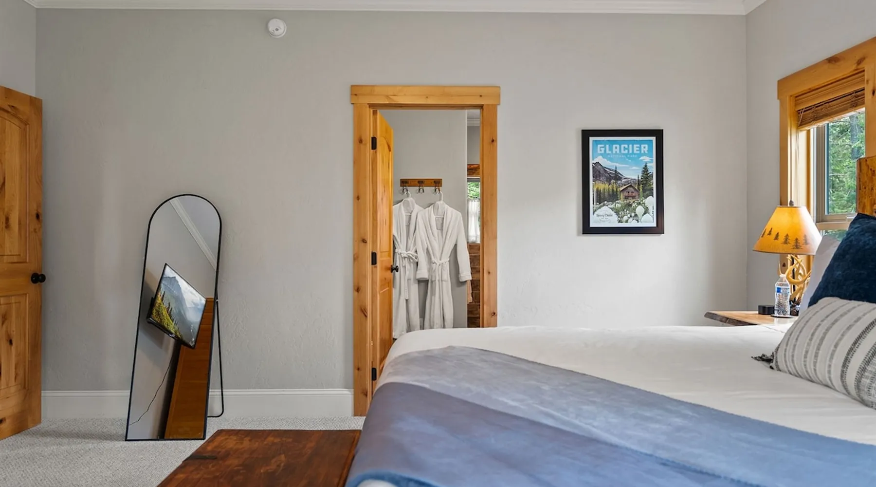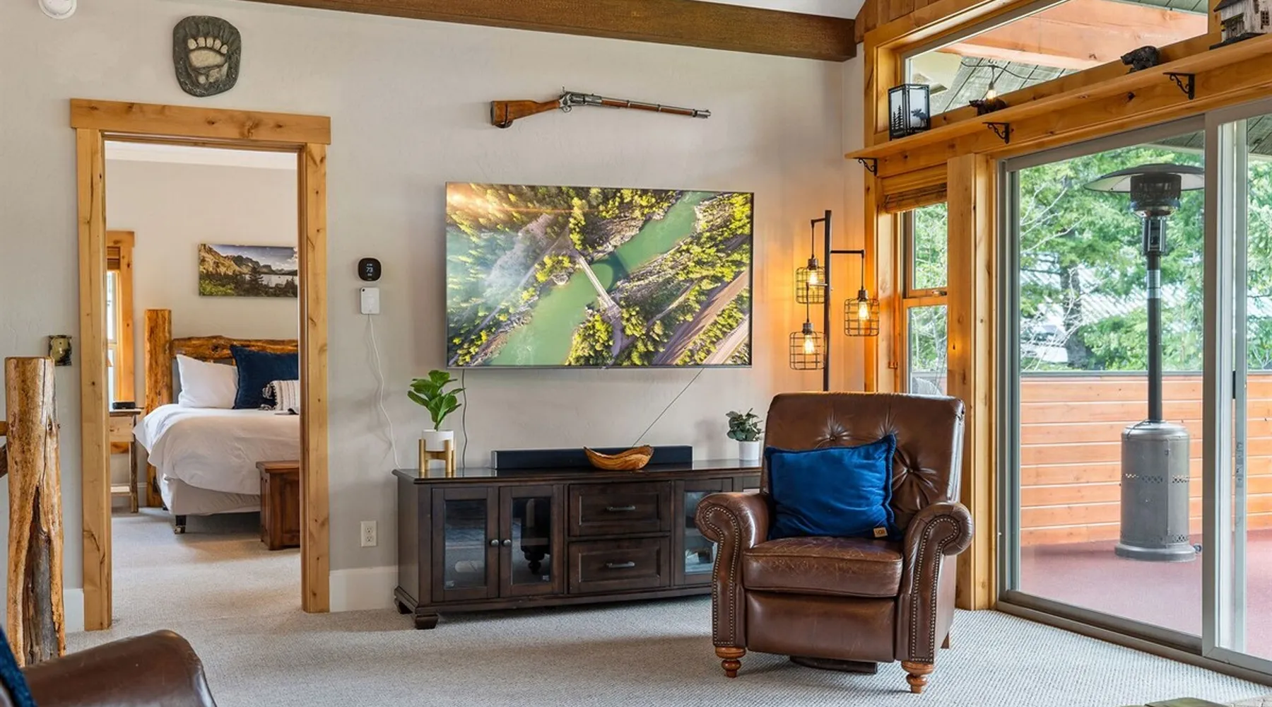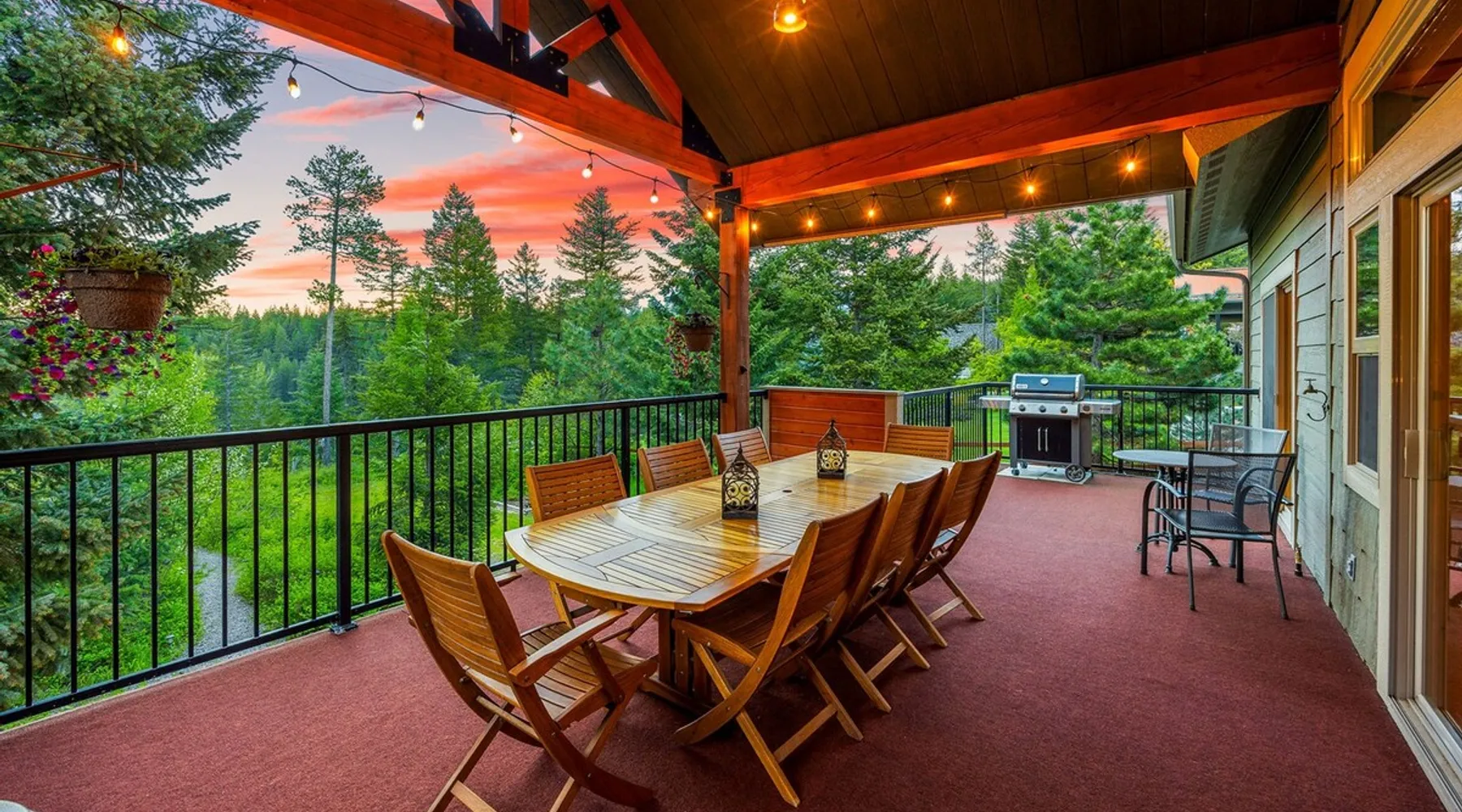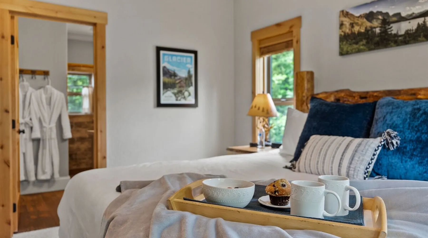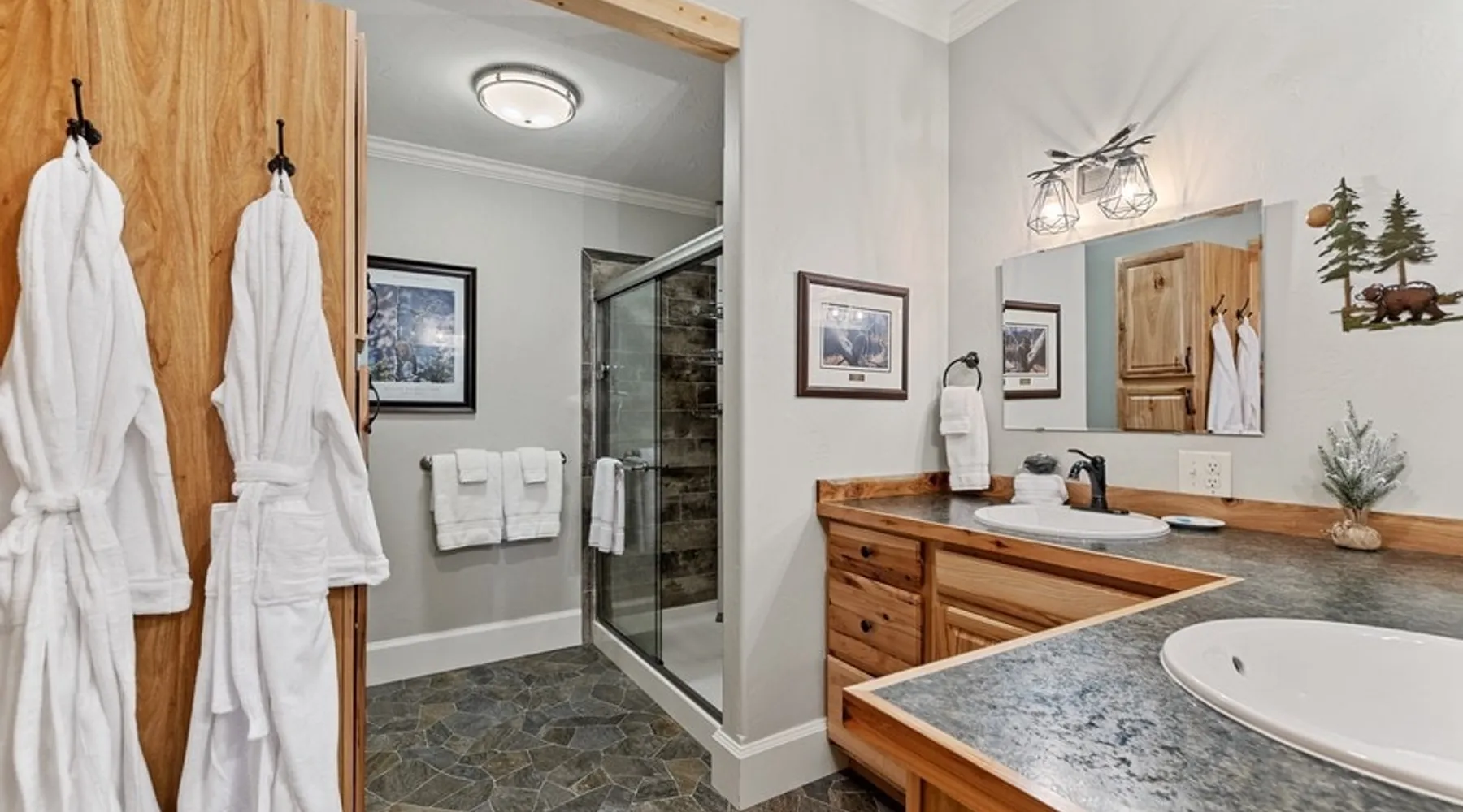 The perfect location to experience it all! Just 10 min from the West entrance of Glacier National Park, 29 miles from Flathead Lake (the largest natural lake in the west), 6 minutes away from two different ziplines and aerial parks, 4 minutes to mini golf, 10 minutes to water slides, along with ample opportunities for white-water rafting, horse-back riding, hiking, fishing, boating, skiing, biking and many other activities. Just 23 mi from Big Mountain, with 3000 acres of World class skiing! The space After a full day of adventure, come home and curl up by the fire or soak away your sore muscles in the large, 6 person hot tub. Enjoy amazing views of the river and mountains from the waterfront gazebo and secluded backyard or treat yourself to a family-style BBQ on the upper deck! There's plenty of space to unwind and relax with family and friends! Conveniently located within walking distance to groceries, fuel and dining and only 14 miles from Glacier International Airport. ☆☆ LUXURY AMENITIES ☆☆ This custom 3200 sq. ft. home combines rustic charm with five-star amenities for an incredible retreat! It offers 3 bedrooms, 3.5 bathrooms, spacious living areas, a well-stocked kitchen and sweeping balconies to help you relax while surrounded by natural beauty with river and mountain views. This home sleeps 10-12 and has been stocked with everything you'll need for an unforgettable vacation! With 43" 4K Smart TVs in every bedroom, a 60" Smart TV in each living room, a 6 person hot tub, stainless steel appliances, pine log beds with luxury mattresses, a fireplace, a fully-stocked kitchen including spices, coffee and tea supplies, a ping-pong table, foosball table, double shot basketball, corn hole, old fashioned popcorn maker, and much more! It even has three refrigerators and two dishwashers for those wanting to do their own meal prep, and a washer and dryer for your convenience. ☆☆ BEDROOMS & SLEEPING ARRANGEMENTS ☆☆ On the upper level you'll find a master suite (nicknamed the Eagle's Nest) with a luxury King size bed and ensuite bathroom including an infrared sauna, with large windows that look over the wooded back yard. On the lower level there is a second master suite (the Bear's Den) with a luxury King size bed and ensuite bathroom, the third bedroom (Moose Hollow) with a Queen size bed, each located conveniently right off the additional kitchenette, living room & bathroom. There is also a brand new sleeper sofa in the downstairs lounge area (Goat Mountain) and 2 rollaway beds and 2 blow up queen sized air mattresses available for extra guests. ☆☆ BATHROOMS ☆☆ This home is perfect for groups of 10-12 for many reasons, and one is because it has 3.5 updated bathrooms. The master bathroom has a gorgeous tiled walk in shower with rain shower features, two sinks with expansive counter space, huge walk-in closet, separate toilet room and designer finishes. The second ensuite bathroom has a walk in shower behind glass doors, rain shower features and double sinks with ample counter space and a large walk-in closet. The third bathroom features a tub/shower combo and a single sink with adequate counter space, while the half bathroom is conveniently located between the dining room and game room. Plush hotel quality towels are provided throughout. ☆☆ KITCHEN & LOUNGE ☆☆ Designed for entertaining groups, this home features multiple lounge spaces indoors and out and a fully stocked, galley style gourmet kitchen. The main living room has a wall of windows that overlook the shady patio and lush green, wooded property. The designer finishes and decor bring the beauty of nature indoors, and the luxury furniture makes this open space the perfect place to get together. Relax in the leather recliners or matching sofa and watch your favorite shows on the sleek 65" flat-screen TV. The gourmet kitchen sits right off the living room and dining room areas. There's room to keep your groceries in the cabinets and any one of the three stainless steel fridges, use the gas range to make homemade meals from scratch or heat leftovers in the microwave. Enjoy using the coffee maker for freshly brewed coffee, the toaster, blender, InstaPot, or any other gadgets to make your family's favorite meals and treats. The formal dining room sits in a sunny alcove of windows and offers comfortable seating for 8. Downstairs, there is even more room to hang out. A kitchenette with a fridge, dishwasher, microwave and slow drip and Kuerig coffee equipment and supplies, making it easy to whip up a quick snack or drink to enjoy in the adjacent secondary lounge area. Sit at the custom log bar with your snacks or set up your laptop here and get some work done. The lounge has a comfortable sofa in front of an electric fireplace, 65" flat screen TV, and sliding glass doors that lead out to the covered patio and hot tub. The final lounge area is a place the kids won't want to leave! Check out the brand new Infinity Game Table with games for all ages! Also features a large sofa/chaise lounger in a carpeted area for watching TV or playing your favorite PS4 game with an old fashioned movie theatre style popcorn popper. It also has an Infinity Game table, ping pong table, foosball table, and large connect four. This area is located in the detached, heated garage which is perfect for keeping the noise down in the main living areas. ☆☆ OUTSIDE SPACE ☆☆ Nothing beats feeling the crisp mountain air on your cheeks, hearing the chirp of a passing robin, the breeze as it ruffles the aspen leaves, and the sound of the river as it traverses down the canyon while sitting in the comfort of your own private deck in solitude. What a feeling of peace and freedom and exhilaration as you experience relaxation like never before! This nature lover's oasis offers multiple ways to enjoy the outdoors. There are two private patios, one on each level of the home. The main patio has soaring wood-paneled ceilings, outdoor lounge furni