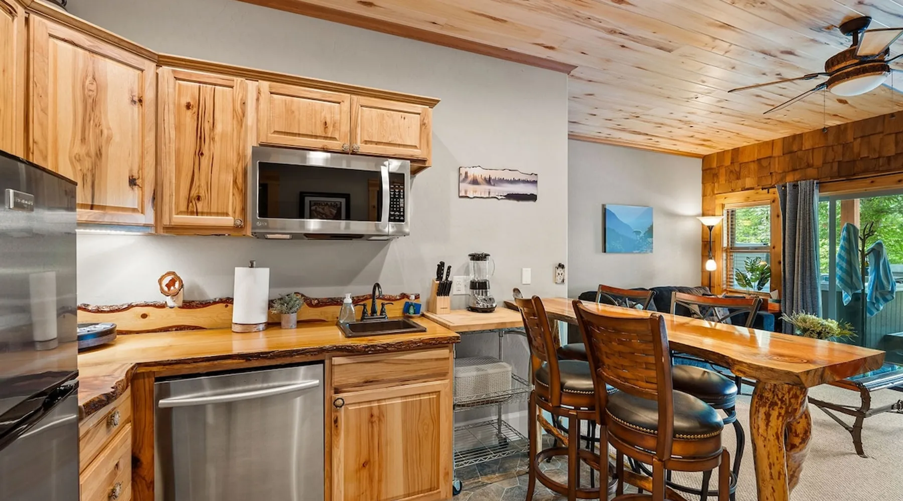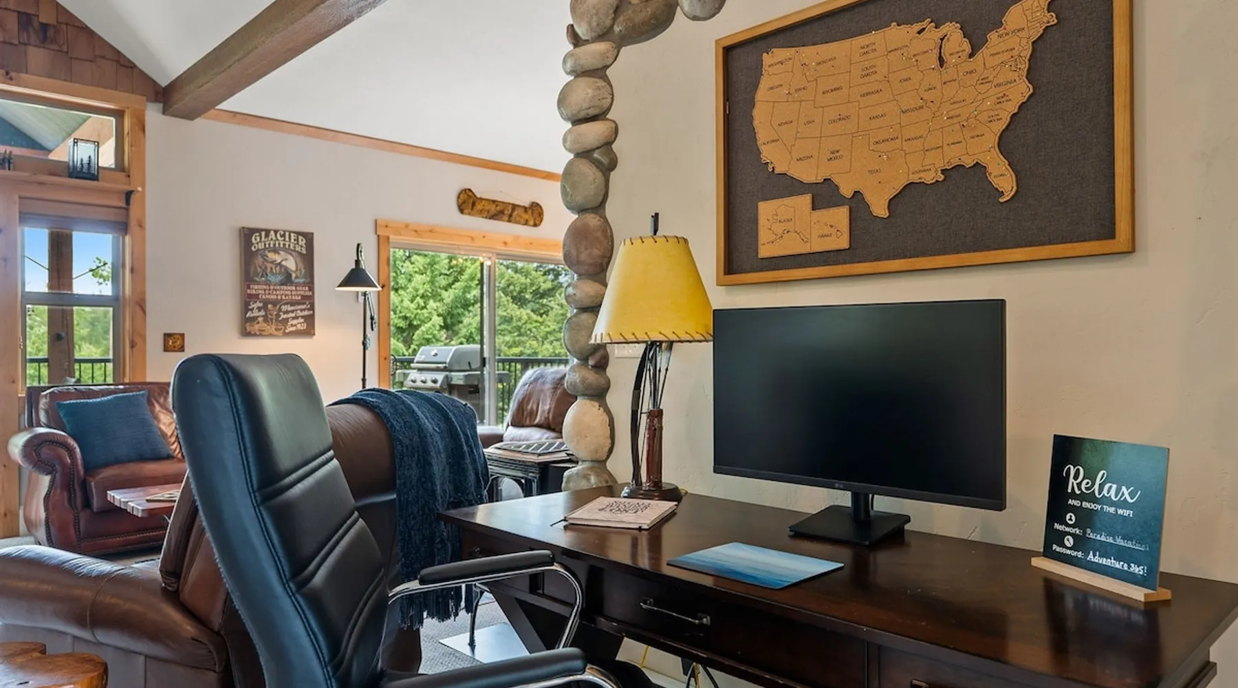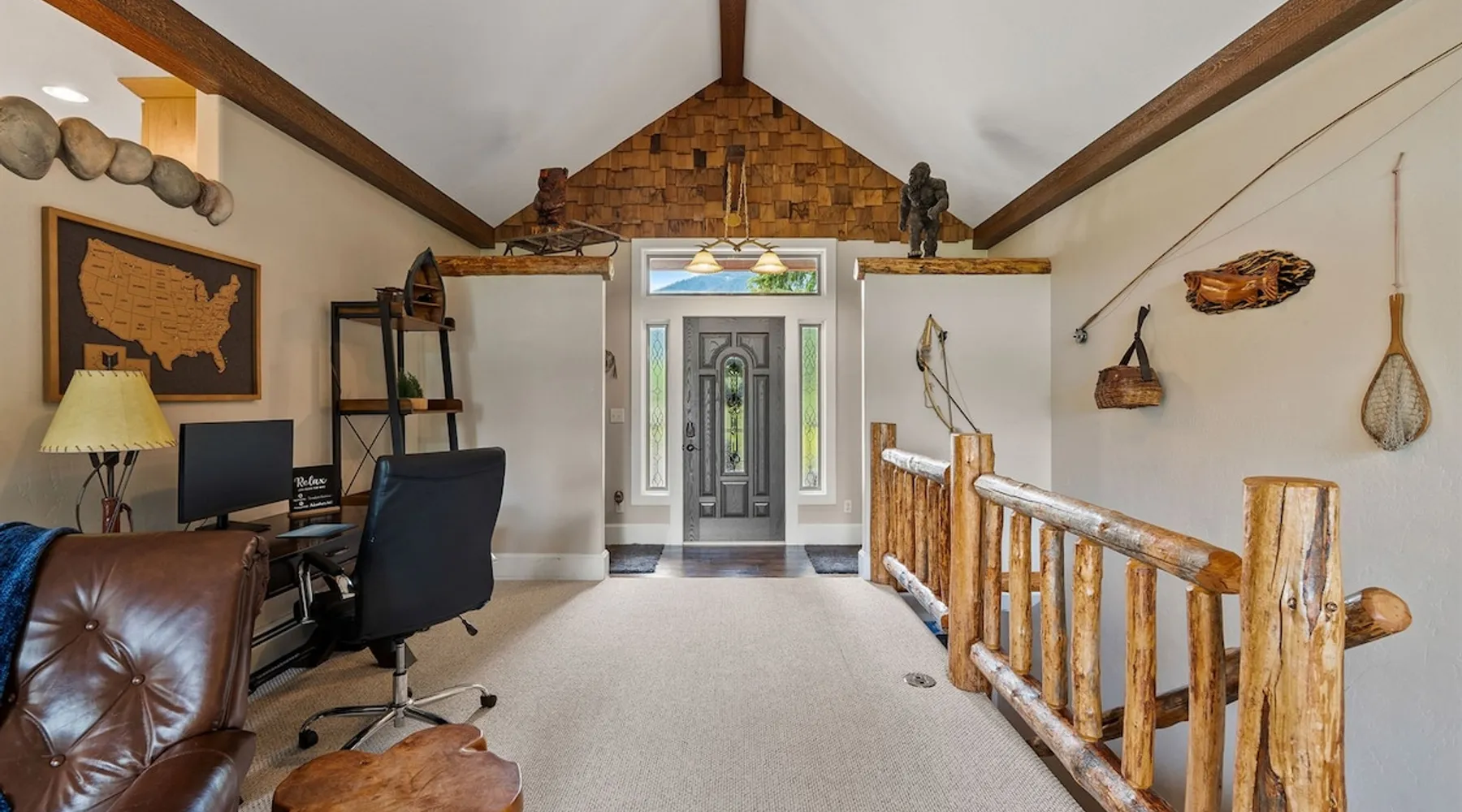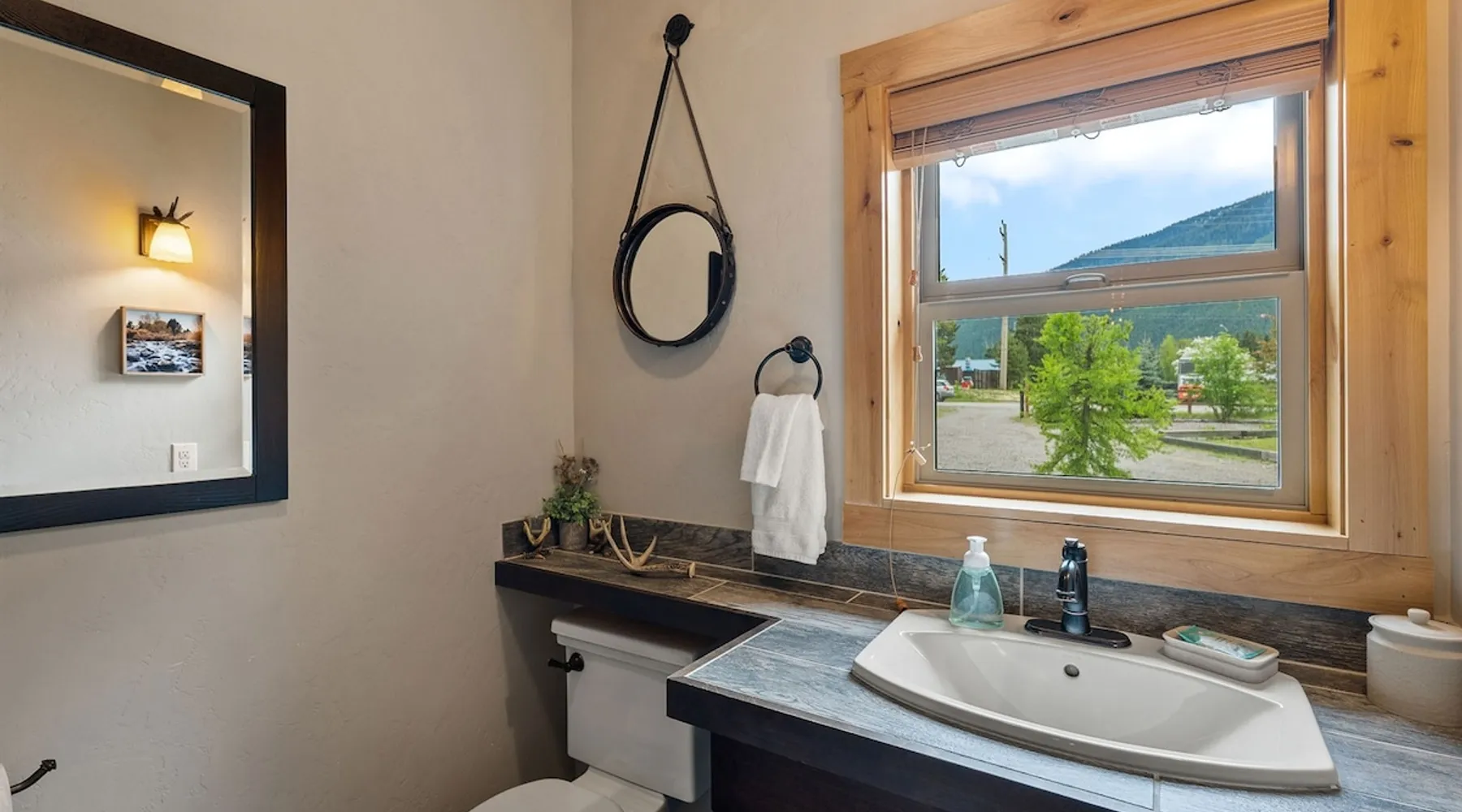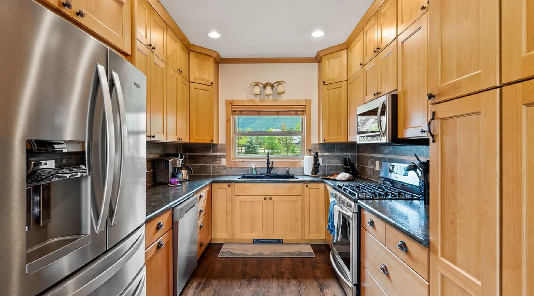 The perfect location to experience it all! Just 10 min from the West entrance of Glacier National Park, 29 miles from Flathead Lake (the largest natural lake in the west), 6 minutes away from two different ziplines and aerial parks, 4 minutes to mini golf, 10 minutes to water slides, along with ample opportunities for white-water rafting, horse-back riding, hiking, fishing, boating, skiing, biking and many other activities. Just 23 mi from Big Mountain, with 3000 acres of World class skiing! The space After a full day of adventure, come home and curl up by the fire or soak away your sore muscles in the large, 6 person hot tub. Enjoy amazing views of the river and mountains from the waterfront gazebo and secluded backyard or treat yourself to a family-style BBQ on the upper deck! There's plenty of space to unwind and relax with family and friends! Conveniently located within walking distance to groceries, fuel and dining and only 14 miles from Glacier International Airport. ☆☆ LUXURY AMENITIES ☆☆ This custom 3200 sq. ft. home combines rustic charm with five-star amenities for an incredible retreat! It offers 3 bedrooms, 3.5 bathrooms, spacious living areas, a well-stocked kitchen and sweeping balconies to help you relax while surrounded by natural beauty with river and mountain views. This home sleeps 10-12 and has been stocked with everything you'll need for an unforgettable vacation! With 43" 4K Smart TVs in every bedroom, a 60" Smart TV in each living room, a 6 person hot tub, stainless steel appliances, pine log beds with luxury mattresses, a fireplace, a fully-stocked kitchen including spices, coffee and tea supplies, a ping-pong table, foosball table, double shot basketball, corn hole, old fashioned popcorn maker, and much more! It even has three refrigerators and two dishwashers for those wanting to do their own meal prep, and a washer and dryer for your convenience. ☆☆ BEDROOMS & SLEEPING ARRANGEMENTS ☆☆ On the upper level you'll find a master suite (nicknamed the Eagle's Nest) with a luxury King size bed and ensuite bathroom including an infrared sauna, with large windows that look over the wooded back yard. On the lower level there is a second master suite (the Bear's Den) with a luxury King size bed and ensuite bathroom, the third bedroom (Moose Hollow) with a Queen size bed, each located conveniently right off the additional kitchenette, living room & bathroom. There is also a brand new sleeper sofa in the downstairs lounge area (Goat Mountain) and 2 rollaway beds and 2 blow up queen sized air mattresses available for extra guests. ☆☆ BATHROOMS ☆☆ This home is perfect for groups of 10-12 for many reasons, and one is because it has 3.5 updated bathrooms. The master bathroom has a gorgeous tiled walk in shower with rain shower features, two sinks with expansive counter space, huge walk-in closet, separate toilet room and designer finishes. The second ensuite bathroom has a walk in shower behind glass doors, rain shower features and double sinks with ample counter space and a large walk-in closet. The third bathroom features a tub/shower combo and a single sink with adequate counter space, while the half bathroom is conveniently located between the dining room and game room. Plush hotel quality towels are provided throughout. ☆☆ KITCHEN & LOUNGE ☆☆ Designed for entertaining groups, this home features multiple lounge spaces indoors and out and a fully stocked, galley style gourmet kitchen. The main living room has a wall of windows that overlook the shady patio and lush green, wooded property. The designer finishes and decor bring the beauty of nature indoors, and the luxury furniture makes this open space the perfect place to get together. Relax in the leather recliners or matching sofa and watch your favorite shows on the sleek 65" flat-screen TV. The gourmet kitchen sits right off the living room and dining room areas. There's room to keep your groceries in the cabinets and any one of the three stainless steel fridges, use the gas range to make homemade meals from scratch or heat leftovers in the microwave. Enjoy using the coffee maker for freshly brewed coffee, the toaster, blender, InstaPot, or any other gadgets to make your family's favorite meals and treats. The formal dining room sits in a sunny alcove of windows and offers comfortable seating for 8. Downstairs, there is even more room to hang out. A kitchenette with a fridge, dishwasher, microwave and slow drip and Kuerig coffee equipment and supplies, making it easy to whip up a quick snack or drink to enjoy in the adjacent secondary lounge area. Sit at the custom log bar with your snacks or set up your laptop here and get some work done. The lounge has a comfortable sofa in front of an electric fireplace, 65" flat screen TV, and sliding glass doors that lead out to the covered patio and hot tub. The final lounge area is a place the kids won't want to leave! Check out the brand new Infinity Game Table with games for all ages! Also features a large sofa/chaise lounger in a carpeted area for watching TV or playing your favorite PS4 game with an old fashioned movie theatre style popcorn popper. It also has an Infinity Game table, ping pong table, foosball table, and large connect four. This area is located in the detached, heated garage which is perfect for keeping the noise down in the main living areas. ☆☆ OUTSIDE SPACE ☆☆ Nothing beats feeling the crisp mountain air on your cheeks, hearing the chirp of a passing robin, the breeze as it ruffles the aspen leaves, and the sound of the river as it traverses down the canyon while sitting in the comfort of your own private deck in solitude. What a feeling of peace and freedom and exhilaration as you experience relaxation like never before! This nature lover's oasis offers multiple ways to enjoy the outdoors. There are two private patios, one on each level of the home. The main patio has soaring wood-paneled ceilings, outdoor lounge furni