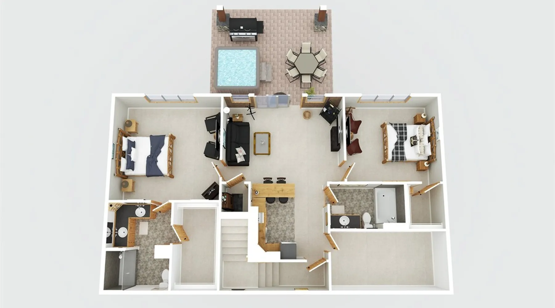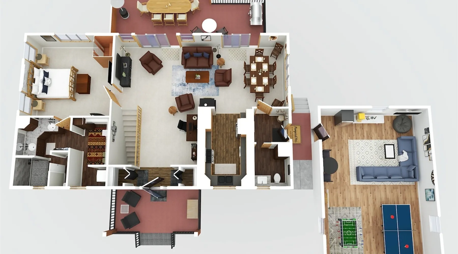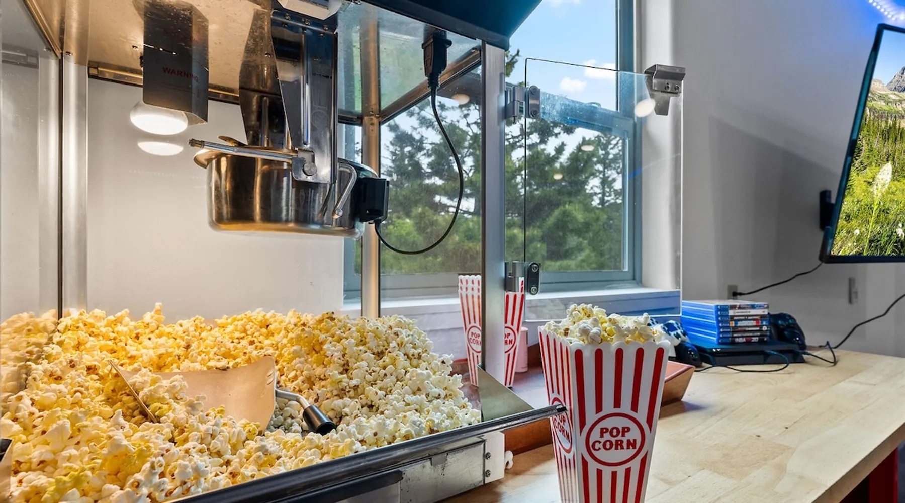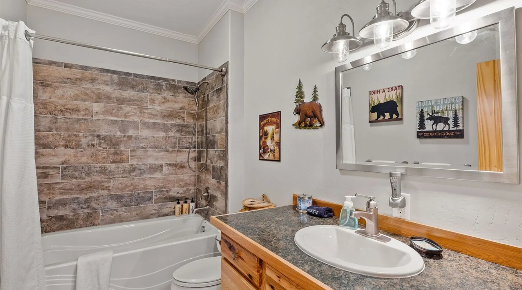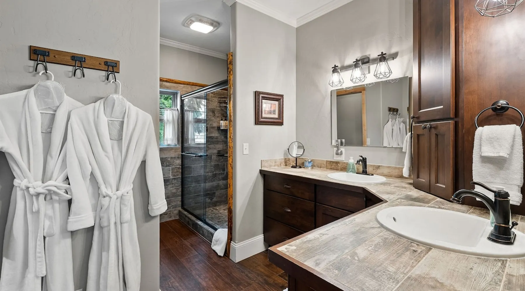 The perfect location to experience it all! Just 10 min from the West entrance of Glacier National Park, 29 miles from Flathead Lake (the largest natural lake in the west), 6 minutes away from two different ziplines and aerial parks, 4 minutes to mini golf, 10 minutes to water slides, along with ample opportunities for white-water rafting, horse-back riding, hiking, fishing, boating, skiing, biking and many other activities. Just 23 mi from Big Mountain, with 3000 acres of World class skiing! The space After a full day of adventure, come home and curl up by the fire or soak away your sore muscles in the large, 6 person hot tub. Enjoy amazing views of the river and mountains from the waterfront gazebo and secluded backyard or treat yourself to a family-style BBQ on the upper deck! There's plenty of space to unwind and relax with family and friends! Conveniently located within walking distance to groceries, fuel and dining and only 14 miles from Glacier International Airport. ☆☆ LUXURY AMENITIES ☆☆ This custom 3200 sq. ft. home combines rustic charm with five-star amenities for an incredible retreat! It offers 3 bedrooms, 3.5 bathrooms, spacious living areas, a well-stocked kitchen and sweeping balconies to help you relax while surrounded by natural beauty with river and mountain views. This home sleeps 10-12 and has been stocked with everything you'll need for an unforgettable vacation! With 43" 4K Smart TVs in every bedroom, a 60" Smart TV in each living room, a 6 person hot tub, stainless steel appliances, pine log beds with luxury mattresses, a fireplace, a fully-stocked kitchen including spices, coffee and tea supplies, a ping-pong table, foosball table, double shot basketball, corn hole, old fashioned popcorn maker, and much more! It even has three refrigerators and two dishwashers for those wanting to do their own meal prep, and a washer and dryer for your convenience. ☆☆ BEDROOMS & SLEEPING ARRANGEMENTS ☆☆ On the upper level you'll find a master suite (nicknamed the Eagle's Nest) with a luxury King size bed and ensuite bathroom including an infrared sauna, with large windows that look over the wooded back yard. On the lower level there is a second master suite (the Bear's Den) with a luxury King size bed and ensuite bathroom, the third bedroom (Moose Hollow) with a Queen size bed, each located conveniently right off the additional kitchenette, living room & bathroom. There is also a brand new sleeper sofa in the downstairs lounge area (Goat Mountain) and 2 rollaway beds and 2 blow up queen sized air mattresses available for extra guests. ☆☆ BATHROOMS ☆☆ This home is perfect for groups of 10-12 for many reasons, and one is because it has 3.5 updated bathrooms. The master bathroom has a gorgeous tiled walk in shower with rain shower features, two sinks with expansive counter space, huge walk-in closet, separate toilet room and designer finishes. The second ensuite bathroom has a walk in shower behind glass doors, rain shower features and double sinks with ample counter space and a large walk-in closet. The third bathroom features a tub/shower combo and a single sink with adequate counter space, while the half bathroom is conveniently located between the dining room and game room. Plush hotel quality towels are provided throughout. ☆☆ KITCHEN & LOUNGE ☆☆ Designed for entertaining groups, this home features multiple lounge spaces indoors and out and a fully stocked, galley style gourmet kitchen. The main living room has a wall of windows that overlook the shady patio and lush green, wooded property. The designer finishes and decor bring the beauty of nature indoors, and the luxury furniture makes this open space the perfect place to get together. Relax in the leather recliners or matching sofa and watch your favorite shows on the sleek 65" flat-screen TV. The gourmet kitchen sits right off the living room and dining room areas. There's room to keep your groceries in the cabinets and any one of the three stainless steel fridges, use the gas range to make homemade meals from scratch or heat leftovers in the microwave. Enjoy using the coffee maker for freshly brewed coffee, the toaster, blender, InstaPot, or any other gadgets to make your family's favorite meals and treats. The formal dining room sits in a sunny alcove of windows and offers comfortable seating for 8. Downstairs, there is even more room to hang out. A kitchenette with a fridge, dishwasher, microwave and slow drip and Kuerig coffee equipment and supplies, making it easy to whip up a quick snack or drink to enjoy in the adjacent secondary lounge area. Sit at the custom log bar with your snacks or set up your laptop here and get some work done. The lounge has a comfortable sofa in front of an electric fireplace, 65" flat screen TV, and sliding glass doors that lead out to the covered patio and hot tub. The final lounge area is a place the kids won't want to leave! Check out the brand new Infinity Game Table with games for all ages! Also features a large sofa/chaise lounger in a carpeted area for watching TV or playing your favorite PS4 game with an old fashioned movie theatre style popcorn popper. It also has an Infinity Game table, ping pong table, foosball table, and large connect four. This area is located in the detached, heated garage which is perfect for keeping the noise down in the main living areas. ☆☆ OUTSIDE SPACE ☆☆ Nothing beats feeling the crisp mountain air on your cheeks, hearing the chirp of a passing robin, the breeze as it ruffles the aspen leaves, and the sound of the river as it traverses down the canyon while sitting in the comfort of your own private deck in solitude. What a feeling of peace and freedom and exhilaration as you experience relaxation like never before! This nature lover's oasis offers multiple ways to enjoy the outdoors. There are two private patios, one on each level of the home. The main patio has soaring wood-paneled ceilings, outdoor lounge furni