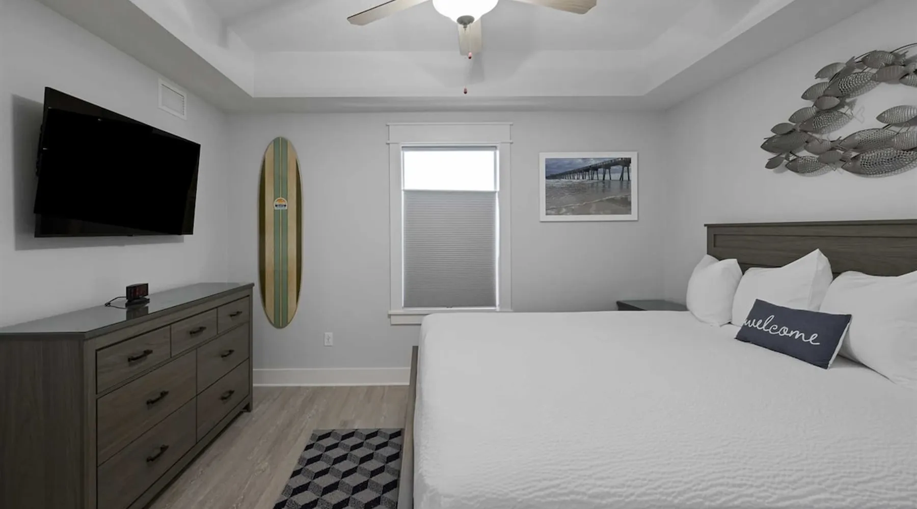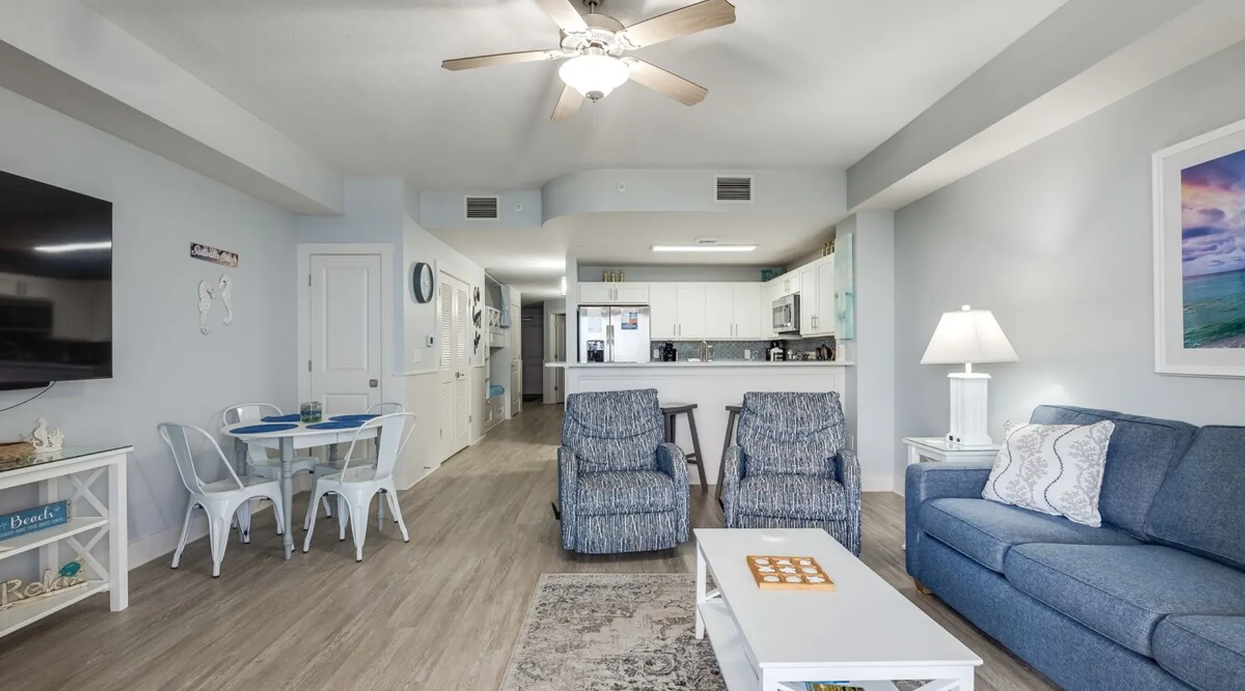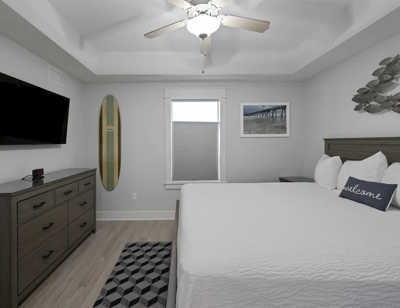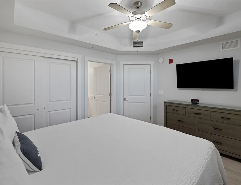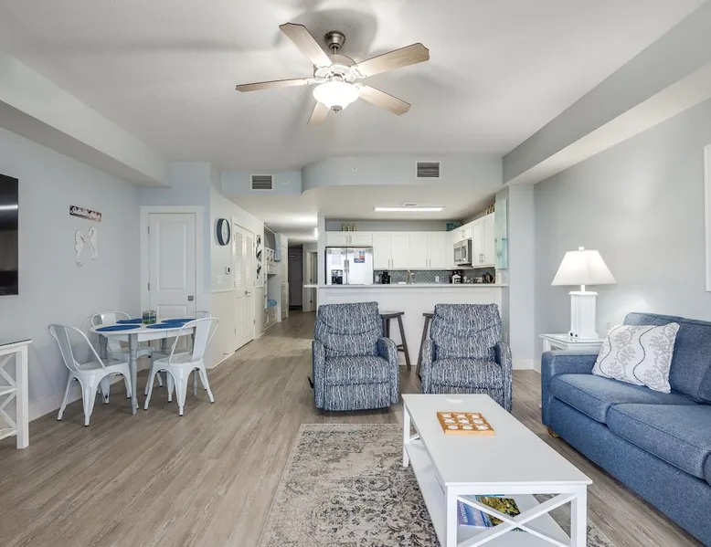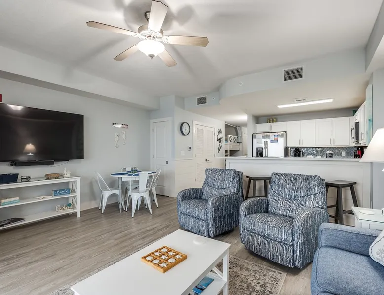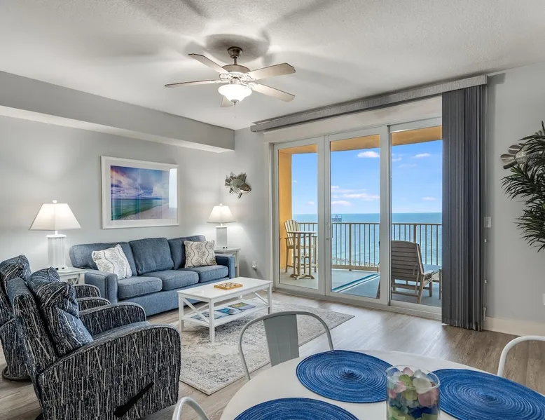 Includes beach setup! Saltwater Breeze is a beautiful condo located on the 22nd floor of Calypso Tower III. Saltwater Breeze offers the finest finishes including stainless steel appliances, large Smart televisions, & shiplap walls, coupled with exquisite furniture & decor. Park your car and forget it's there! Shopping, dining, and attractions are just steps away at Pier Park & the City Pier. The space Saltwater Breeze is a beautiful new condo located on the 22nd floor of Calypso Tower III. Saltwater Breeze offers the finest finishes including stainless steel appliances, large Smart televisions, & shiplap walls, coupled with exquisite furniture & decor. Park your car and forget it's there! Shopping, dining, and attractions are just steps away at Pier Park & the City Pier. This luxurious condo comes with all the comforts of home, including fully furnished kitchen (you supply the groceries), washer/dryer, plush, comfortable bedding, and spacious balcony for watching magnificent Florida sunsets. Saltwater Breeze invites you to enjoy two free beach chairs and umbrella on us! We’ve paid for this amenity so you don’t have to! (March 1 through October 31) BONUS: Guests receive 1 free daily admission to some of our favorite local attractions through our partnership with Xplorie. All perks are valid for stays up to 27 days and are subject to change and availability. BONUS PERKS INCLUDED WITH YOUR STAY (for stays beginning February 15, 2025): *1 FREE Round of Golf Each Day - Bay Point Golf *1 FREE Ticket to Sky Wheel Panama City Beach: Combo Flight Admission & Mini Golf *1 FREE ticket to Shipwreck Island Waterpark *1 FREE ticket to Island Time Sailing - Shell Island Snorkeling & Sailing Cruise (March-Oct) Calypso Tower III offers a plethora of amenities, designed to make your stay more enjoyable. A luxurious, zero-entry heated pool is available for your swimming pleasure year round. A large sundeck with loungers lets mom relax and read a book while the kids swim. For those hoping to avoid the sun, cabanas are available for rental. Hot tub and Fire Pit are available for those chilly evenings when you're not quite ready to head back upstairs! Pool bar, restaurant, fitness center and gift shop are available on the first floor. At Emerald Hub you will find Charlie’s Café serving Charlie’s Donuts and Lucky Goat Coffee, Happy Scoops dishing up premium ice cream, Golden Seashell offering an assortment of beach supplies and Emerald Kitchen serving fresh made to order sandwiches, flatbreads and sides. And beach access is just 200 yards away! Calypso Tower III’s Resort common areas are smoke-free too, for your family’s health & safety. The building is angled to provide views of the ocean, coastline, pier, and sunsets as well as views of Pier Park and all of the activities there. A 3rd floor walkover connects Tower III and the parking garage to Towers I and II. Calypso Tower III is located on Front Beach Road and is walking distance to Pier Park, Shuck’ums, Diego’s Burritos, and soon-to-open Top Golf of Panama City Beach! Walk to Runaway Island, Sharky's, and the Pier. Pier Park offers shopping, Skywheel, Grande 16 Theater and Dave & Buster's. Concerts and Festivals at Aaron Bessant and Frank Brown Parks are also just steps away! Saltwater Breeze and Building Information: Free high-speed WiFi and cable Elevator in the building This rental is located on the 22nd floor. 1 king bed, 1 set of twin bunk beds, 1 queen sleeper sofa 2 full bathrooms This unit comes with 1 parking space. Calypso charges $60 per vehicle to park per stay. Additional parking passes are subject to availability and cost $60 each. Management Fee includes parking for 1 vehicle, as well as cost for wristbands, also required by the complex. Parking Notes: To enter the garage, you will need the barcode you purchased from your Calypso Registration email. This is your gate access and the only way in and out of the parking garage. Once inside the garage, you may park in any unmarked spot. The sky bridge is located on floor 3. Keep in mind: the parking garage max vehicle height is 7’ and there is no guaranteed onsite parking for oversized vehicles. No Scooters, Golf Carts, Rentable Mini Vehicles, Boats or Trailers allowed on the property. INITIAL SUPPLIES - UPON ARRIVAL Florida Panhandle Property Management furnishes a few essential items for guests to utilize until they can get to the store. Initial Supplies include: Dishwasher soap, small washing machine powder, each bathroom has starter amenities shampoo, conditioner, soap bar. One roll of toilet paper in each bathroom & one paper towel roll in the kitchen. All bed linens & towels are provided, as well as beach towels and black makeup washcloths. IMPORTANT INFORMATION IN ORDER TO ENJOY YOUR STAY This unit sleeps up to 6 people. NO smoking (cigarettes, marijuana, cigars) or vaping allowed, even on the unit’s balcony area. Check-in is at 4:00 pm, and check-out is at 10:00 am. Primary renter must be 25 years of age and remain on property for the duration of the stay. In accordance with Florida State Statute 509.41, reservations made under false pretense are null and void, and check-in will not be allowed, or guests will be asked to vacate the residence without refund. Property Wristbands: Must be worn on your wrist at all times while on the property. This is for your safety, as well as for your fellow guests. Quiet time hours & disturbances: Quiet Hours: 10:00 PM – 10:00 AM. Be mindful of other guests and keep noise levels to a minimum at all times. This resort has a zero-tolerance noise policy. If there is a noise complaint from other guests, security, or neighbors, you may be issued a warning or be asked to leave the resort without a refund. Pools & Hot-Tub: Hours: Open 8am-10pm / Closed from 10pm– 8am for maintenance. Chairs are available on a first-come, first-served basis. Towels and other personal items do not reserve chairs. People do. Refer to posted pool rules befo