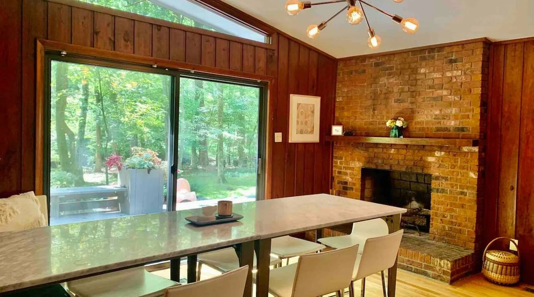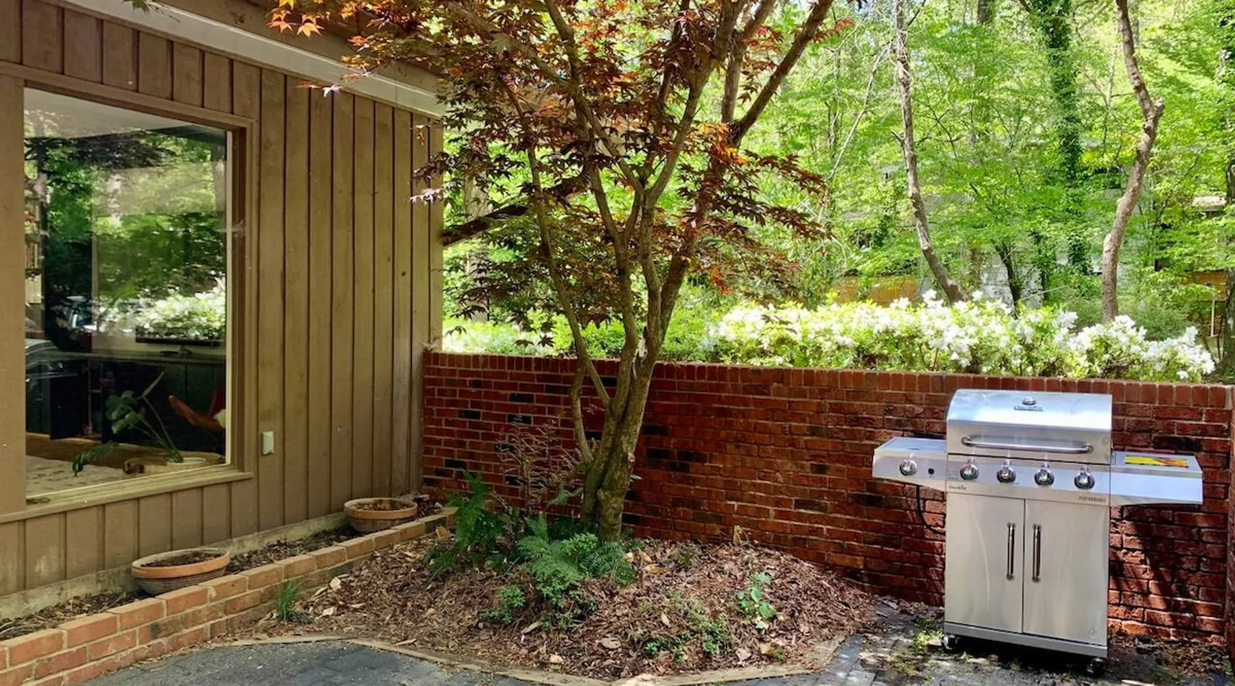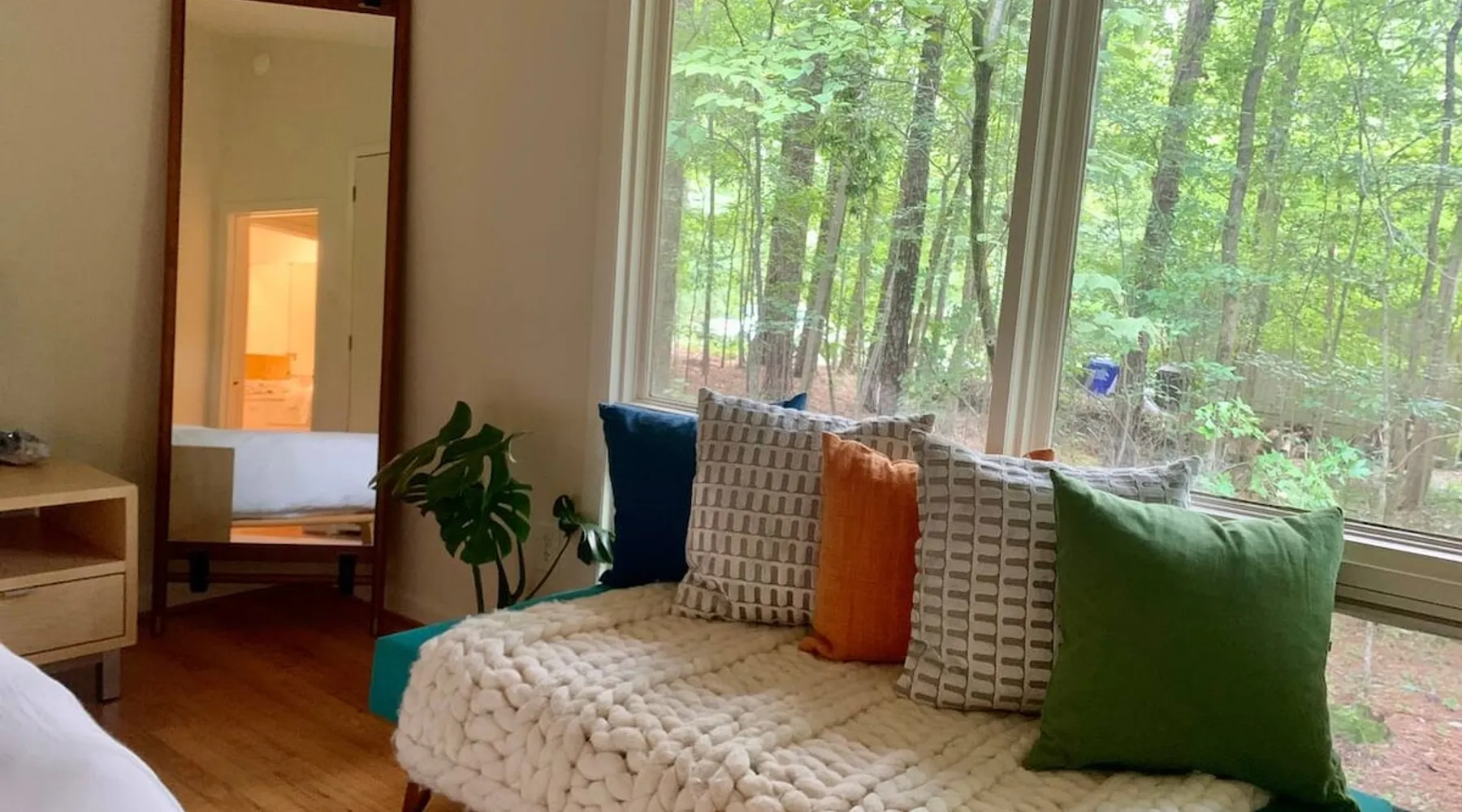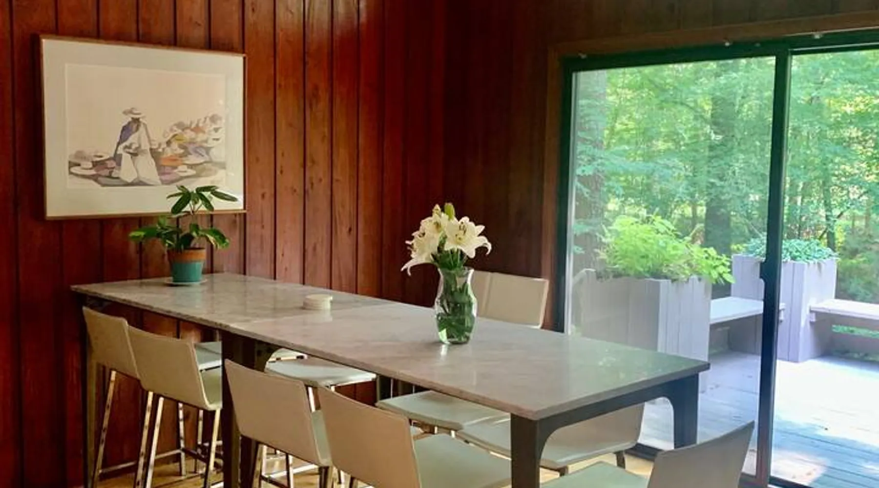 This curated 3BR/2BA mid-century modern Chapel Hill home blends comfort, style, and nature in perfect harmony. Designed by renowned local architect JP Goforth, the home sits on a wooded acre with a private creek and features king beds in every room, Sonos audio, and fiber WiFi. Relax on the deck, fire up the grill, or unwind inside surrounded by stunning hand-selected art and furnishings. Minutes from UNC, Whole Foods, and Eastwood Lake, it’s a true retreat for anyone craving serenity and style. The space Designed by local legend and architect JP Goforth and wrapped in nature, this one-level mid-century gem blends iconic design with thoughtful hospitality. Mid-Century Designer is thoughtfully managed by me and my team at The Brighthouse, local hospitality experts known for warm, elevated guest experiences. It’s a tranquil retreat, steps from Eastwood Lake, 10 minutes drive to UNC, and perfect for peaceful escapes or connecting with loved ones. ✨ Key Features - 3 spacious bedrooms, all with king beds and premium linens - 2 bathrooms with rainfall shower, tub/shower combo, and bidets - Kitchen with gas range, Fellow Kettle, French press + drip coffee (coffee provided) - Formal dining room with CB2 marble table (seats 9) - Eat-in kitchen with second CB2 marble table + leather seating - Living room with handwoven Moroccan rugs, live plants, 65” Apple TV - Fiber internet (404+ Mbps), Sonos sound system - Multiple indoor reading and relaxing nooks - Each room features original, signed artwork - Back deck with gas grill, seating, and forest views - Private wooded lot with babbling creek and wildlife ✨ Bedrooms & Bathrooms Overview This thoughtfully designed one-level home offers three spacious bedrooms and two full bathrooms, all positioned for comfort, privacy, and style. Primary Bedroom + Ensuite Bath - King bed with premium linens - Vaulted ceiling and curated artwork - Ensuite bath with rainfall shower, transom window for natural light, and bidet - Located near the kitchen with private and shared access Second Bedroom + Shared Bath Access - California king bed (ideal for taller guests) - Roku TV, closet and dresser - Shares hallway access to full bath with tub/shower combo and bidet Third Bedroom + Shared Bath Access - King bed with West Elm frame, luxurious linens, and down pillows - Backyard views and cozy lounge couch - Shares access to hallway full bath - Both bathrooms are stocked with plush towels, body wash, shampoo, conditioner, and bidets for added comfort. ✨Outdoor Space - Private wooded acre with seasonal creek - Deck with built-in seating and gas grill - Wildlife sightings: blue herons, deer, hawks, owls - Front courtyard patio with a mature Japanese Maple tree for morning coffee - Steps from walkable, quiet roads and trail connections Guest access You’ll receive a door code for self-check-in. Arrival instructions will be sent the morning your reservation begins. Other things to note The home has several fireplaces. These may be used with prior permission only. Due to the expensive items in the home, it is generally not suitable for young kids. If you'd like to bring young children with you, please get in touch so that we can make sure this will be a good fit for all. Because this is an older home from the 70s and that it sits on wooded acre in NC, outdoor bugs may sometimes find their way indoors, especially if the deck sliders are left open. The house is regularly treated for pests and is thoroughly and professionally cleaned weekly. NOTE: Absolutely no parties. All guests must be registered. QUIET HOURS Quiet hours after 10pm and before 8am as part of our good neighbors policy.