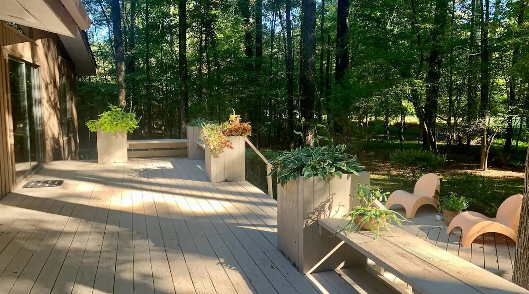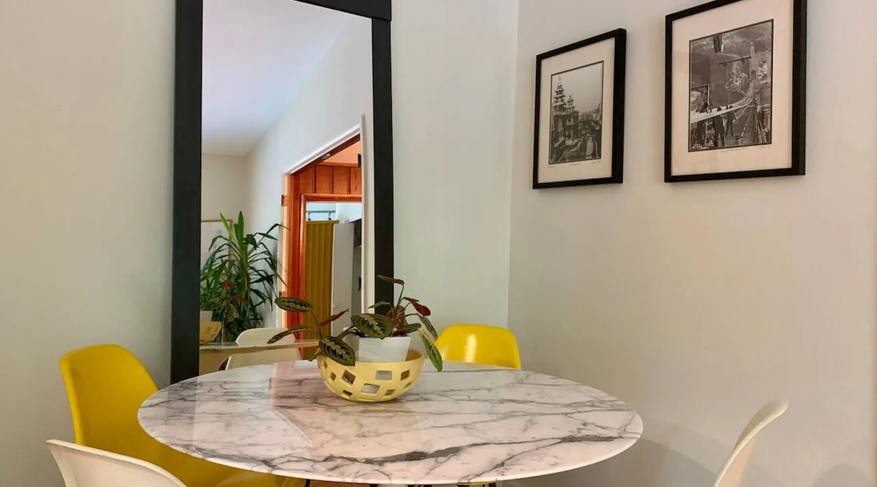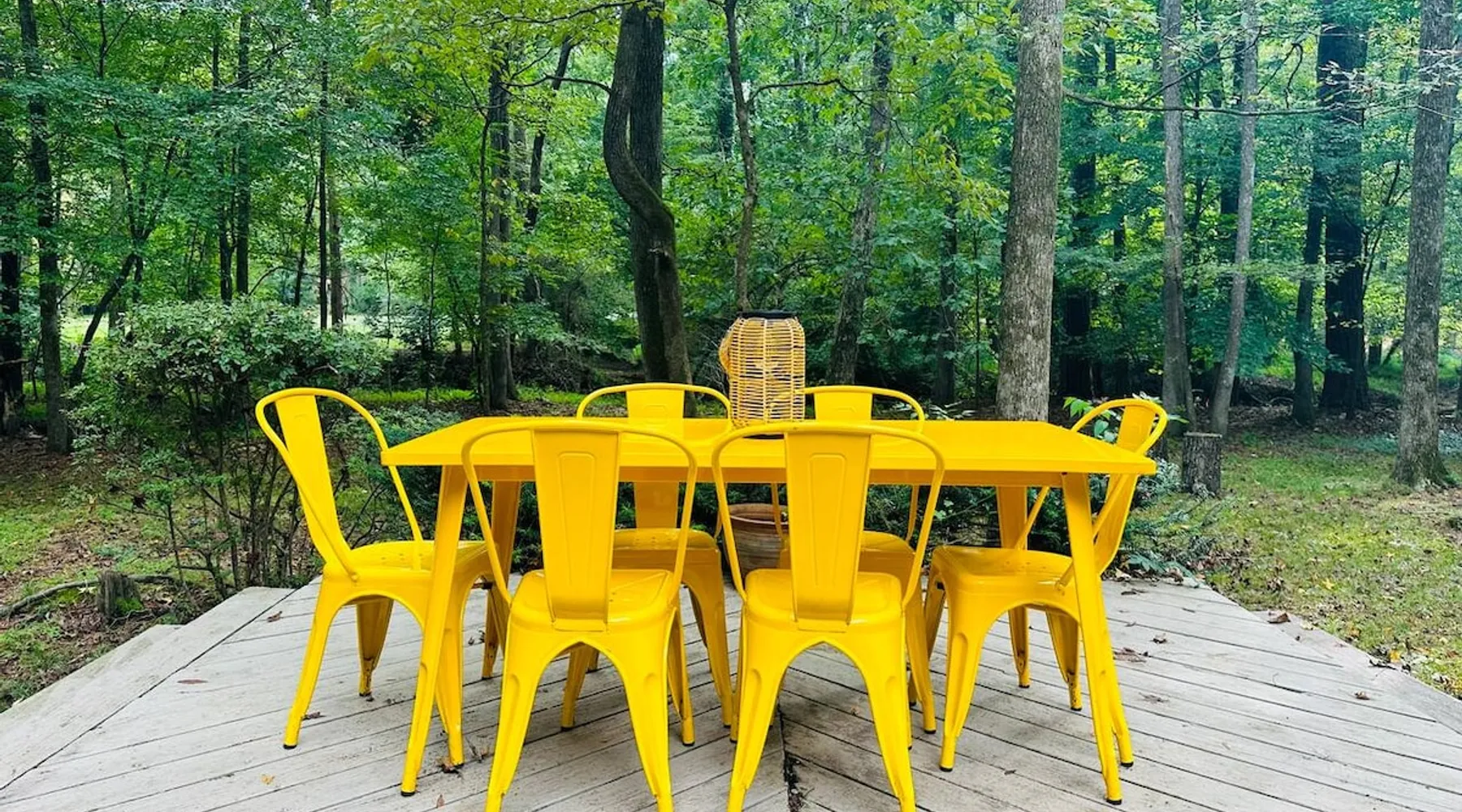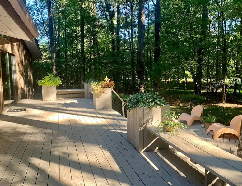 This curated 3BR/2BA mid-century modern Chapel Hill home blends comfort, style, and nature in perfect harmony. Designed by renowned local architect JP Goforth, the home sits on a wooded acre with a private creek and features king beds in every room, Sonos audio, and fiber WiFi. Relax on the deck, fire up the grill, or unwind inside surrounded by stunning hand-selected art and furnishings. Minutes from UNC, Whole Foods, and Eastwood Lake, it’s a true retreat for anyone craving serenity and style. The space Designed by local legend and architect JP Goforth and wrapped in nature, this one-level mid-century gem blends iconic design with thoughtful hospitality. Mid-Century Designer is thoughtfully managed by me and my team at The Brighthouse, local hospitality experts known for warm, elevated guest experiences. It’s a tranquil retreat, steps from Eastwood Lake, 10 minutes drive to UNC, and perfect for peaceful escapes or connecting with loved ones. ✨ Key Features - 3 spacious bedrooms, all with king beds and premium linens - 2 bathrooms with rainfall shower, tub/shower combo, and bidets - Kitchen with gas range, Fellow Kettle, French press + drip coffee (coffee provided) - Formal dining room with CB2 marble table (seats 9) - Eat-in kitchen with second CB2 marble table + leather seating - Living room with handwoven Moroccan rugs, live plants, 65” Apple TV - Fiber internet (404+ Mbps), Sonos sound system - Multiple indoor reading and relaxing nooks - Each room features original, signed artwork - Back deck with gas grill, seating, and forest views - Private wooded lot with babbling creek and wildlife ✨ Bedrooms & Bathrooms Overview This thoughtfully designed one-level home offers three spacious bedrooms and two full bathrooms, all positioned for comfort, privacy, and style. Primary Bedroom + Ensuite Bath - King bed with premium linens - Vaulted ceiling and curated artwork - Ensuite bath with rainfall shower, transom window for natural light, and bidet - Located near the kitchen with private and shared access Second Bedroom + Shared Bath Access - California king bed (ideal for taller guests) - Roku TV, closet and dresser - Shares hallway access to full bath with tub/shower combo and bidet Third Bedroom + Shared Bath Access - King bed with West Elm frame, luxurious linens, and down pillows - Backyard views and cozy lounge couch - Shares access to hallway full bath - Both bathrooms are stocked with plush towels, body wash, shampoo, conditioner, and bidets for added comfort. ✨Outdoor Space - Private wooded acre with seasonal creek - Deck with built-in seating and gas grill - Wildlife sightings: blue herons, deer, hawks, owls - Front courtyard patio with a mature Japanese Maple tree for morning coffee - Steps from walkable, quiet roads and trail connections Guest access You’ll receive a door code for self-check-in. Arrival instructions will be sent the morning your reservation begins. Other things to note The home has several fireplaces. These may be used with prior permission only. Due to the expensive items in the home, it is generally not suitable for young kids. If you'd like to bring young children with you, please get in touch so that we can make sure this will be a good fit for all. Because this is an older home from the 70s and that it sits on wooded acre in NC, outdoor bugs may sometimes find their way indoors, especially if the deck sliders are left open. The house is regularly treated for pests and is thoroughly and professionally cleaned weekly. NOTE: Absolutely no parties. All guests must be registered. QUIET HOURS Quiet hours after 10pm and before 8am as part of our good neighbors policy.