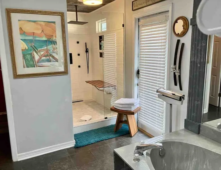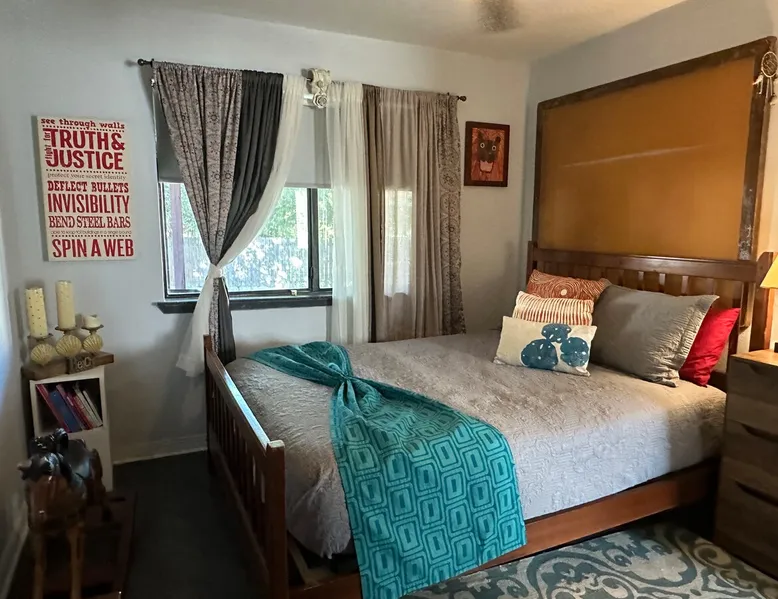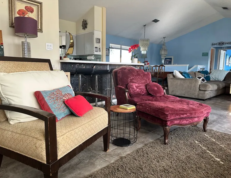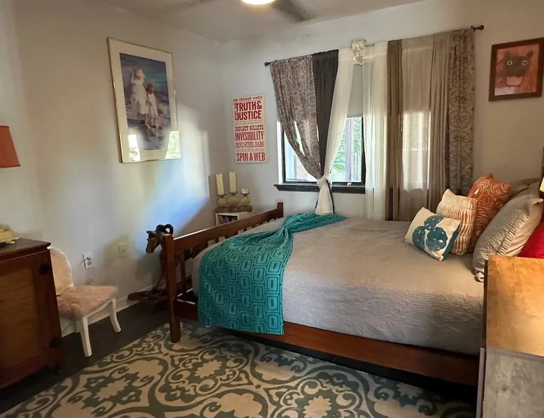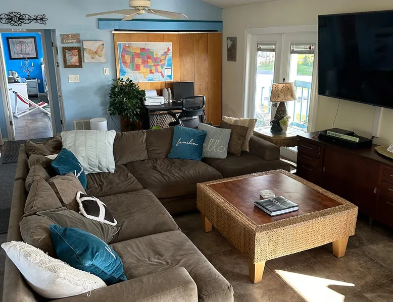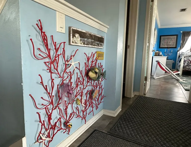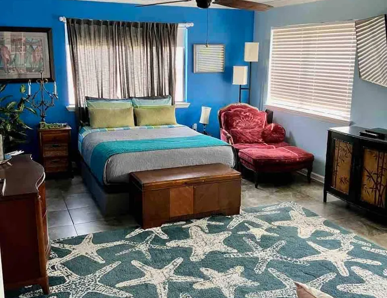 PrIvate 3BR/2.5 bath 2700sq ft Modern Island Beach Retreat. We strive to help you pack light & feel at home. Please treat it respectfully, It’s beautiful & the Beach couldn’t be closer. Load up a cart & walk over after settling in, claiming your bed & enjoying views. Lg. upper deck. Open 16’ ceiling LR w/75” 4K SmartTV, 1st fl. Den & 2nd fl. MB Ste 42”TVs, Walk-in Rain shower, WiFi, Kitchen, 2.5 Bath, privacy fenced, gas grill & fire-pit. Pre-Approved pets OK 125$ NRPF The space Guests enjoy our entire Two-Story Modern Beach Retreat House. Spacious and renovated, there are 3 bedroom, 2.5 Baths, 2 Living-rooms, Library wall, Full Kitchen w/SS appliances, Cathedral Ceilings and a 1st floor Kitchenette/bar. Complimentary W/D. The attached garage is fully beach-gear-stocked, including 3 adult beach cruisers and scooters/bikes for ages 3-12 that guests can borrow (at their own risk & at no charge). There is 1 inside parking stall area with garage door remote. Outside there is an expanded 1000 sq wrap-around Trex Deck on the upper floor with Gulf views & garden boxes. Lounge chairs for tanning & watching sunsets. There is also casual seating & a glass table that seats 4. There is a screened in porch below that includes a 5 ft. white wicker loveseat swing, ceiling lighting and outdoor fans. Enjoy a relaxing dinner at the slate dinner table that seats 6+. This area looks out to the large tropical yard that is fully enclosed with a 7’ privacy fencing and can be accessed via the 1st floor atrium back door, or through the exterior screen door in the gas grill BBQ area. There is a side gate w/ driveway access and a side door that opens into the garage as well. A solar lit staircase with hand railing provides exterior access from the upper deck down to backyard. There is a safety gate on the upper deck. The backyard has a bricked seating area with a 4’ gas fire pit, a putting green area, a balance beam, a round tree swing and a built in sandbox. The upper floor of the house has a huge master bedroom suite (23x19 new drywall, paint & crown molding) w/ large private bathroom, walk in shower w/built in bench & a separate luxury soaking tub with skylight. The MBS also has its own private entry from outside. It’s adjacent to large open-plan Grand Living Room that includes an additional extra sitting/play area with lay-down couch and built in library wall. There is also an office wall with desk, monitor and printer. Enjoy a well stocked Kitchen. Renovations included the addition of custom original Chicago tin ceiling panels up the breakfast bar side. The vaulted 16’ cathedral ceilings & large picture windows on both the Gulf & Bay sides of the house make for a large lovely, open & sun-drenched space during the day with wooden blinds that can also be closed for complete privacy. A set of French doors just beyond the office area open up to a separate private front deck that’s covered. Enjoy your morning coffee or a glass of evening wine sitting in the large comfortable reading/relaxing wicker chairs that look out to the Gulf. The Ground floor has 2 bedrooms and a full Bathroom directly off a second TV/media room. There is a kitchenette on one side with a microwave, toaster, and mini-fridge w/freezer conveniently located under the counter/bar. A wide breakfast hall with a table for two leads to an exterior door with direct access to the screened in porch, backyard and Grilling area. The bath is newly renovated, modern, and well stocked- including 100% cotton towels. Both bedrooms have newly tiled floors, new drywall, fresh paint and new ceiling light/fan fixtures with remote controls. The house is architecturally laid out well, fully furnished & comfortable. Samsung 4K Smart TVs, Direct TV, DVD players & there is complimentary hi-speed satellite WiFi on both floors and in the Master bedroom. Private keyless entries on each floor. If you’d like to dip your toes in the sand & swim with the fish - grab beach towels from above the W/D cabinets, chairs, and umbrella, gear from garage.. and head out the front door. The signed brick path and sidewalk lead straight to the boardwalk & BEACH. It’s so close that you can hear the surf laying in bed at night. *The beach has lifeguards on duty daily until 5pm Guest access Coffee k-cups for a couple days, typically a couple bottled waters in each fridge, tea, condiments, cooking spices, and a complimentary basket of snacks is made available: you can make grits or oatmeal, grab a protein bar, pack a snack to eat on the go. The main Full kitchen is located on the 2nd Floor. The 1st floor kitchenette conveniently has its own small fridge/freezer, a Kurieg, convection oven, a toaster, & a microwave. There is also a full sink w/garage disposal by the washer & dryer on the 1st floor as well. By all means gather around the gas fire pit in the evening- kick back and relax. The gas grill is also available for guests to use- the grilling utensils & grates are inside the garage hanging. Please Wash & return them, and please clean off the grates and put the cover back on after it cools off. Guests who leave the gas/ propane tank on will incur an extra 50$ charge to refill it. Private lower screened in porch is located outside the 1st floor area. It has its own entry door and also opens out to the back yard. Smoking is allowed ONLY in designated areas, and ashtrays are provided. They can be used OUTSIDE on the front porch, in the back screened porch, by the fire pit, and on the upper back wrap around deck tables. The ashtrays are usually kept outside in the kitchen sink area if they are not set out. Please empty and clean them out before you leave. There will be an extra 25$ charge for each dirty ashtray left, 75$ for butts that are not thrown out properly and 250$ will be taken from your security deposit for Vaping or Smoking inside of the house anywhere at any time. Kerosene candles are provided in many areas outside for guests to light. Make sure they are full