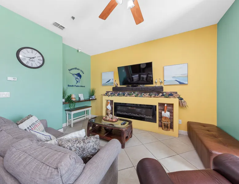 Swordfish Villa #1 on East Swordfish St is the perfect spot for your next beach getaway! Discover the convenience of staying at our Swordfish Villa this summer with our affordable MONTHLY rates. Situated just a short distance from the popular Grapevine Café and a mere half block away from the beach, our location offers easy access to South Padre Island's vibrant Entertainment District. Here, you can explore Art Galleries, boutiques, eateries, bars, sweet shops, a picturesque sunset viewing park, and more. Accommodating up to 6 guests, our villa features 2 bedrooms, 2 bathrooms, 2 queen beds, and a queen sofa bed. Additionally, you will find a fully equipped kitchen with utensils, a dining area, and laundry facilities. Unwind by the shared pool after a day at the beach or grill out in our cozy BBQ area. Stay connected with complimentary WiFi and enjoy entertainment with Spectrum cable TV. IMPORTANT: You are booking a private beach home. As much as we like to please your every need, we DO NOT work as hotels do. We are not a 24/7 service. Any overnight requests, other than REAL emergencies, will be look after the next day. If there is an emergency that threatens a persons life, please call 911. VAYK GEAR is a premier BEACH Equipment Rental Company offering top-of-the-line gear for your perfect beach day. You may receive an email from them regarding a credit from Blue Ocean Vacation Rentals for the rental of your preferred beach equipment. Visit their website to select from a wide range of high-quality beach gear to make the most of your beach getaway. The owners of Swordfish Villa #1 welcome you to their beach home! While staying here, we ask that you follow a few requests that will make everyone’s stay more enjoyable and keep the property looking good year after year. 1. Parking ~ is limited to 2 vehicles. Vehicles must be licensed, operable and registered to the occupants. Unauthorized vehicles will be towed at the owners’ expense. 2. Occupancy ~ Maximum capacity per unit is NO MORE than 6 guests. There must be at least one adult 25 years of age or older, registered, present and residing in the unit through the duration of the tenancy. 3. Pets ~ We do not accept pets in our property. The knowledge or trace of unauthorized pets will mean a fine of $400. 4. Noise ~ Loud noise of any sort; music, loud talking, boom boxes, etc. is not allowed. 5. Garbage and Tidiness ~ Garbage should all be disposed green dumpster on the sides of the building. Please DO NOT dispose of cigarette butts, cans, candy wrappers, trash on the ground. We work hard to make certain the property looks good when you check in. Please help us keep it that way by picking up any litter before you leave. 6. Pool ~ Please wash ALL sand from your body BEFORE entering our pool. The pool equipment cannot handle sand from the beach and causes damage and equipment failure. Please DO NOT leave your children unattended and observe pool hours. 7. BBQ ~ BBQ pit is included. 8. Wheelchair accessible is for standard door front entrance and elevator only. 9. Once booked, we will send a custom Rental Agreement for you to complete and send back to us. Without this agreement we will not be able to host you. Note: The owners of this property will allow Spring Breakers under the strict rules of the premises. Break the rules and be evicted without refund . Check in is easy and available 24 hours a day with a smart lock on the entrance door. The lock box code will be provided to the guest about 48 hours before arrival. Hosts will be available for check-in assistance up until 10 pm, we ask that guests arriving late please let us know via text. GUESTS: PLEASE KNOW THAT WE REQUIRE EXTRA INFO PROVIDED ON A SIGNED RENTAL AGREEMENT. Service Animals need to be with the person they service 24/7. Service Animals cannot be left alone in the property. A service animal left alone in the property is not a service animal and will be penalized with a $400 fee. Child's highchair & pack & play on request at $25/each, billed on a separate invoice. You are booking a private beach home. As much as we like to please your every need, we DO NOT work as hotels do. We are not a 24/7 service. Any overnight requests, other than REAL emergencies, will be look after the next day. If there is an emergency that threatens a persons life, please call 911. For special requests outside our scope of work, please message us to get our Concierge's contact. Date changes might be granted depending on the date of the change for a $100 change fee plus any difference in price. Cancellations for nightly reservations will receive a 96% refund if they are made more than 30 days before the scheduled arrival date. Please note that a service fee of $25 will also be charged for all cancellations, regardless of the timing. There will be no refund if the cancellation comes is made. This policy does not extend to bookings that are eligible for monthly discounts. Checkout instructions Gather used towels Throw trash away Turn things off Leave beds unmade. Wash & dry all dishes & utensils. Empty refrigerator, clean up spills. Set AC to 78 Leave property neat with furniture in original order. Close all blinds, Close and lock all doors and windows. Please leave all items we provided. We charge for missing items. Gather all your belongings, we cannot be responsible for items left behind. PLEASE LEAVE ALL PARKING PASSES FOR THE NEXT GUESTS! Lock up If possible, we would appreciate it if you could let us know if you check out earlier than 10am. A good cohabitation requires common sense, respect for sleep hours, politeness, tidiness and awareness of the common good. Thanks for helping insure a great vacation for everyone! We hope I was able to provide you with the 5 Star Experience you were looking for and will continue to serve you all along your stay with us, so if you need anything, please let us know! Have a wonderful stay! -Rod & Rosa