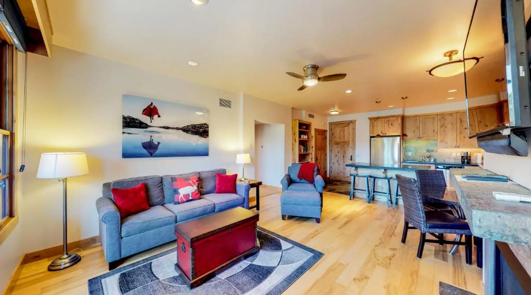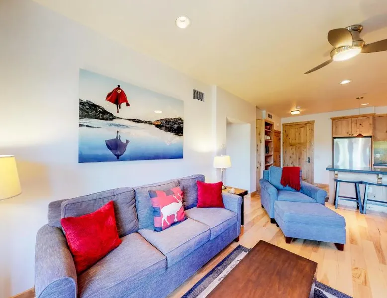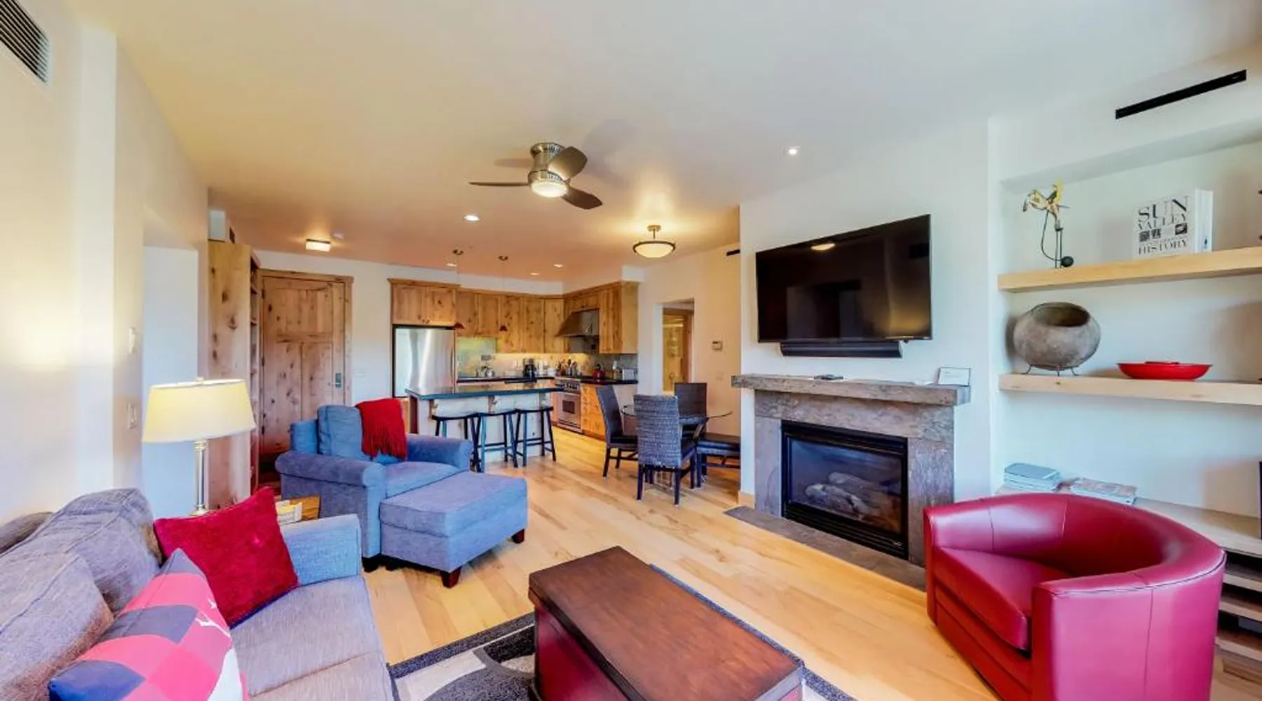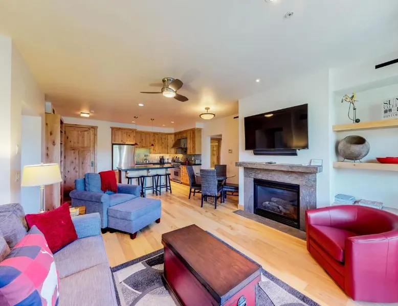 Spacious Accommodations: Elkhorn Springs Getaway in Sun Valley offers a spacious apartment with two bedrooms and two bathrooms. The living room features a sofa bed and a dining area, providing ample space for relaxation and entertainment. Modern Amenities: The apartment includes air-conditioning, a terrace, balcony, and a fully equipped kitchen with a dishwasher and microwave. Additional amenities include a washing machine, fireplace, barbecue, and free toiletries. Dining and Leisure: Guests can enjoy meals at the on-site restaurant or prepare their own meals in the fully equipped kitchen. The property also features a fitness room and a elevator, ensuring a comfortable and active stay. Activities and Location: Sun Valley is known for its skiing and cycling opportunities. Friedman Memorial Airport is located 14 mi away, providing convenient travel options. The fireplace is a top feature of this apartment. Boasting a private entrance, this air-conditioned apartment comes with 1 living room, 2 separate bedrooms and 2 bathrooms with a walk-in shower and a bath. Guests will find a stovetop, a refrigerator, a dishwasher and kitchenware in the well-fitted kitchen. The apartment also includes a barbecue. The spacious apartment features a washing machine, a tea and coffee maker, a seating area, a TV with cable channels, as well as mountain views. The unit has 3 beds.