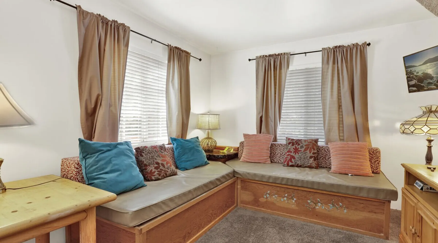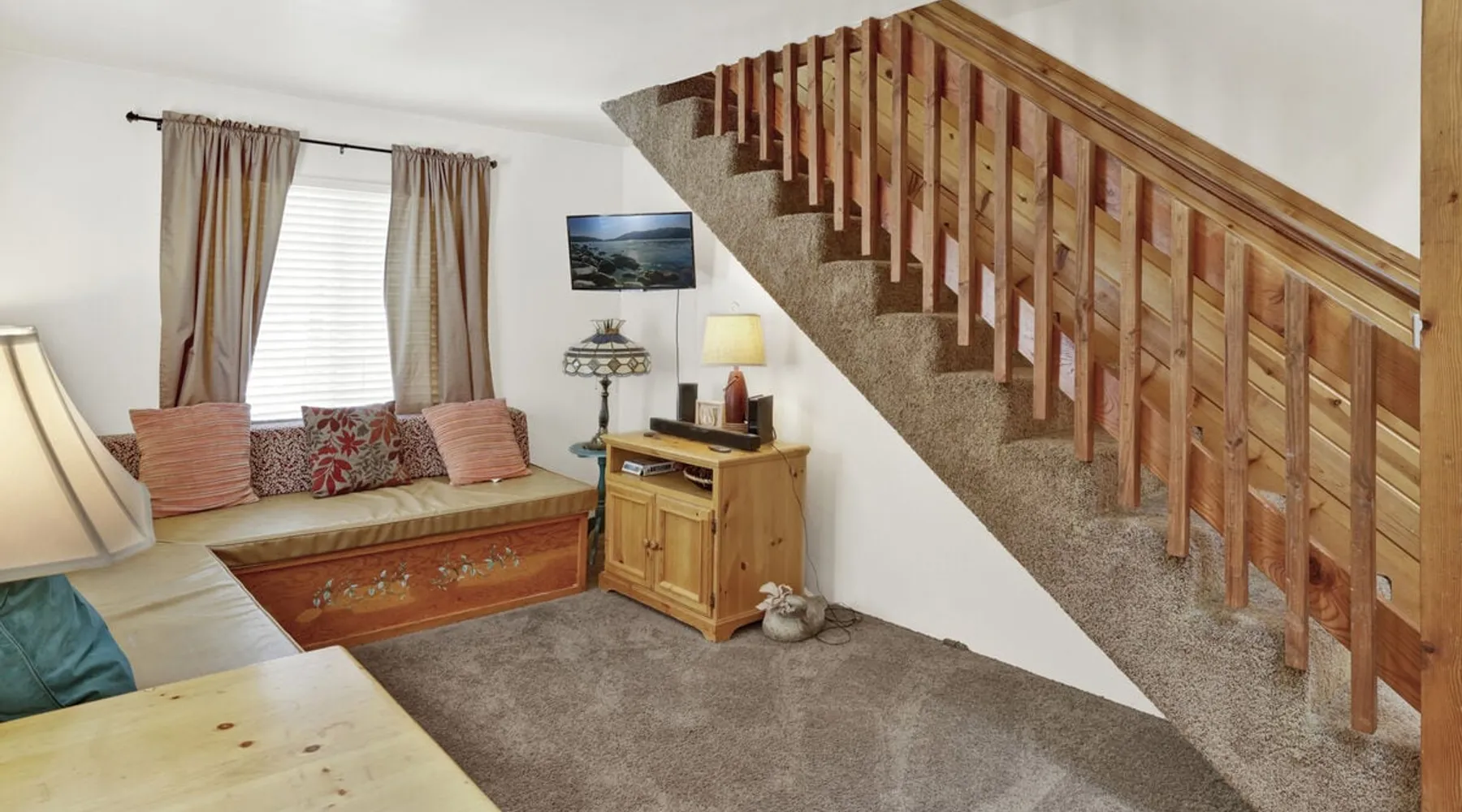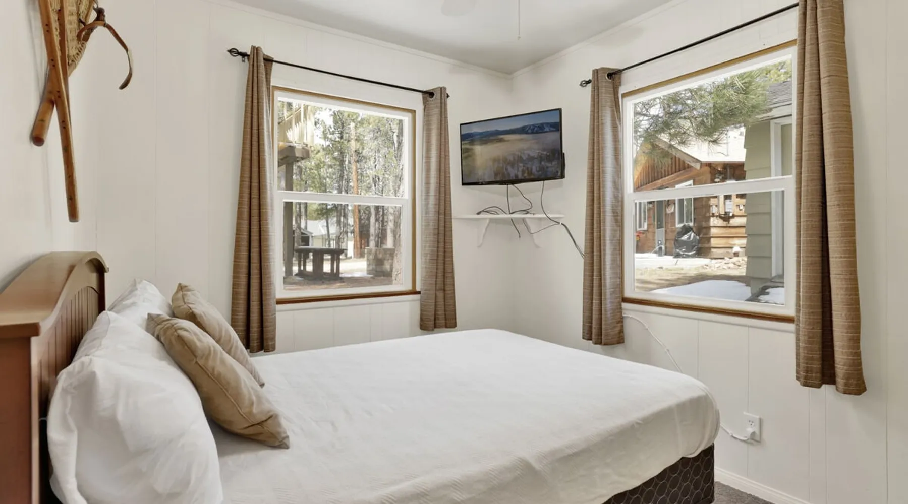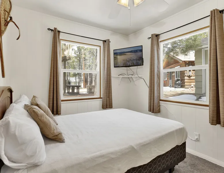 Life of Riley is a nicely furnished and comfortable two story mountain home that is conveniently located on a wonderful treed lot within a short walk to the local marina and lake, and makes for the perfect destination for a couple or small family. Boasting cozy mountain furnishings along with the essentials for a great vacation you will love your visit here at this central chalet. The space Life Of Riley | Hot Tub | Walk To Marina & Village Life of Riley is a nicely furnished and comfortable two story mountain home that is conveniently located on a wonderful treed lot within a short walk to the local marina and lake, and makes for the perfect destination for a couple or small family. Boasting cozy mountain furnishings along with the essentials for a great vacation you will love your visit here at this central chalet. Stroll down to the local marina or hop in the car and you are under ten minutes to the resorts- the possibilities are endless from here. Climb the entrance stairs where you will then enter your home into a nice sitting area offering couches, a flat screen TV with Cable, and complimentary hi speed WIFI so you can relax and snuggle up as you pop on a movie together and watch the snow falling outside. You will love the cozy living and dining room area around the corner, with an added couch for seating and cute dining table for meals, there is plenty of room to make memories together for your group here. The kitchen is fully equipped with basics for preparing your meals, deep blue granite counters paired with knotty pine cupboards, plus cookware and general appliances are available for you, plus there is a toasty wood burning fireplace here for a warm and cozy meal. This lower level offers your bedroom and bathroom while the upstairs loft area is available for additional sleeping, all are made up for your arrival with warm linens, blankets, pillows, and fresh towels for your group when you arrive for your vacation stay. Venturing outside you will find an amazing sun deck and patio area which offers a Charcoal BBQ and sitting chairs for your to unwind in the evenings. You will love soaking up your day as you relax in the private hot tub under the pines as you look for shooting stars. This fun and comfortable cabin is centrally located close to the marinas and lake, and under a ten minute drive to all that Big Bear has to offer, making this the perfect destination for your next mountain vacation! Sleeping Arrangements: Bedroom 1: Full Bed, TV w/ Cable- Downstairs Entry Level Loft- Full Futon Bed, TV w/ Cable- Upstairs 2nd Level Bathroom Arrangements: Hallway Full Bath- 1st Level -Sleeps 4 -1 Car Driveway Parking -2 Pets Welcome w/ Additional Fee -904 Square Feet City Permit #: VRR-2024-1601 Registration details 2024-1601