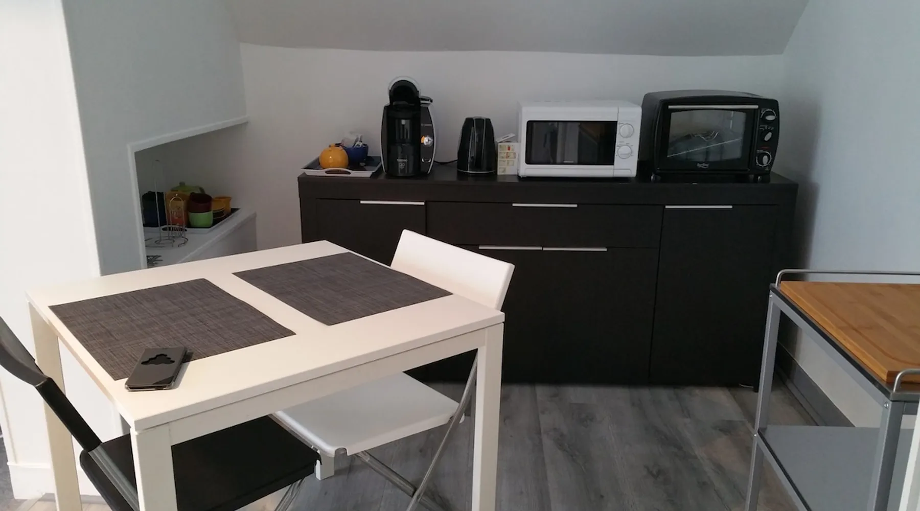 The studio is on the first floor of a house (access by an outdoor staircase) in old Meung sur Loire. The house is located 200m from the castle of Meung sur Loire, on the route of the Loire by bike, 2 minutes by car from Hyper U de Baule, 30 minutes from Blois and Orléans and 23 minutes from the Saint-Laurent-Nouan power plant. The space The accommodation is independent and has: - a double bed, a TV and a dining area - an equipped kitchen area (small fridge, mini oven, microwave, Tassimo coffee maker, dishes, kitchen utensils) - a bathroom with a shower and a hair dryer - quality Wifi A baby bed can be provided upon request Sheets, towels, and a few Tassimo capsules will be waiting for you when you arrive. Guest access Parking is in the streets of Meung sur Loire (spaces available nearby). The access to the apartment is autonomous, with the help of a key box. Other things to note We speak French, English and Polish