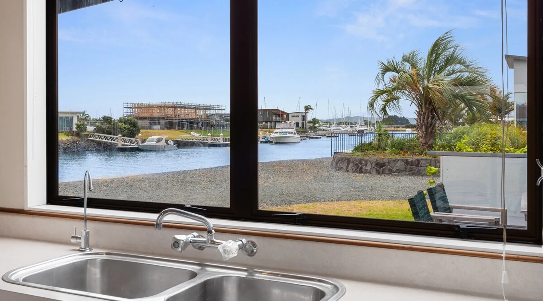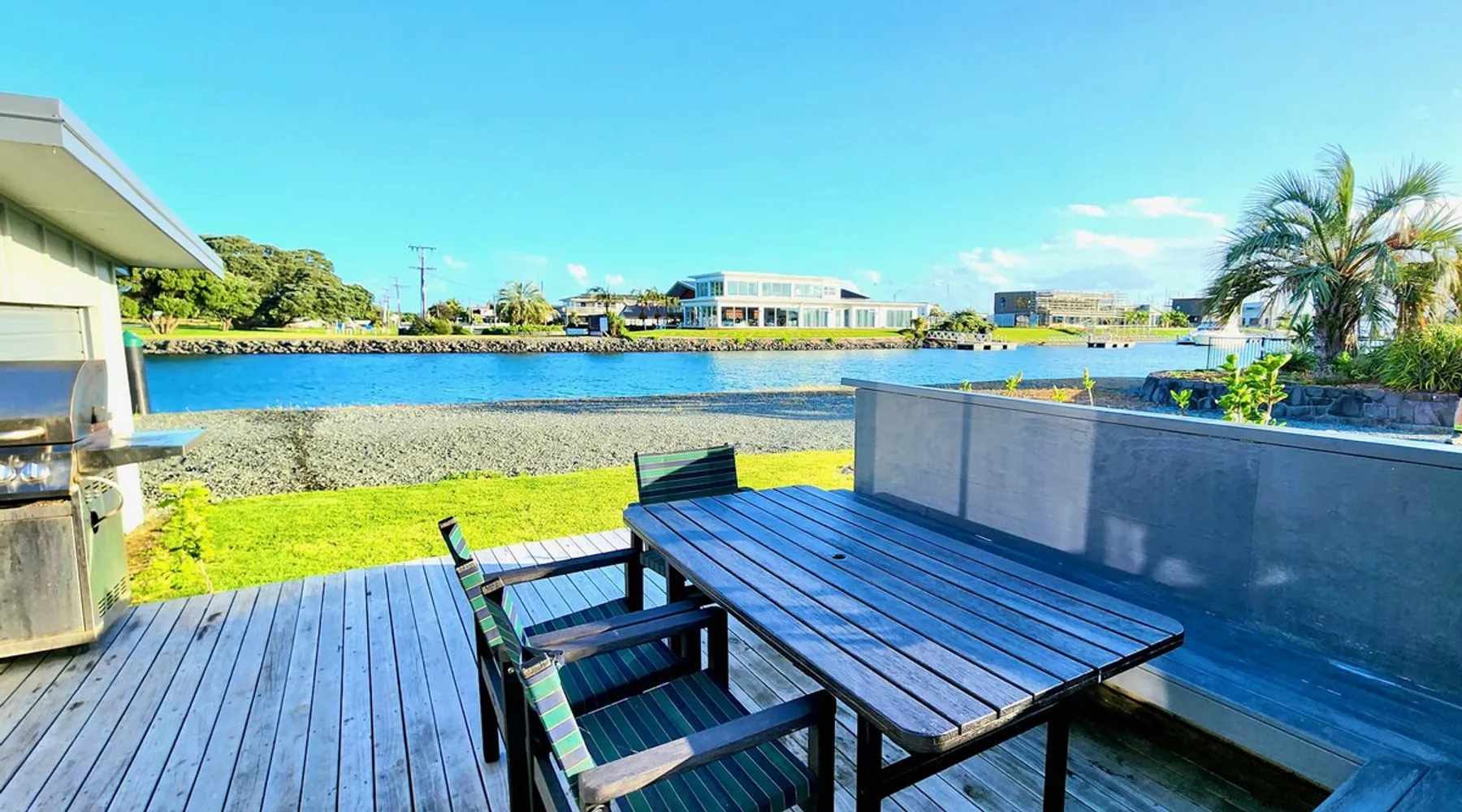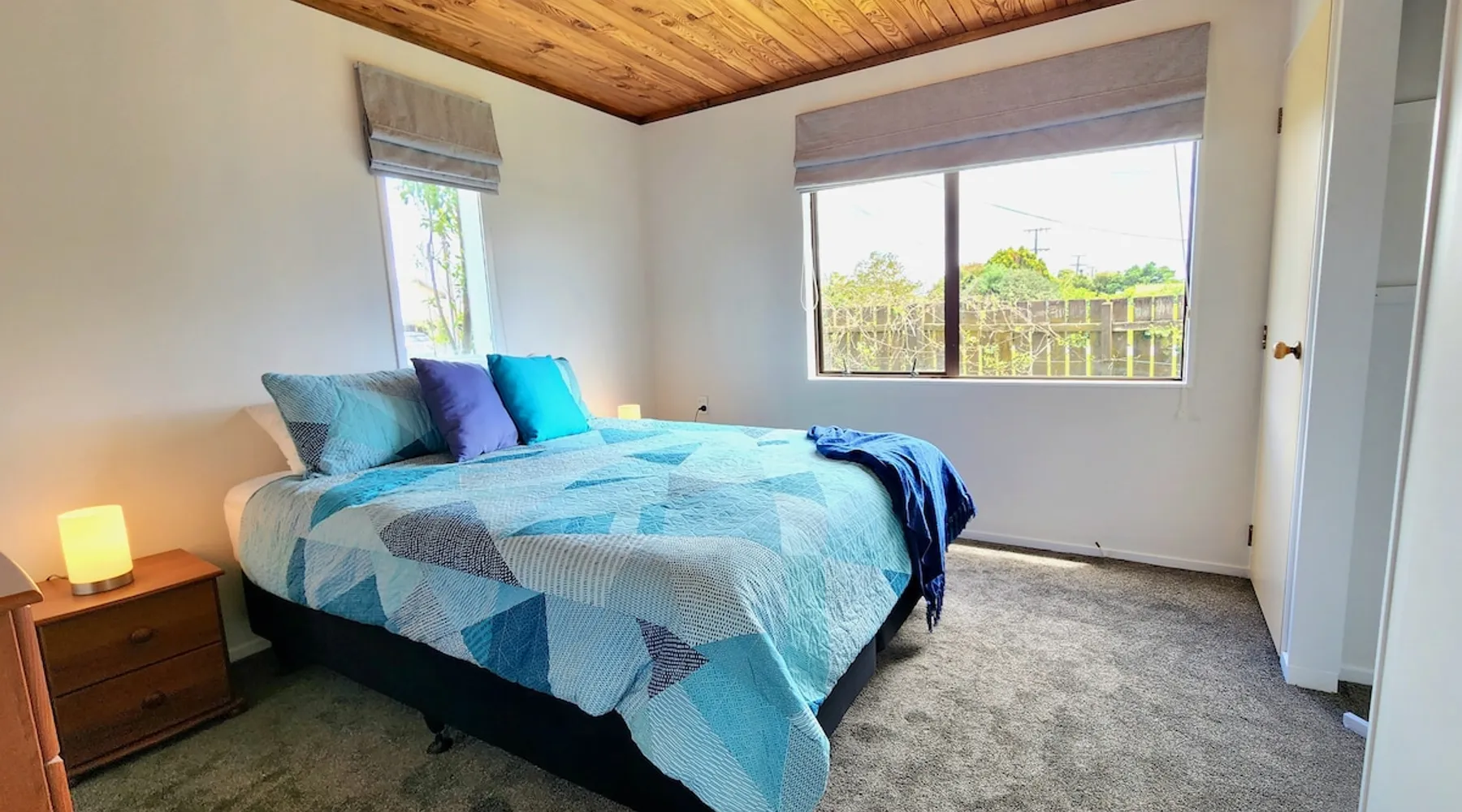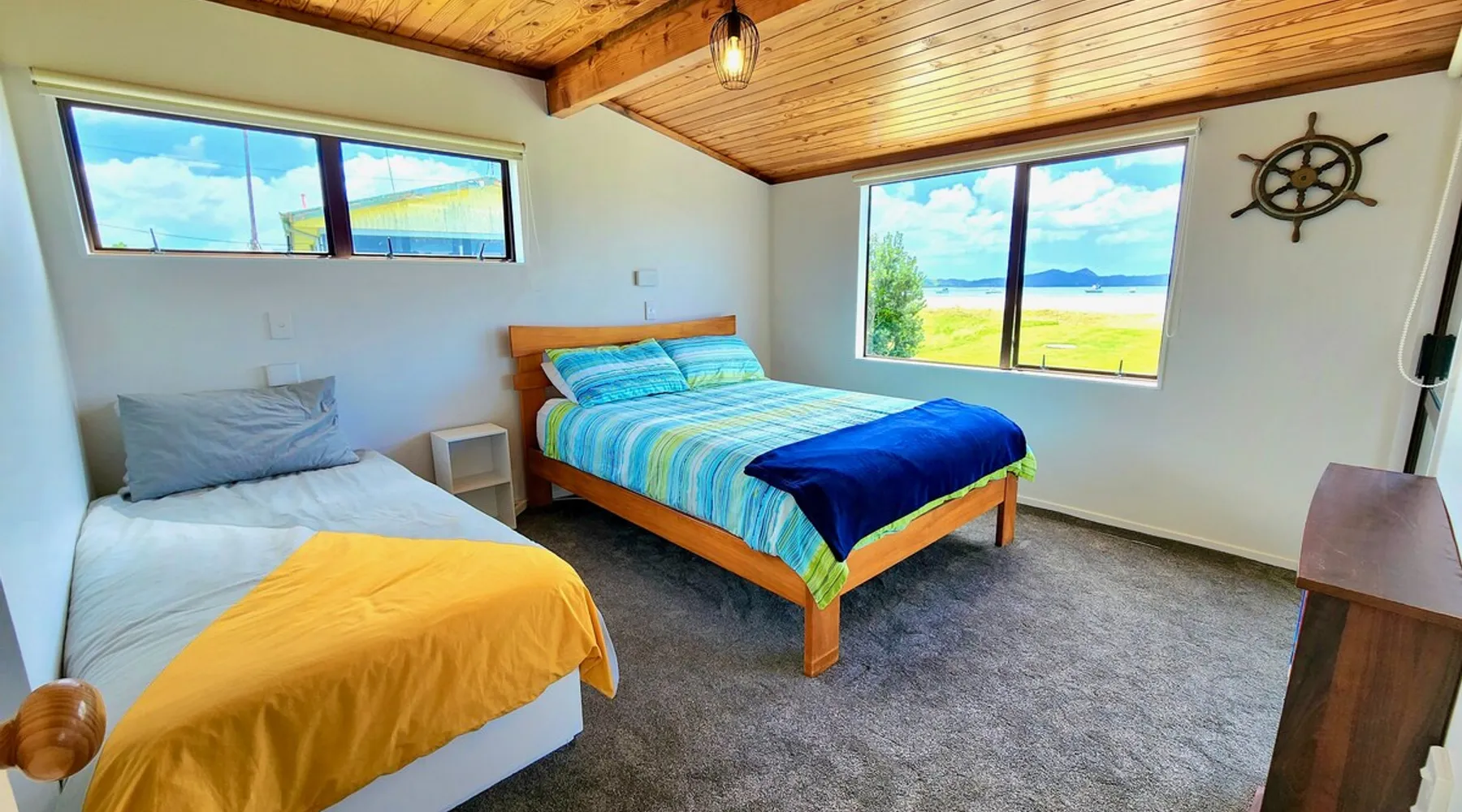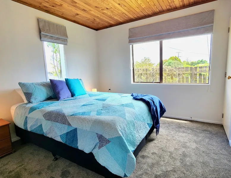 Wake up to the sound of the rolling waves at this two-bedroom bach, offering a beachfront location that sleeps up to six guests, and packed with all the holiday must-haves. Welcome to The Sunrise Bach! The space Wake up to the sound of the rolling waves at this two-bedroom bach, offering a beachfront location that sleeps up to six guests, and packed with all the holiday must-haves. Welcome to The Sunrise Bach! Sip on your hot drink out on the spacious deck as the sun fills the sky, and take in the fresh morning air with mountain landscapes and blue ocean as your backdrop. You'll feel right at home here. You’ll love the pops of colour and retro vibe here at Sunrise Bach, with comfortable furnishings in the living spaces and endless entertainment including books, board games, a Smart TV with built in Chromecast, and a DVD player with a great selection of DVD’s. After your days of soaking up the sun, whip up some sides in the well-equipped kitchen, spark up the BBQ, and enjoy a meal alfresco on the sheltered deck. Enjoy spending your days on the large lawn, perfect for a game of backyard cricket or rugby, or take the available kayak out for a paddle with easy beach access. Two bedrooms and a sofa bed in the family room comfortably sleep up to seven guests here at The Sunrise Bach, making this the ideal base for a small family or couples' getaway. The bathroom offers the convenience of a separate toilet and shower. There is plenty of room to park your boat here, then launch it on the beach just outside with a four-wheel drive vehicle, and set out for the day to find your fresh catch. The Sunrise Bach is located directly adjacent to the canal that leads to Marsden Cove Marina. If you are wanting a change of scene further afield, Ruakākā Beach is 15 minutes away by car for a fun day of sunshine and swims. You’re just a four-minute drive away from the local cafes, restaurants, and supermarket, if you're wanting a bite to eat, or needing to top up on supplies. For a holiday to remember, The Sunrise Bach awaits! Other things to note There is one kayak available, but guests must bring their own life-jackets to access it. Please contact us to request the kayak. Please note a bond may be charged at certain times of the year. One of our team members will contact you if this is required for your booking. Also note that the third room, which is closed and not available for use, is a garage which has the lawnmower, paints, and tools for the bach.