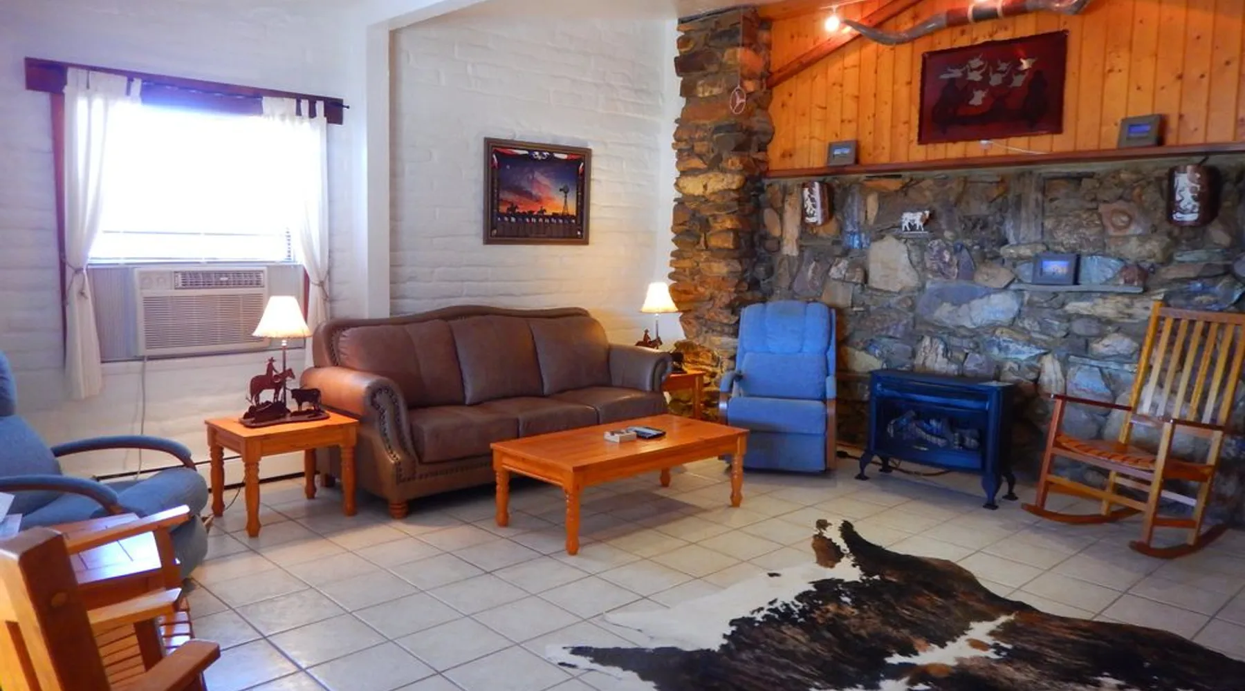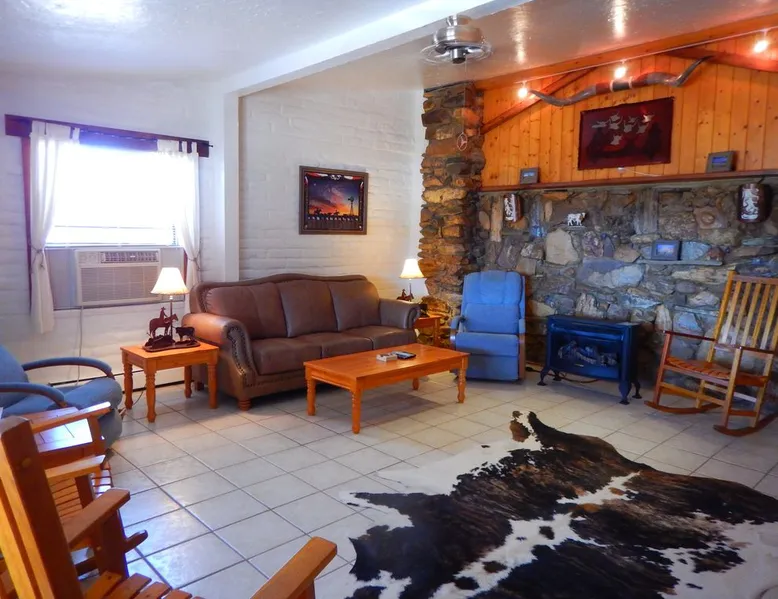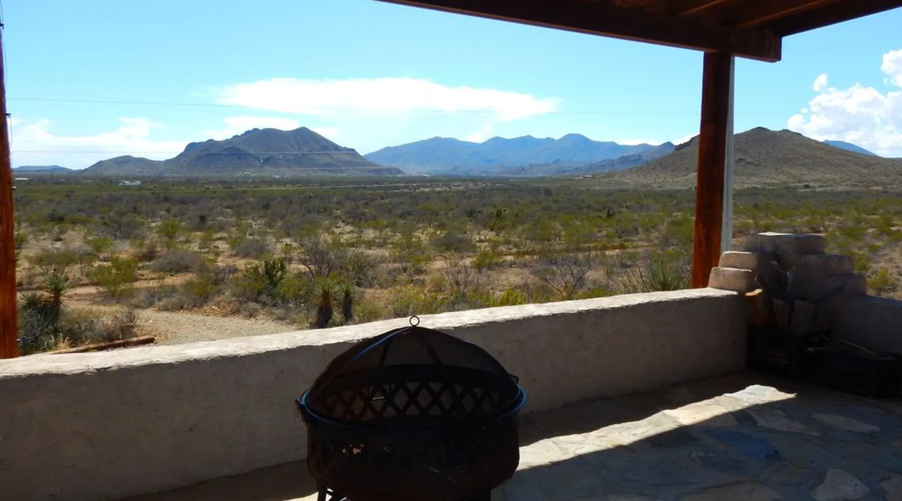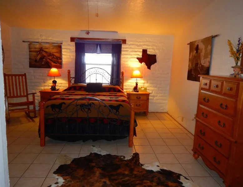 Texas Home Sweet Home: Enjoy Texas Spirit. Everything is Bigger: Big skies, Big views, Big Bend! • Southwestern Adobe Texas Themed Home • Two Bedrooms with King-size Beds • Kitchen, Breakfast Room, Dining Room, Living Room, Two Full Baths • Large Porch with Stunning Mountain Views • Full Size Washer and Dryer • Dogs Welcome. Fenced yard. Maximum 2 dogs. $200 fee. The space Texas Home Sweet Home is a custom built adobe home on 40 acres. The home is decorated in a Texas theme and features all the comforts of home. Relax on the huge covered front rock porch. Enjoy the well-appointed kitchen with lots of storage or relax in the living room. Sit down at the dining table and enjoy eating, talking or playing a game with family and friends. Texas Home Sweet Home was originally built in 1975 and was subsequently gutted (other than the adobe walls) and rebuilt by a builder and his son in 2001. The builder had a love for the natural rocks (including petrified wood) from the Terlingua area and incorporated them into the beautiful rock wall and rock pillars that grace the house, as well as the front stone porch (look for the fossils). The house is decorated with Texas Flair. The house features two large bedrooms, each with a king size bed. The kitchen is well stocked with pots and pans, standard kitchen wares, fridge, dishwasher, gas oven and range, microwave, blender, slow cooker, and more. The dining room has a large table that is great not only for meals, but for playing cards or the many games that the owners have provided. In the living room, you will find a gas fired fireplace (gas logs) and a smart TV for streaming using the basic free option or your subscriptions. The two bathrooms are more than ample with the main bath featuring a tub/shower as well as washer and dryer. Outside is a Texas Sized front rock porch that you will be sure to enjoy. Sit out on the rocking chairs and relax, or set up the picnic table and enjoy a meal outdoors, gather around the firepit and tell stories, or star gaze, or just take in the views of the surrounding mountains. Bring your dogs. Texas Home has a fenced yard with shade and pet friendly interior. Two dogs maximum. A pet fee of $200 will be charged. The word Texas comes from the Caddo Indian word teyshas meaning friend. Fittingly, we are delighted to open this home to new friends. You are welcome to make some wonderful memories here!