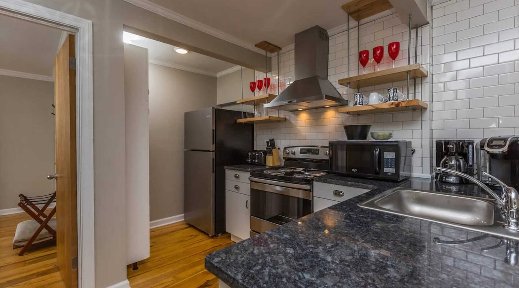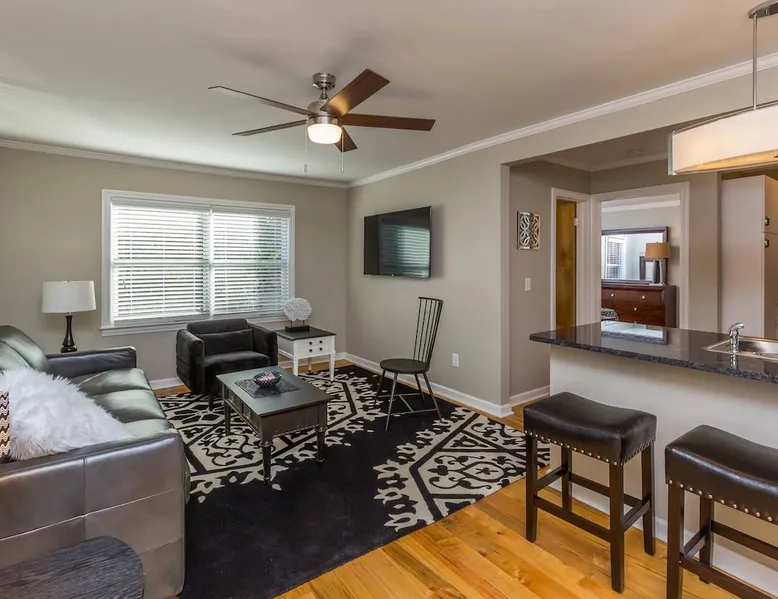 Come stay in this newly renovated, beautiful apartment located just 1,500 feet from Baptist Hospital and 1 mile from downtown. Seasoned hosts will ensure that every amenity you need and desire is provided. This sparkling, clean apartment allows for the chance to get away while still providing the comforts of home. A first floor apartment, it has a large, open kitchen with brand new appliances and all the utensils, pots/pans, small appliances - and even spices- you need to make any meal! The space You will appreciate tasteful touches throughout the home that make this an extra special getaway- including hardwood floors and granite countertops. This home also has its own laundry room and bathroom, as well as a sofa bed that fits two comfortably. Everything you might need to feel comfortable are at your disposal, including fresh towels and sheets, cozy blankets, a sound machine, laundry detergent, and K-Cups. There are many amenities for your comfort and enjoyment, including a big screen Smart TV with cable and queen-size bed in the bedroom. Ample storage will allow you to unpack your suitcase and stay for as long as you desire! For your convenience, a parking lot is located in the rear of the building. The pictures accurately represent the space, although furniture may change. To maintain the quality of this home and keep a hypoallergenic environment, there are no pets allowed. Smoking and drugs are not permitted, and we ask that all guests respect neighbors by following a 10pm quiet time policy. Because the entire facility is owned and managed by a seasoned Superhost, you can be assured of a quality experience. Guest access Guests have access to the entire apartment.