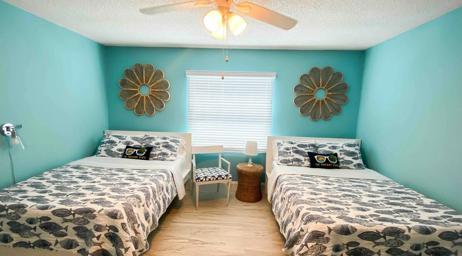 Relaxing 2/1.5 oceanfront condo with stunning views & direct beach access. The Salty Seahorse is a cozy, oceanfront condo in sunny Satellite Beach, Florida! Enjoy peace & quiet with everything you need for a comfortable, relaxing stay right on the beach! Please note: This a 2 story condo on the second floor of the building. There is no landline phone, no elevator, no mailbox access. The Salty Seahorse is smoke/vape/pet free! The space This two-story, second floor condo has unobstructed, direct oceanfront views. Enjoy your morning coffee on the balcony as you watch the sunrise and catch the locals surfing, or gaze at the stars at night while you relax with your favorite tea. Just steps from the unit you can collect seashells, stroll the beach, spot sea turtles or build sandcastles. The ocean is your backyard! The main floor has a living room with a comfortable sofa and a 55” smart TV, plus a variety of books and family-friendly board games and puzzles for endless entertainment. Watch a movie (or cartoons) on the DVD player from the available collection. There is a half bath on the first floor, just off the entrance. The dining room has seating for six. After a visit to the nearby grocery store, you’ll have everything you need to prepare a meal together in the fully stocked kitchen. Just up the stairs are two spacious bedrooms with lots of storage. The large master bedroom provides a comfortable night’s sleep with a queen size bed and views of the ocean. The second bedroom has two full-size beds. Both rooms have a dresser, a ceiling fan, a closet and a chair. Also upstairs is a full bathroom with a separate shower, sink, and toilet. This condo has a washer and dryer. No need for the laundromat! Guest access Condo is part of 18 total units. It has a large fenced, swimming pool and direct, private beach access. You have an assigned parking spot. Additional unmarked parking spaces are available for guests. Other things to note After you check-in, you will be granted front door and beach/pool access code. Beach/pool access is for residents/guests ONLY. If you need to stay connected, there’s free, high speed WIFI. This unit is fully equipped upon your arrival and will have all the necessary items to get you started (ie: paper towel, toilet paper, hand soap) During your stay, should you need to replace these items, there is a grocery store (Publix) just one mile south.