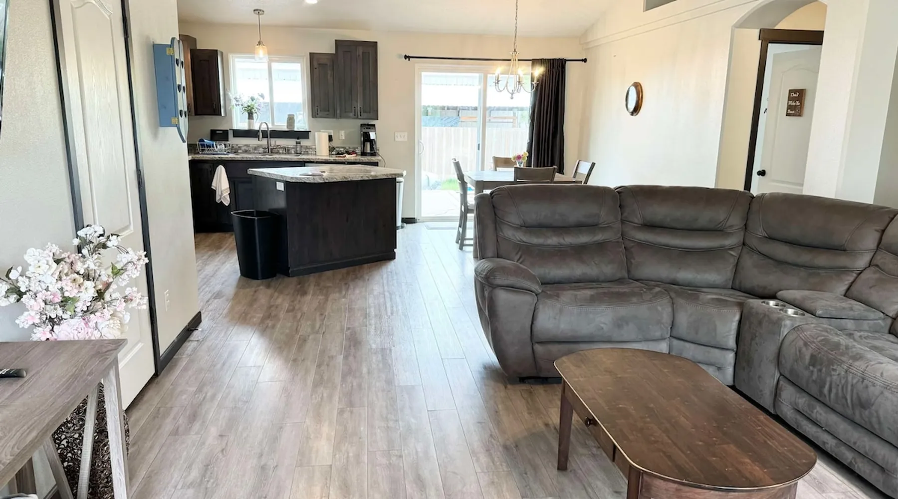 This modern home is a great place to get away in the summer! It's 29 minutes away from Silverwood, 12 minutes from Lake Coeur d'Alene , and 5 minutes away from the Spokane River, and all the fun activities that can be explored. This home is located in a lovely neighborhood with a beautiful view of the mountains. If you need anything, we're only a phone call or text away. NOTE: Kitchen floor is torn up until July 24th. Kitchen is still usable but looks tacky. Price is discounted accordingly. The space - French door refrigerator - Open kitchen - Mounted tv - Fenced in back yard - Lots of counter space - Working dishwasher - Coffee maker/grinder Other things to note Please let us before your arrival know if you’d like us to set up the air mattress.