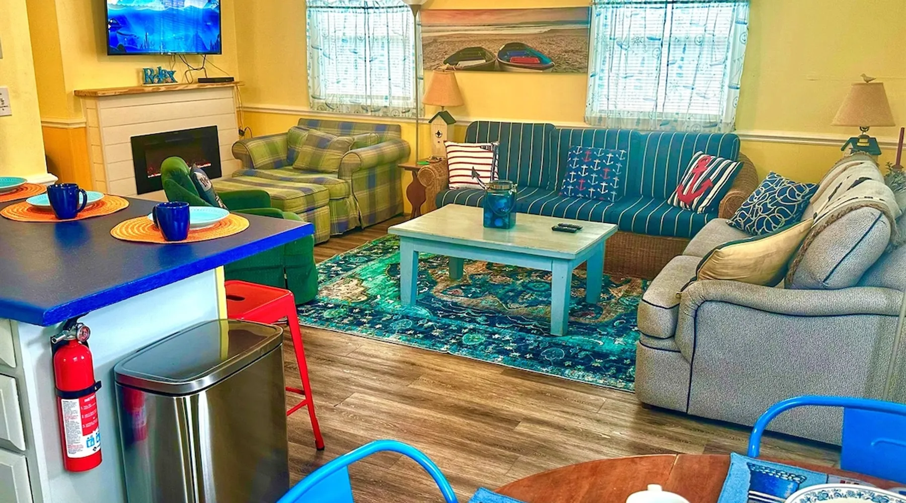 🏖️ 5 Minutes to the Beach – easy drive to beach access & park w/our pass 🔑 Keyless entry for easy check-in 🔥 Fireplace in great room! 👑 Queen memory foam beds 🌳 Two Levels of Decks for relaxing! 📍Convenient Location – MP 6.25 ❤️ of KDH - close to restaurants & shops 🐶 Dog friendly ✨ Perfect for Families, Friends, or Couples Discover the coastal charm of Captain's Cabin OBX, a hidden gem at Milepost 6 in the heart of the Outer Banks. This 2-bedroom, 1-bath beachbox home invites you to ex The space Our cozy beachbox home offers family beach time in a central location with high speed Wi-Fi, a well-stocked kitchen. Bring your small boat or kayak for use at the sound side boat launch, put your toes in the sand at the beach, or simply relax on the decks with a book and your morning tea or coffee (pairs well with some fresh Duck Donuts) or with an evening cocktail. Captain’s Cabin OBX is furnished with queen size memory foam beds, crisp white bed linens; alarm clocks with calendar display, indoor/outdoor temperature readings, and USB charging ports; soft bath towels; a full eat-in kitchen with breakfast bar, and a living area with lots of light and plenty of seating options, including a full sized pullout sofa bed. Whether you want to visit the Wright Brothers Memorial, Jockey’s Ridge, see the wild horses that roam the north end of the island, play some golf (or mini golf), or see the famous lighthouses of the Outer Banks, this home is offers a convenient location for the full range of Outer Banks activities. For the beach lovers and fishermen this offers access to the soundside boat launch off Dock Street as well as permit parking at Avalon Pier for fishing or beach access for enjoying the sun and surf. This home offers the cozy comfort of a traditional beachbox home less than 1 mile to the beach and just a few blocks from Bay Drive for a sunset stroll along the multi use path on Bay Drive, a leisurely bike ride, or an early morning run. Check us out on IG: captainscabinobx Tucked between Bay Drive and the beach at MP 6, Captain’s Cabin OBX is your charming 2-bed, 1-bath beachbox retreat. Thoughtfully designed for comfort and convenience, it features memory foam queen beds, a full eat-in kitchen, two sun-drenched decks, and a shaded lounge area underneath the home. 🚶♀️Walk to the soundside boat launch, catch breathtaking sunsets, and explore nearby eateries, mini golf, and Avalon Pier. 🐶 Dog-friendly, with high-speed Wi-Fi, keyless entry, and free guest access to the Outer Banks YMCA, this cozy hideaway is ideal for couples, small families, or a fishing weekend. Your OBX adventure starts here! Guest access No keys to lose or return! Both entrances to the home provide secure keyless entry to the home with customized access code for each stay! No keys to carry and no need to take your Smartphone each time you walk the dog. The home offers living space, a full kitchen, two bedrooms as well as two decks, an additional seating area under the home, and the back yard with a table and chairs for guest use. Other things to note What you’ll love: • 2 comfy bedrooms + pullout sofa • Walk to the sound + minutes to the beach • Sun-soaked decks + shaded lounge area • Outdoor Shower (hot & cold water) • Dog-friendly (bring your pup!) • Full kitchen + Wi-Fi • FREE Outer Banks YMCA access (hello, hot tub + indoor pool!) • Off-street parking for 2 cars or 1 car + small boat/kayak Your rental includes complimentary use of the Nags Head YMCA for the whole family for your stay (a $95 value) with indoor pool, hot tub, and sauna as well as weightlifting and cardiovascular training equipment, racquetball court, fitness classes and water park access in season (May through early September). Please note that availability of this amenity is subject to NC pandemic restrictions, so you should check with the YMCA or message us about current status, and realize this is subject to change between booking date and stay. We rent weekly in summer with a Friday turn day (check in/check out) from June through September Captain’s Cabin OBX – Your Laid-Back Beach Retreat at MP 6 Tucked between 158 and Bay Drive at Milepost 6, Captain’s Cabin OBX is a cozy 2-bedroom, 1-bathroom beachbox offering the perfect escape for couples, small families, or fishing trips. With a relaxed vibe and a central location, it’s your ideal home base for exploring the best of the Outer Banks. Why Guests Love Captain’s Cabin OBX 🏖 Prime Location MP 6 between Route 158 & Bay Drive Less than 1 mile to the beach (3/4 mile to Avalon Pier & 5th St. Beach Access) Walk or bike to Bay Drive’s soundfront path for sunsets, jogging, or a relaxing cruise 🌅 Outdoor Living Made Easy Two east-facing decks for coffee at sunrise or wine at sunset Shaded hangout area beneath the home with extra seating Quiet, unfenced backyard with table and chairs for alfresco dining 🚤 Adventure at Your Doorstep Less than 1/2 mile to the soundside boat launch (Dock St.) Beach access and permitted parking at Avalon Pier Bring or rent a kayak or small boat and hit the water! 🛏 Thoughtfully Curated Comforts Two bedrooms with queen-size memory foam beds Crisp white linens, plush towels, beds made for arrival Alarm clocks with USB ports, calendar, and indoor/outdoor temps Ceiling fans with lighting in both bedrooms and the great room 🍳 Fully Stocked Kitchen & Living Space Eat-in kitchen with breakfast bar – great for meals or game night Open great room with natural light, comfortable seating, and a full-size pullout sofa bed High-speed Wi-Fi and smart TV for streaming or working remotely ☀️ Easy Beach & Pier Access Close to Avalon Pier and 5th St. Beach Access for fishing and surf time Convenient parking options (off-street for 2 vehicles or 1 car + small boat) Extras That Make a Difference 🔑 Keyless Entry No keys to lose – each guest receives a custom code Both entrances offer keyless access