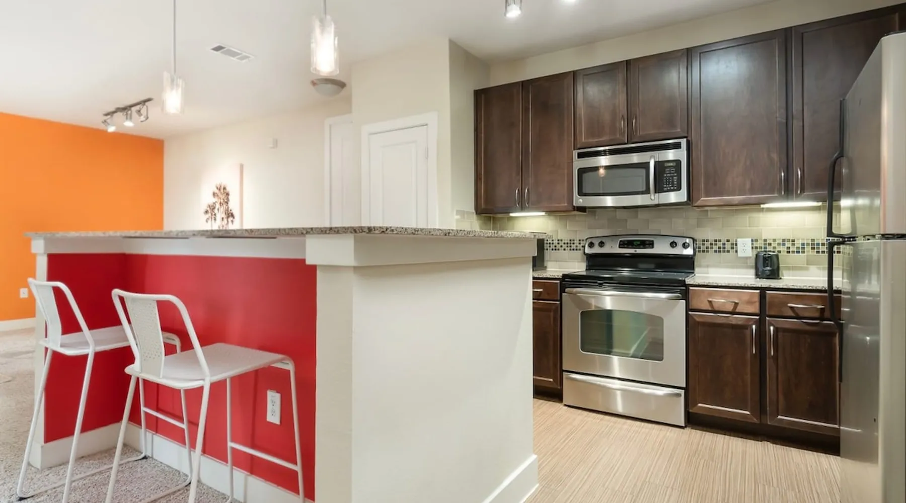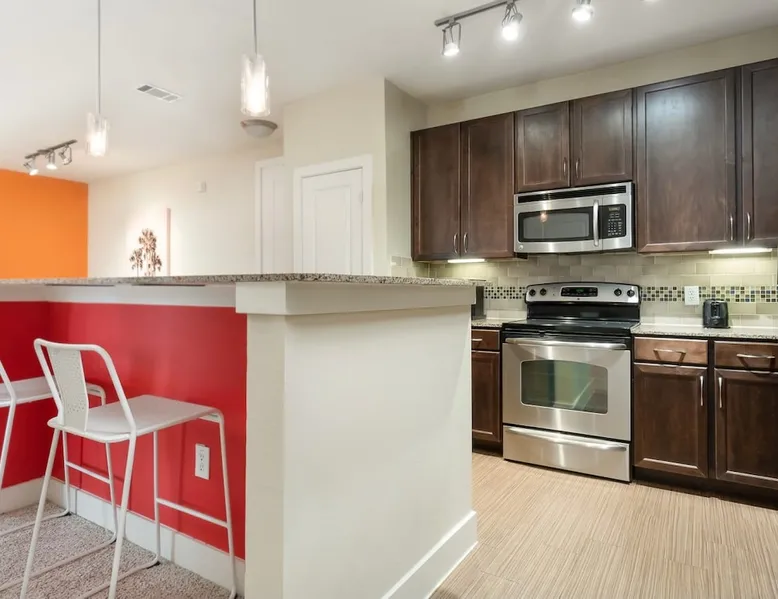One step inside this luxury apartment and you know you've found your world. Here, all is in balance - lush, natural surroundings outside; tech-savvy everything inside. Recharge in lavish gardens and green spaces or play frisbee in the Bark Park or Wii in the lounge or relax by the infinity-edge pool. This large apartment also includes a dedicated study room for working remote. This is a fully serviced apartment that is pet friendly and very close to the Galleria Mall and other popular restaura The space Everything you need is within easy reach. Interior features include built-in USB ports, stainless steel appliances, washers and dryers, keyless entry, spacious closets, quartz counters, and more. Our building has a fireside lounge, bark park and pet grooming station, a parking garage, cyber cafe and game lounge, an unbelievable wellness studio, and a stunning pool plaza. This is a gated complex with free street parking and parking garage. The unit is secured by smart lock entry, welcoming you into a spacious living space. *Carpet and hardwood floors *High ceilings, ceiling fans *WiFi access and Smart TV Bathroom: *Shower with full sized tub *Complimentary toiletries, blow dryer Bedroom: Can be brightly lit from large windows or perfectly darkened for daytime/jet lag naps with room darkening curtains. *Super comfort queen memory foam mattress *Cedar lined closet holds the extra pillows and blankets as well as many hangers for all of your clothes. *Luggage Racks *Plenty of outlets for all your electronic devices Kitchen/Laundry: Fully equipped for anything you might need! *Full sized appliances (dishwasher, electric range/stove, refrigerator, washer and dryer, iron and ironing board) *Microwave, coffee maker (with complimentary coffee), toaster, blender, food processor, pots and pans and basic spices for cooking. Guest access You will have access to the entire apartment and community amenities during your stay. Other things to note Please ensure you are booking with your full legal name. Minimum age requirement of primary person booking should be 21 years old. No weapons or drugs allowed; zero tolerance means police will be called for violating this rule, and the contract will be immediately terminated. Noise policy: Guests must agree to not disturb neighbors at all times during the stay. In addition, guests must agree to observe quiet hours from 10pm-8am each day. The home is proactively monitored with decibel sensors for compliance with this noise policy. Security camera/recording device — exterior of the home/apartment only and records people coming in/out of the listing and safety. By booking you give permission to verify your identity, and check criminal databases in order to confirm your reservation. To abide by all legal requirements and building security rules, you may be asked to provide a copy of your official government-issued photo ID, confirm your contact information, provide a valid credit card with a name that matches your ID, pass through our verification portal and, in some instances, complete a criminal background check (for 28+ day stays). Important note: The information is collected for screening and verification only and is not stored or used for any other purposes. Please be advised that all guests will be asked to sign a rental usage agreement that governs the terms of the stay. By completing the reservation you agree to the following: You agree to be bound by our rental terms and conditions. You acknowledge that you will be required to provide a copy of a valid government-issued ID and matching credit card prior to check-in. You acknowledge that you may be required to undergo a background check if mandated by the property management company or the building, as stated in accordance with your rental agreement and the condition of the booking. You understand that your check-in instructions might be withheld until you have successfully completed our verification portal. Refund & Processing Fee Policy: We understand that plans can change, and we do our best to make the refund process as smooth as possible. Please note that all payments processed through the VRBO platform are subject to a standard 3% payment processing fee charged by Stripe. Because this fee is applied to both incoming and refunded transactions, it is non-refundable. This means that in the event of a cancellation or refund (even when the cancellation falls within the eligible refund window), the refunded amount will be the total paid minus the 3% processing fee. We appreciate your understanding, as this helps us keep our business sustainable while continuing to provide high-quality stays for all our guests.