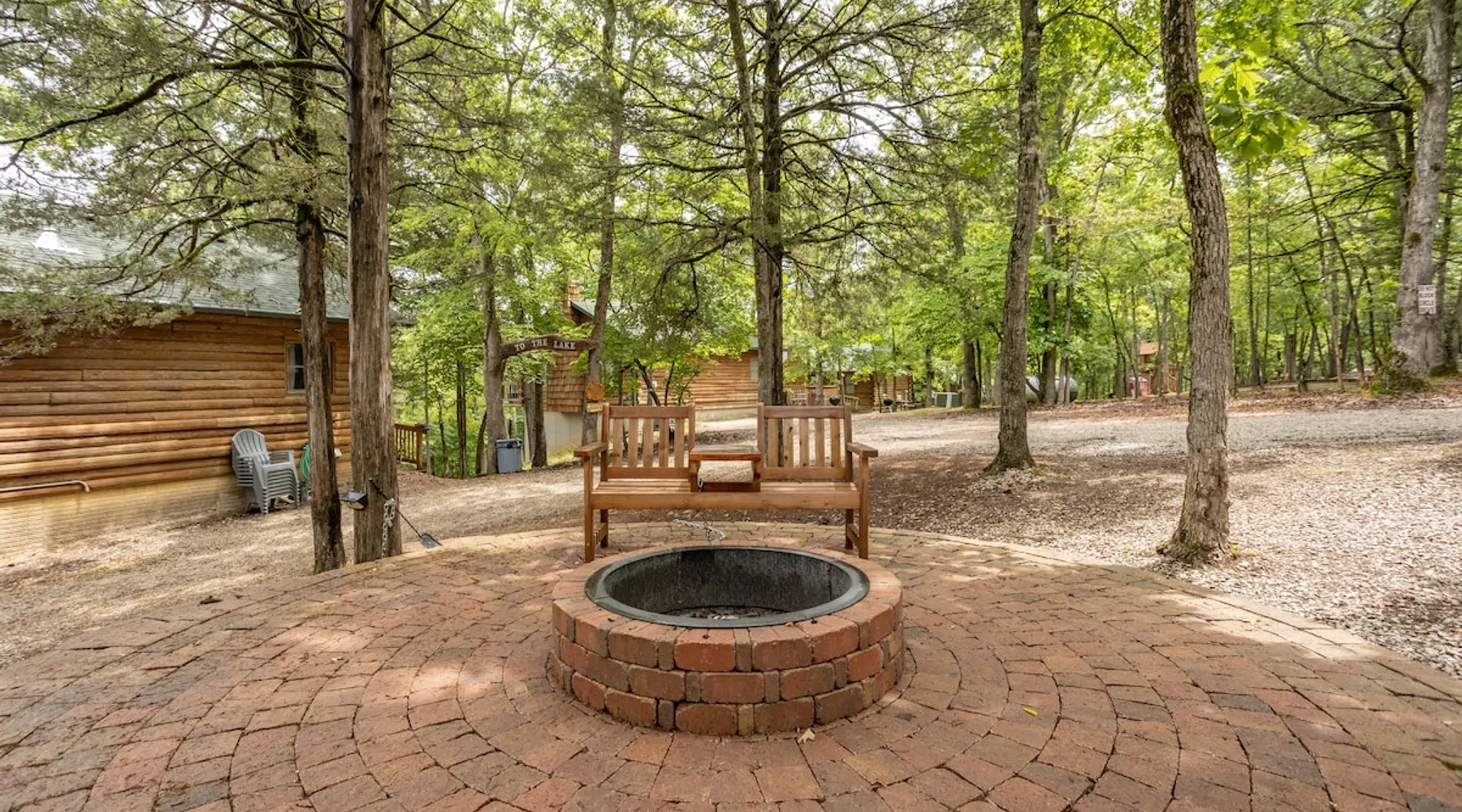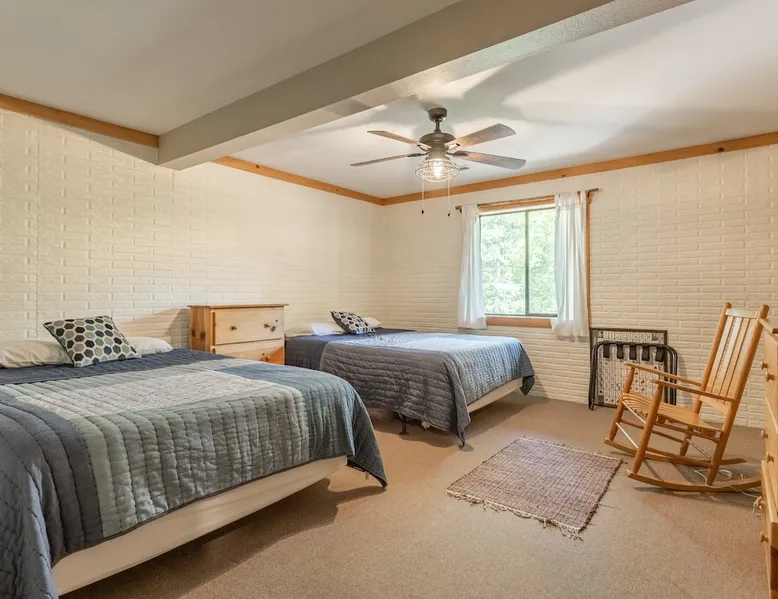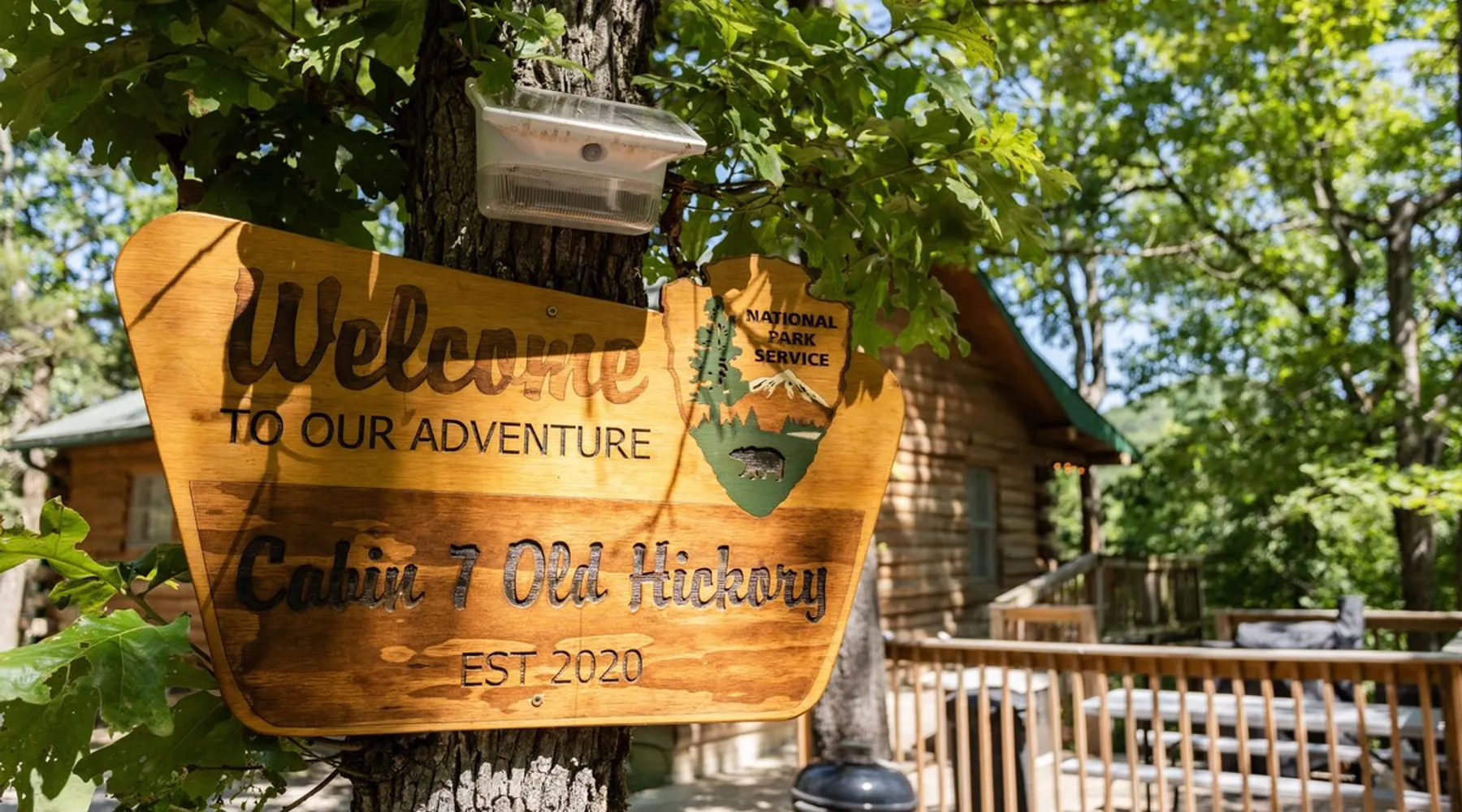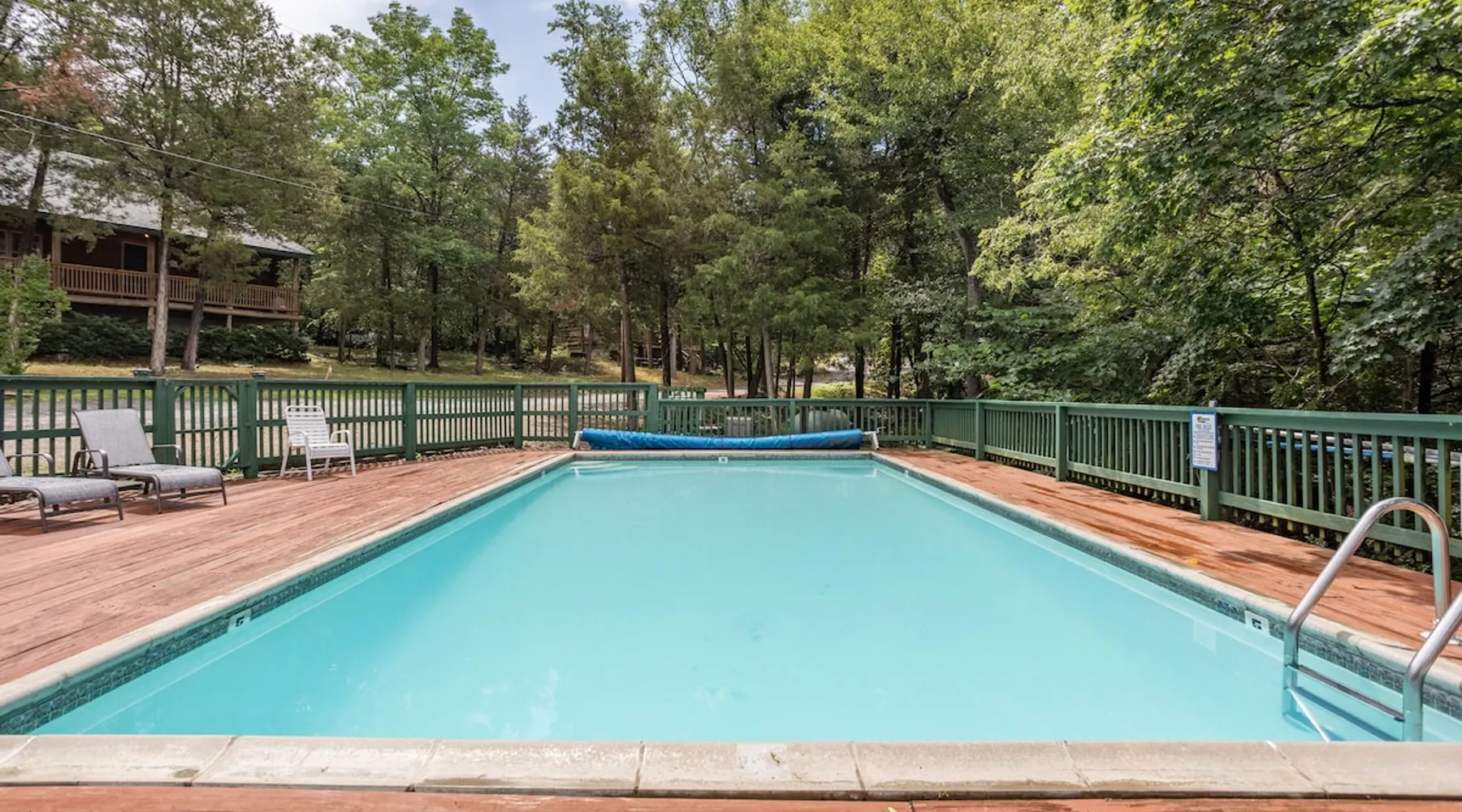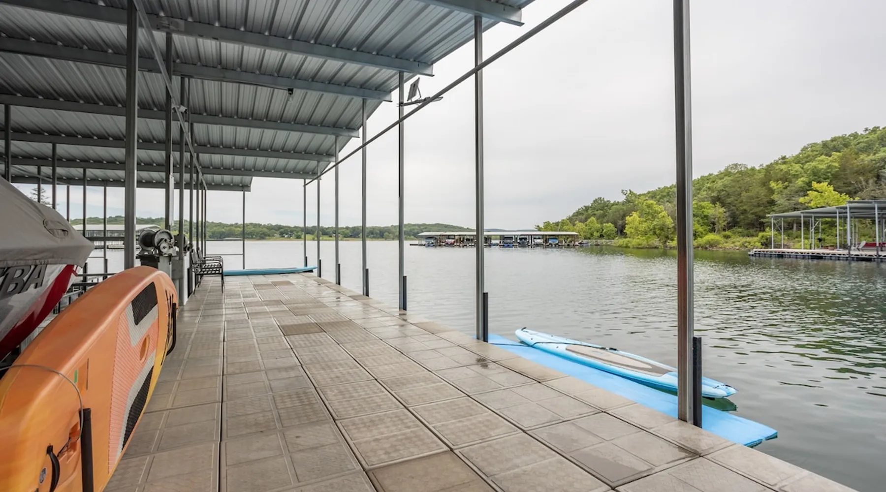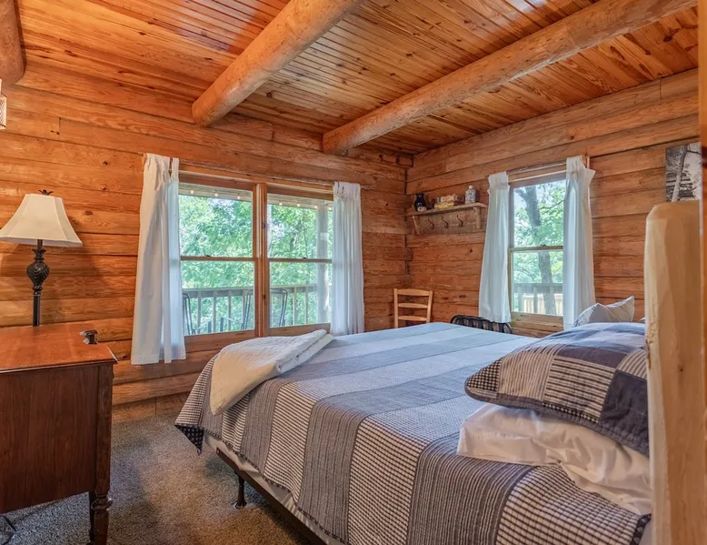 Old Hickory #7 is a great cabin for a large family or group. This cabin has an open concept kitchen, dining and living space with a wood burning fireplace and ceiling fan. On the main floor is a king bedroom, a queen bedroom and a hall bathroom. In the basement are 2 bedrooms with 2 queen beds in each and a hall bathroom. The cabin is situated close to the playground, so the little ones can have fun and adults can sit near by and watch. The space - THE PROPERTY - 1320 Sq Ft | Community Outdoor Pool | Table Rock Lake Access | Walking Trails Get away from it all on the shores of Table Rock Lake and enjoy family and friends while swimming, boating, hiking, fishing and exploring all the amazing attractions. BEDROOMS: #1: 1 King | #2: 1 Queen | Basement #1: 2 Queens| Basement #2: 2 Queens INDOOR LIVING: Open Concept Kitchen, Dining and Living space with wood burning fireplace and ceiling fan. KITCHEN: Fully Equipped with Microwave, Electric Range/Oven, drip coffee maker with coffee and filters, toaster, blender, dishwasher, dishware/flatware, complementary spices OUTDOOR LIVING: Covered Porch, charcoal grill, outdoor dining and lounging, fire pit, porch swing COMMUNITY AMENITIES: Pool, Laundry, lake access, play area. The Hot Tub and pool are winterized for the winter months. They are open Memorial Day weekend to Labor Day weekend. The laundry facilities are winterized November through March. GENERAL: Free wifi located at the communal pool and rec area, linens/bath towels, keyless entry, air conditioning, complementary toiletries. Max Guests 12 PARKING: 2-3 car parking next to cabin - THE LOCATION – TABLE ROCK LAKE (on site access): swimming, fishing, Boating with ramp access via Campbell point Marina (3.2 miles) or Table Rock Lake Ramp (3.9 miles), MarineCorp US (5.7 miles) Guest access Seasonal Laundry March-November, there is a laundromat nearby. Other things to note This Cabin has Fully equipped kitchen and dining are. Cozy living room on the main level. Two bedrooms one king master suite with private bathroom. One queen with shared common bath. The lower level has two bedrooms each having queen beds in each. You'll enjoy a lovely wooded setting from the front porch area , and a shared playground for the kids in the back of the cabin. Just down the lane is a lakeside pool with a lovely view of the lake.