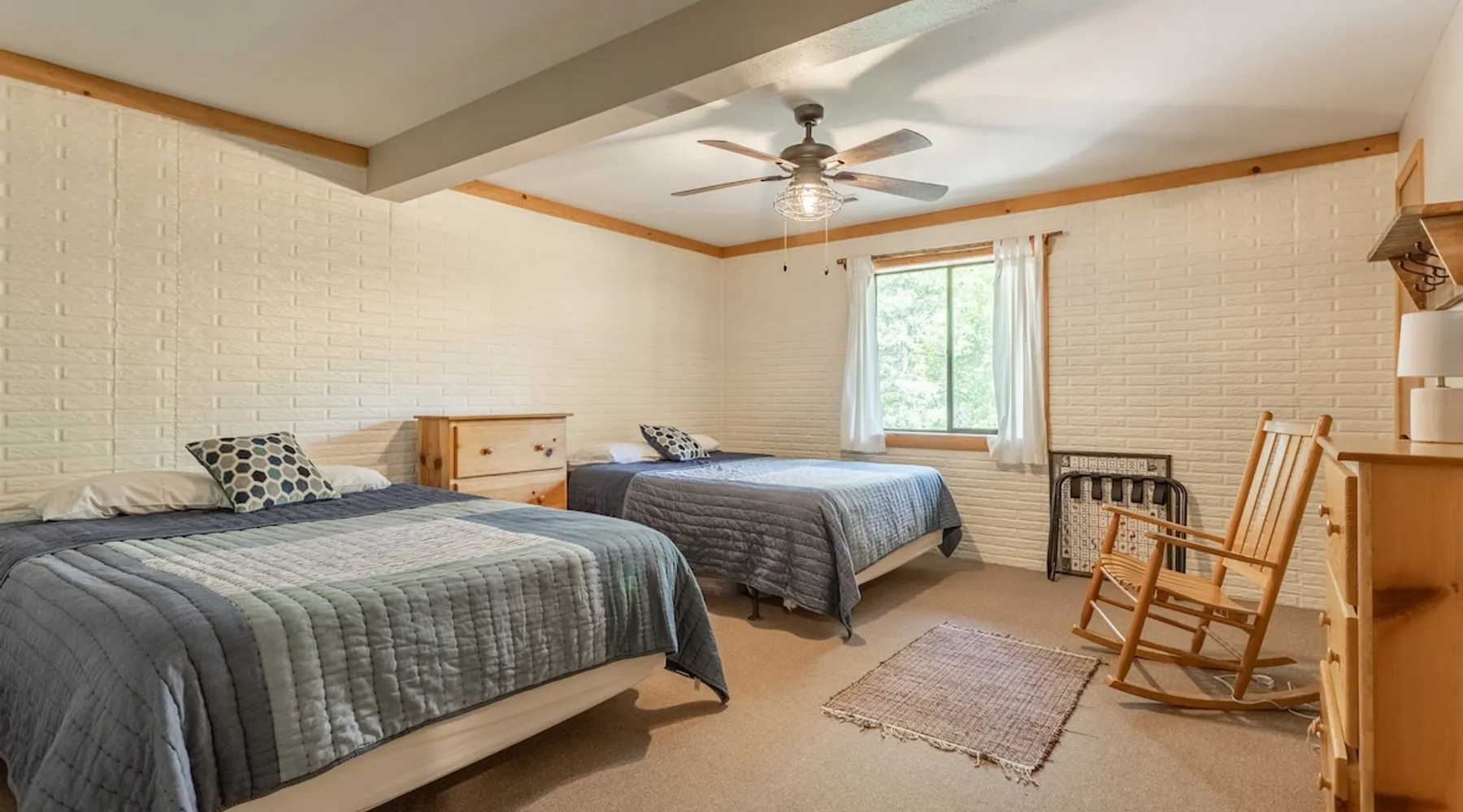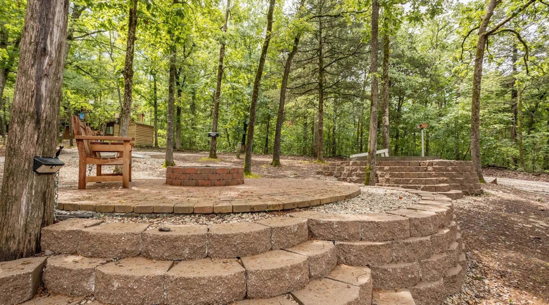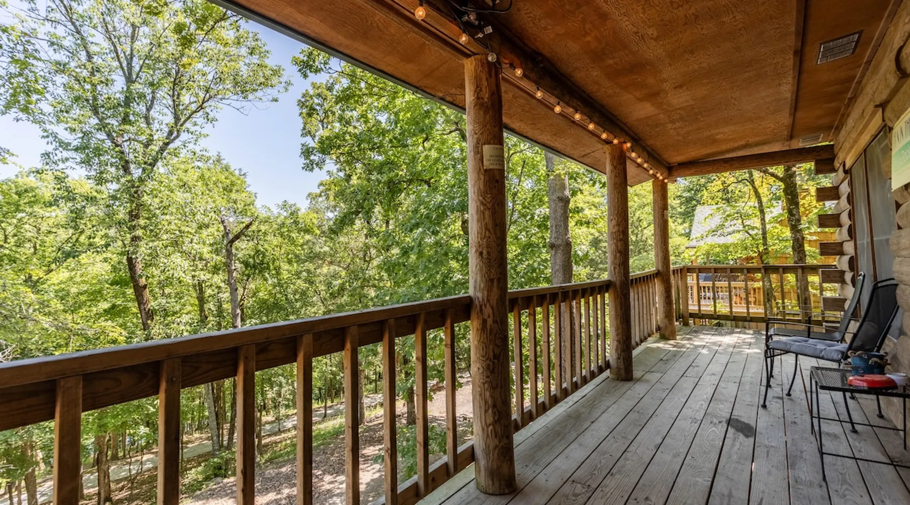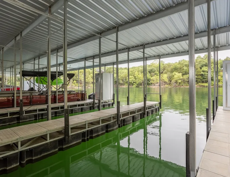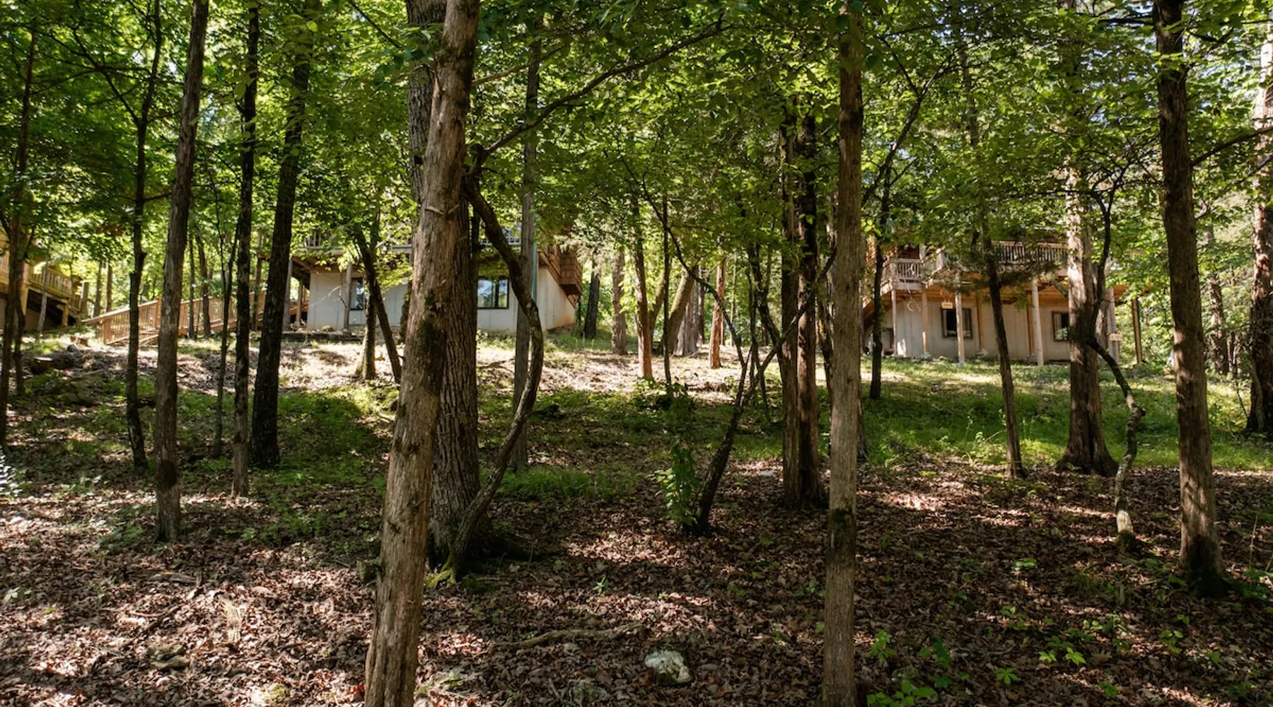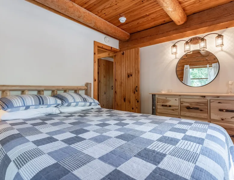 Old Hickory #7 is a great cabin for a large family or group. This cabin has an open concept kitchen, dining and living space with a wood burning fireplace and ceiling fan. On the main floor is a king bedroom, a queen bedroom and a hall bathroom. In the basement are 2 bedrooms with 2 queen beds in each and a hall bathroom. The cabin is situated close to the playground, so the little ones can have fun and adults can sit near by and watch. The space - THE PROPERTY - 1320 Sq Ft | Community Outdoor Pool | Table Rock Lake Access | Walking Trails Get away from it all on the shores of Table Rock Lake and enjoy family and friends while swimming, boating, hiking, fishing and exploring all the amazing attractions. BEDROOMS: #1: 1 King | #2: 1 Queen | Basement #1: 2 Queens| Basement #2: 2 Queens INDOOR LIVING: Open Concept Kitchen, Dining and Living space with wood burning fireplace and ceiling fan. KITCHEN: Fully Equipped with Microwave, Electric Range/Oven, drip coffee maker with coffee and filters, toaster, blender, dishwasher, dishware/flatware, complementary spices OUTDOOR LIVING: Covered Porch, charcoal grill, outdoor dining and lounging, fire pit, porch swing COMMUNITY AMENITIES: Pool, Laundry, lake access, play area. The Hot Tub and pool are winterized for the winter months. They are open Memorial Day weekend to Labor Day weekend. The laundry facilities are winterized November through March. GENERAL: Free wifi located at the communal pool and rec area, linens/bath towels, keyless entry, air conditioning, complementary toiletries. Max Guests 12 PARKING: 2-3 car parking next to cabin - THE LOCATION – TABLE ROCK LAKE (on site access): swimming, fishing, Boating with ramp access via Campbell point Marina (3.2 miles) or Table Rock Lake Ramp (3.9 miles), MarineCorp US (5.7 miles) Guest access Seasonal Laundry March-November, there is a laundromat nearby. Other things to note This Cabin has Fully equipped kitchen and dining are. Cozy living room on the main level. Two bedrooms one king master suite with private bathroom. One queen with shared common bath. The lower level has two bedrooms each having queen beds in each. You'll enjoy a lovely wooded setting from the front porch area , and a shared playground for the kids in the back of the cabin. Just down the lane is a lakeside pool with a lovely view of the lake.