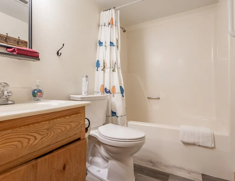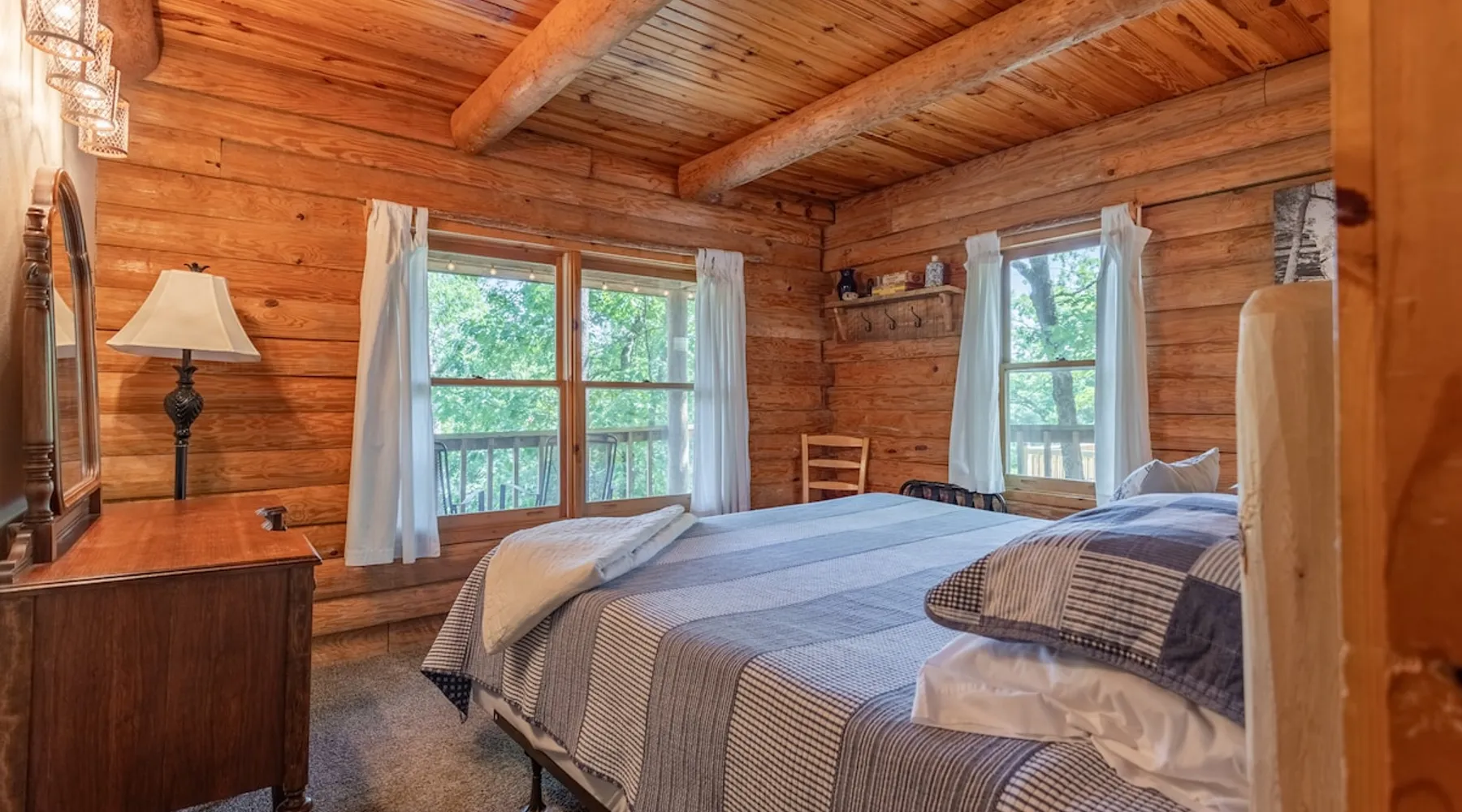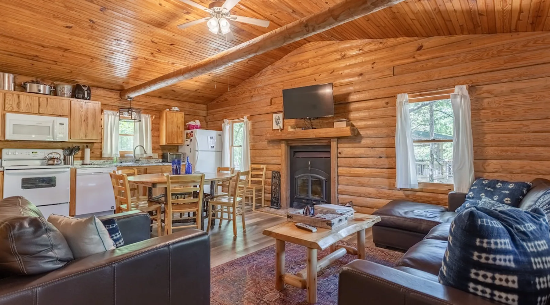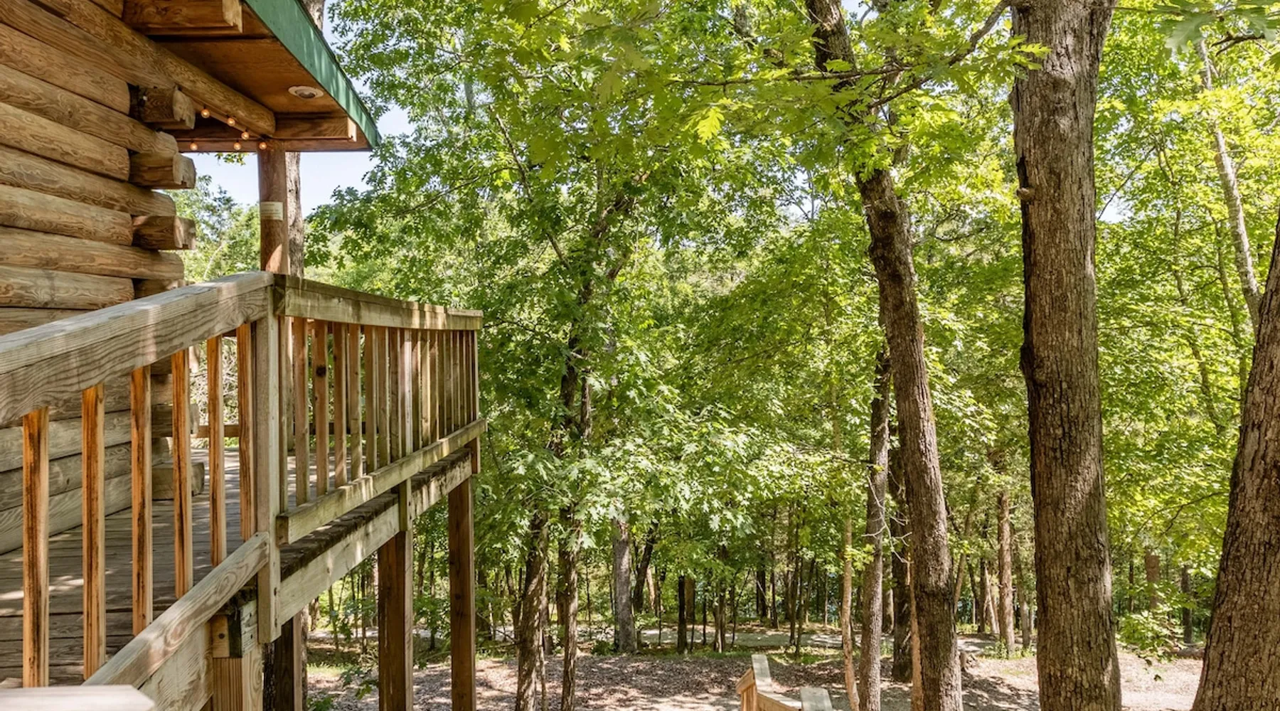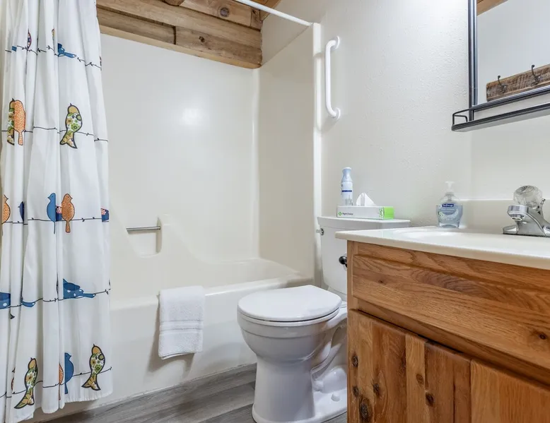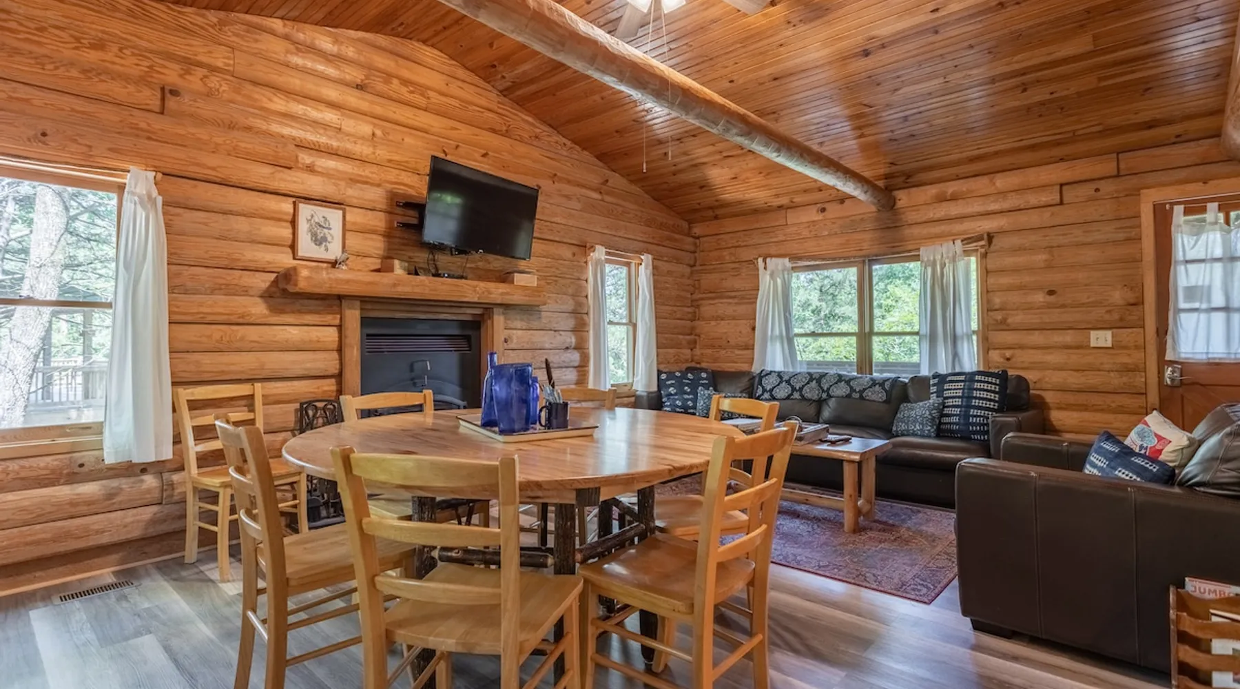 Old Hickory #7 is a great cabin for a large family or group. This cabin has an open concept kitchen, dining and living space with a wood burning fireplace and ceiling fan. On the main floor is a king bedroom, a queen bedroom and a hall bathroom. In the basement are 2 bedrooms with 2 queen beds in each and a hall bathroom. The cabin is situated close to the playground, so the little ones can have fun and adults can sit near by and watch. The space - THE PROPERTY - 1320 Sq Ft | Community Outdoor Pool | Table Rock Lake Access | Walking Trails Get away from it all on the shores of Table Rock Lake and enjoy family and friends while swimming, boating, hiking, fishing and exploring all the amazing attractions. BEDROOMS: #1: 1 King | #2: 1 Queen | Basement #1: 2 Queens| Basement #2: 2 Queens INDOOR LIVING: Open Concept Kitchen, Dining and Living space with wood burning fireplace and ceiling fan. KITCHEN: Fully Equipped with Microwave, Electric Range/Oven, drip coffee maker with coffee and filters, toaster, blender, dishwasher, dishware/flatware, complementary spices OUTDOOR LIVING: Covered Porch, charcoal grill, outdoor dining and lounging, fire pit, porch swing COMMUNITY AMENITIES: Pool, Laundry, lake access, play area. The Hot Tub and pool are winterized for the winter months. They are open Memorial Day weekend to Labor Day weekend. The laundry facilities are winterized November through March. GENERAL: Free wifi located at the communal pool and rec area, linens/bath towels, keyless entry, air conditioning, complementary toiletries. Max Guests 12 PARKING: 2-3 car parking next to cabin - THE LOCATION – TABLE ROCK LAKE (on site access): swimming, fishing, Boating with ramp access via Campbell point Marina (3.2 miles) or Table Rock Lake Ramp (3.9 miles), MarineCorp US (5.7 miles) Guest access Seasonal Laundry March-November, there is a laundromat nearby. Other things to note This Cabin has Fully equipped kitchen and dining are. Cozy living room on the main level. Two bedrooms one king master suite with private bathroom. One queen with shared common bath. The lower level has two bedrooms each having queen beds in each. You'll enjoy a lovely wooded setting from the front porch area , and a shared playground for the kids in the back of the cabin. Just down the lane is a lakeside pool with a lovely view of the lake.