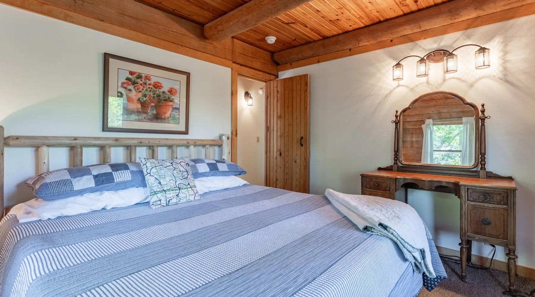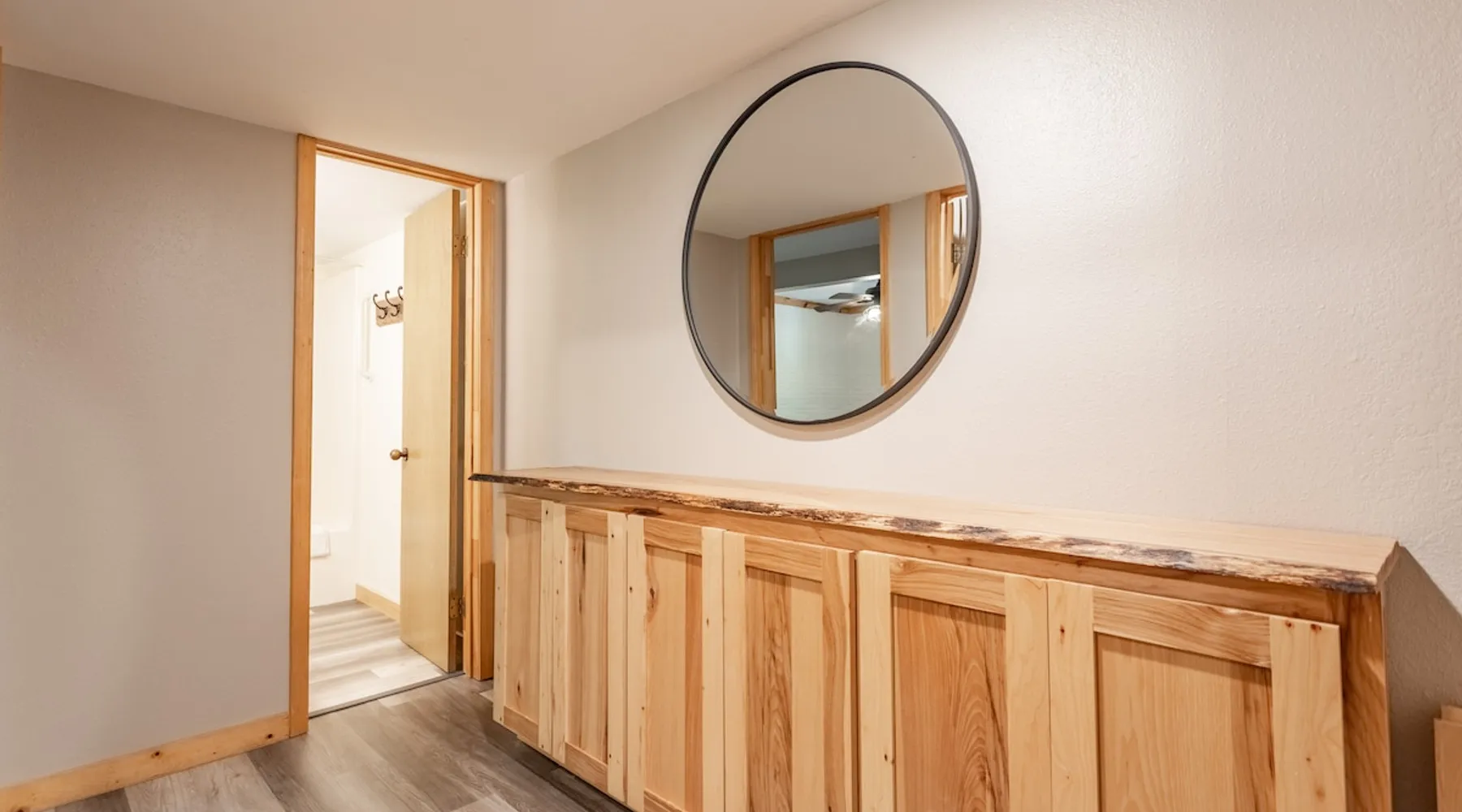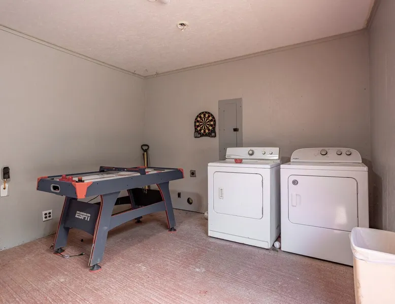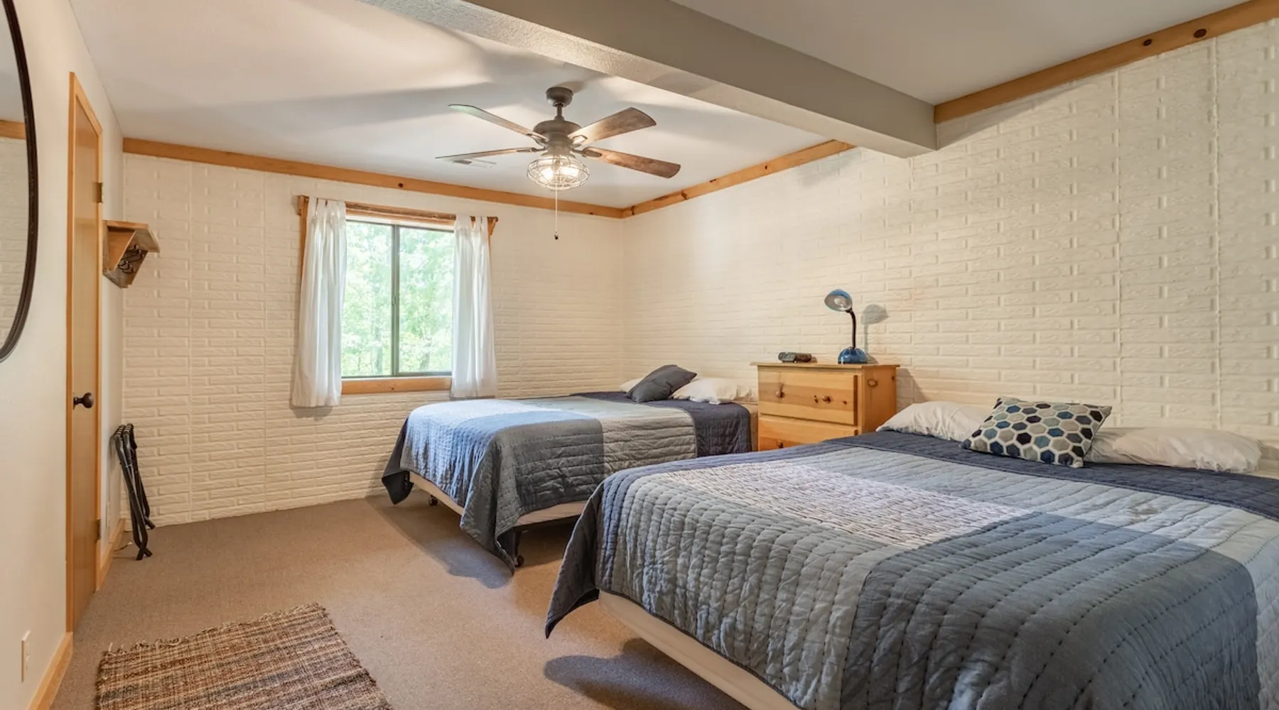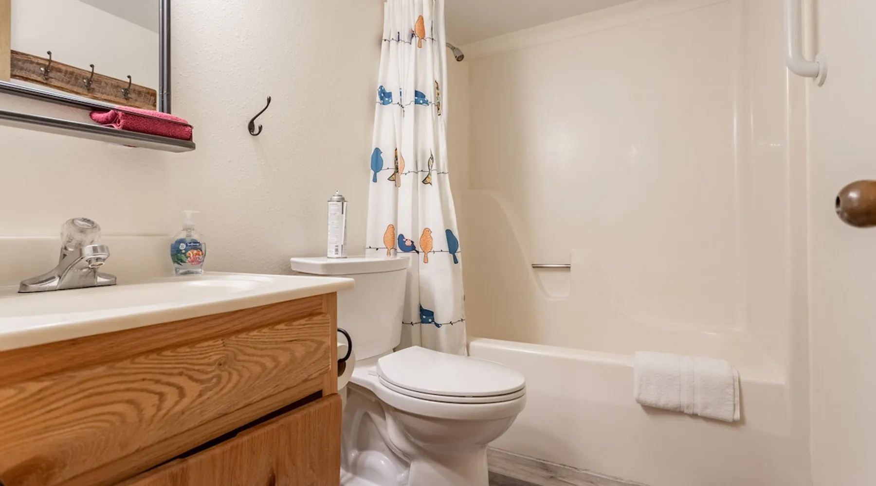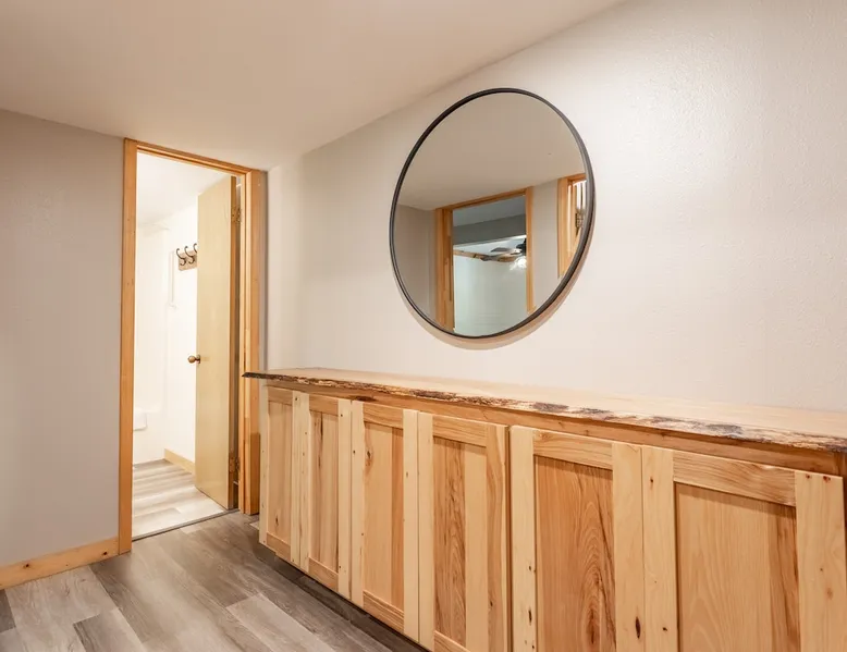 Old Hickory #7 is a great cabin for a large family or group. This cabin has an open concept kitchen, dining and living space with a wood burning fireplace and ceiling fan. On the main floor is a king bedroom, a queen bedroom and a hall bathroom. In the basement are 2 bedrooms with 2 queen beds in each and a hall bathroom. The cabin is situated close to the playground, so the little ones can have fun and adults can sit near by and watch. The space - THE PROPERTY - 1320 Sq Ft | Community Outdoor Pool | Table Rock Lake Access | Walking Trails Get away from it all on the shores of Table Rock Lake and enjoy family and friends while swimming, boating, hiking, fishing and exploring all the amazing attractions. BEDROOMS: #1: 1 King | #2: 1 Queen | Basement #1: 2 Queens| Basement #2: 2 Queens INDOOR LIVING: Open Concept Kitchen, Dining and Living space with wood burning fireplace and ceiling fan. KITCHEN: Fully Equipped with Microwave, Electric Range/Oven, drip coffee maker with coffee and filters, toaster, blender, dishwasher, dishware/flatware, complementary spices OUTDOOR LIVING: Covered Porch, charcoal grill, outdoor dining and lounging, fire pit, porch swing COMMUNITY AMENITIES: Pool, Laundry, lake access, play area. The Hot Tub and pool are winterized for the winter months. They are open Memorial Day weekend to Labor Day weekend. The laundry facilities are winterized November through March. GENERAL: Free wifi located at the communal pool and rec area, linens/bath towels, keyless entry, air conditioning, complementary toiletries. Max Guests 12 PARKING: 2-3 car parking next to cabin - THE LOCATION – TABLE ROCK LAKE (on site access): swimming, fishing, Boating with ramp access via Campbell point Marina (3.2 miles) or Table Rock Lake Ramp (3.9 miles), MarineCorp US (5.7 miles) Guest access Seasonal Laundry March-November, there is a laundromat nearby. Other things to note This Cabin has Fully equipped kitchen and dining are. Cozy living room on the main level. Two bedrooms one king master suite with private bathroom. One queen with shared common bath. The lower level has two bedrooms each having queen beds in each. You'll enjoy a lovely wooded setting from the front porch area , and a shared playground for the kids in the back of the cabin. Just down the lane is a lakeside pool with a lovely view of the lake.