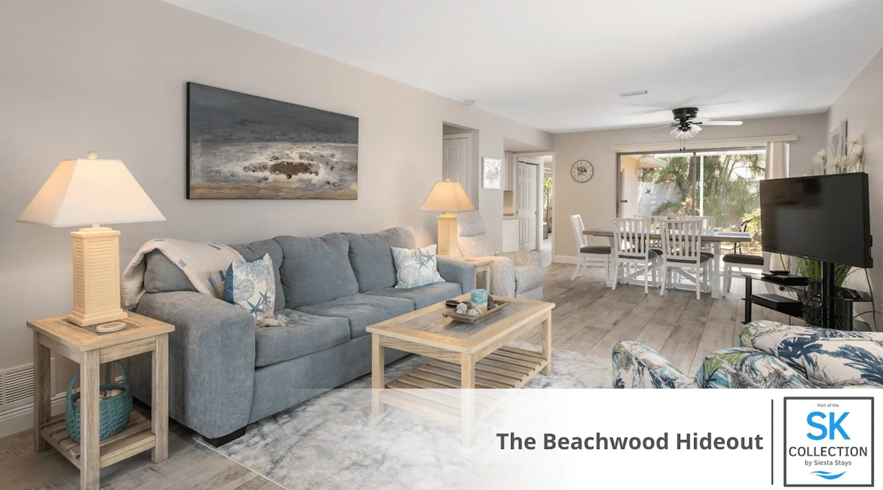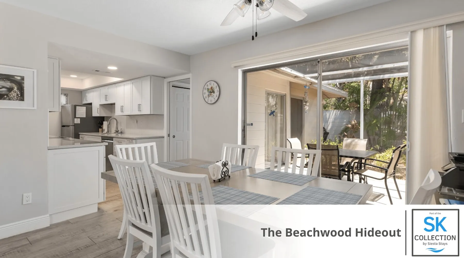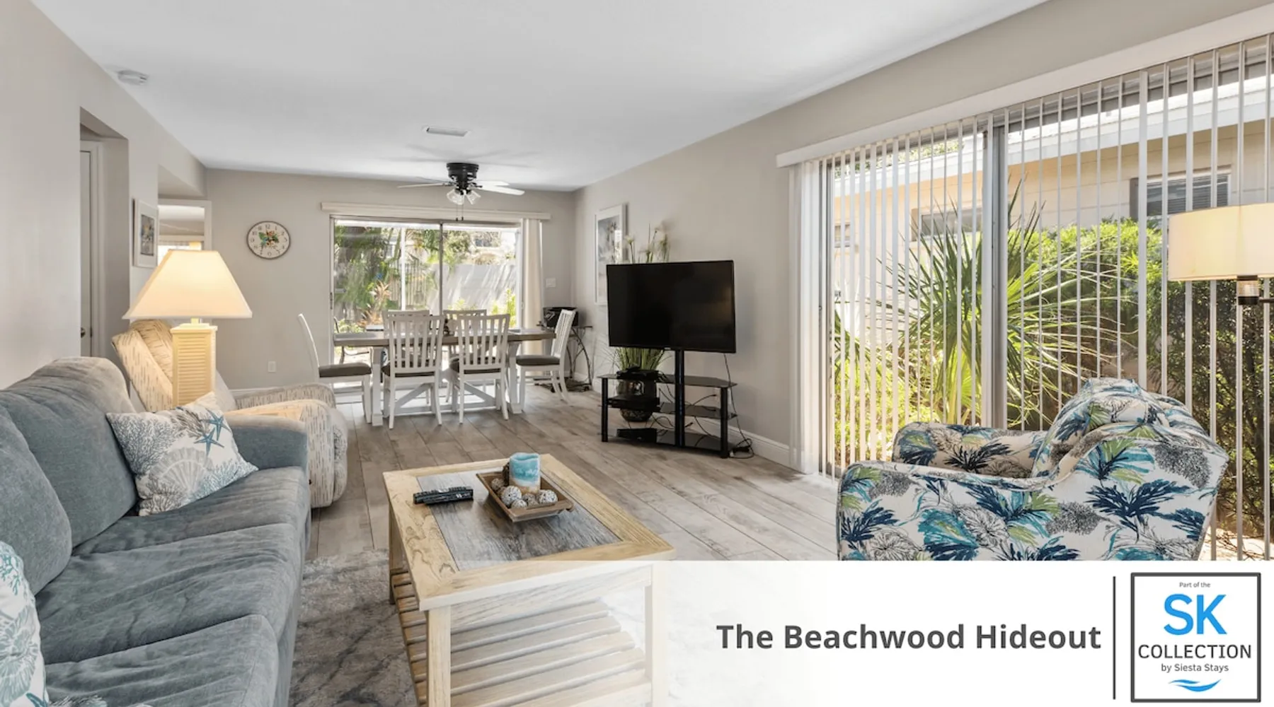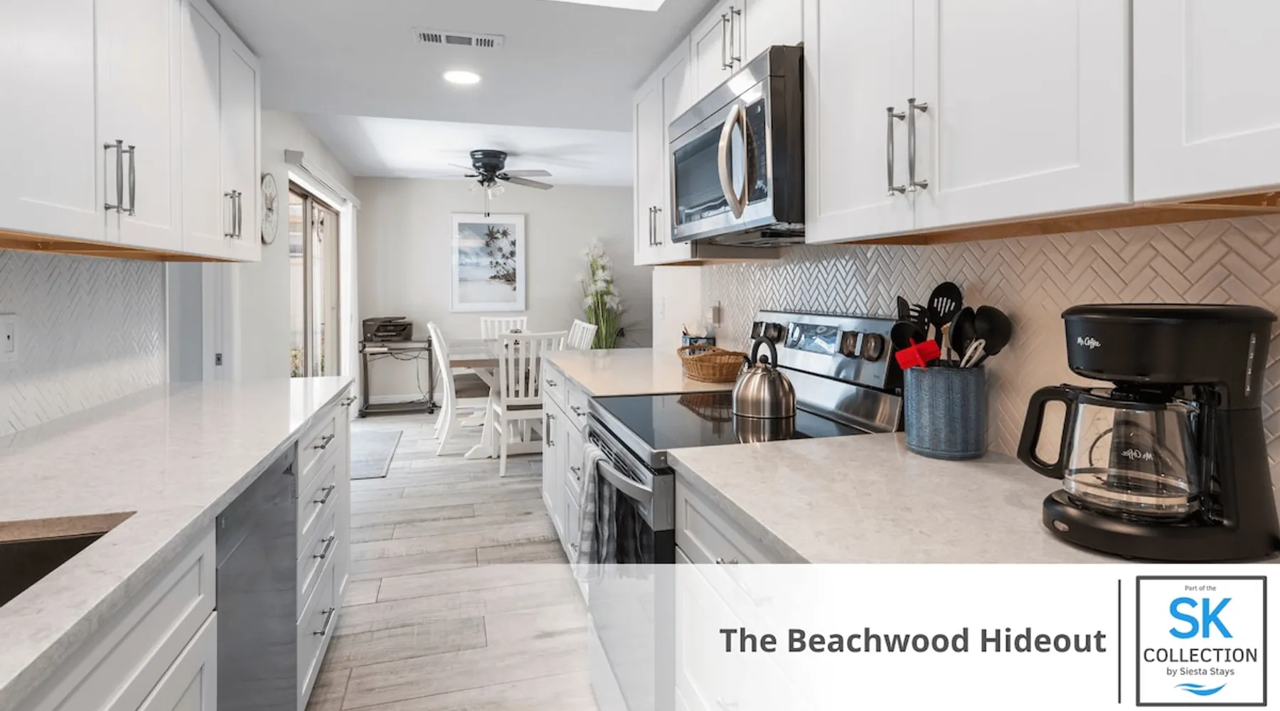 Winter season (Jan–Mar): 1-month minimum stays. Check-in/out on the 1st or last day of the month. Coastal chic 2BR/2BA condo with updated kitchen, screened patio, and deeded beach access. Heated pool at Aloha Kai, shuffleboard, kayak launch, and trolley stop 1 minute away. Sleeps 4 with king and twins. Beach chairs & towels included. Assigned parking and in-unit laundry. Two-day lead time and renter application required. Part of the SK Collection by Siesta Stays. The space Modern updated kitchen with full appliances Open living and dining area flowing to a screened patio for outdoor meals Two bedrooms with comfortable bedding arrangements Two full bathrooms In-unit washer and dryer for convenience Assigned parking space with parking pass required Deeded beach access within walking distance Heated outdoor pool, shuffleboard courts, and kayak/boat launch (kayak not included) Beach chairs and towels provided Quiet, well-maintained Provincial Gardens community with HOA quiet hours (8 PM–8 AM) Guest access Guests have access to the entire condo, including the updated kitchen, screened patio, in-unit washer and dryer, and assigned parking. Deeded beach access is steps away. The heated pool and shuffleboard courts are located across the street at Aloha Kai. Beach chairs and towels are provided for guest use. Kayak and boat launch access is available nearby. The trolley stop is a 1-minute walk for easy access to Siesta Key Village. Other things to note Beach towels and chairs are provided for guest convenience. Parking pass is provided and must be displayed for assigned parking. The complex enforces HOA quiet hours from 8 PM to 8 AM. No smoking is allowed anywhere within the complex. Two-day lead time required for all bookings. Property manager rental agreement required before arrival.
