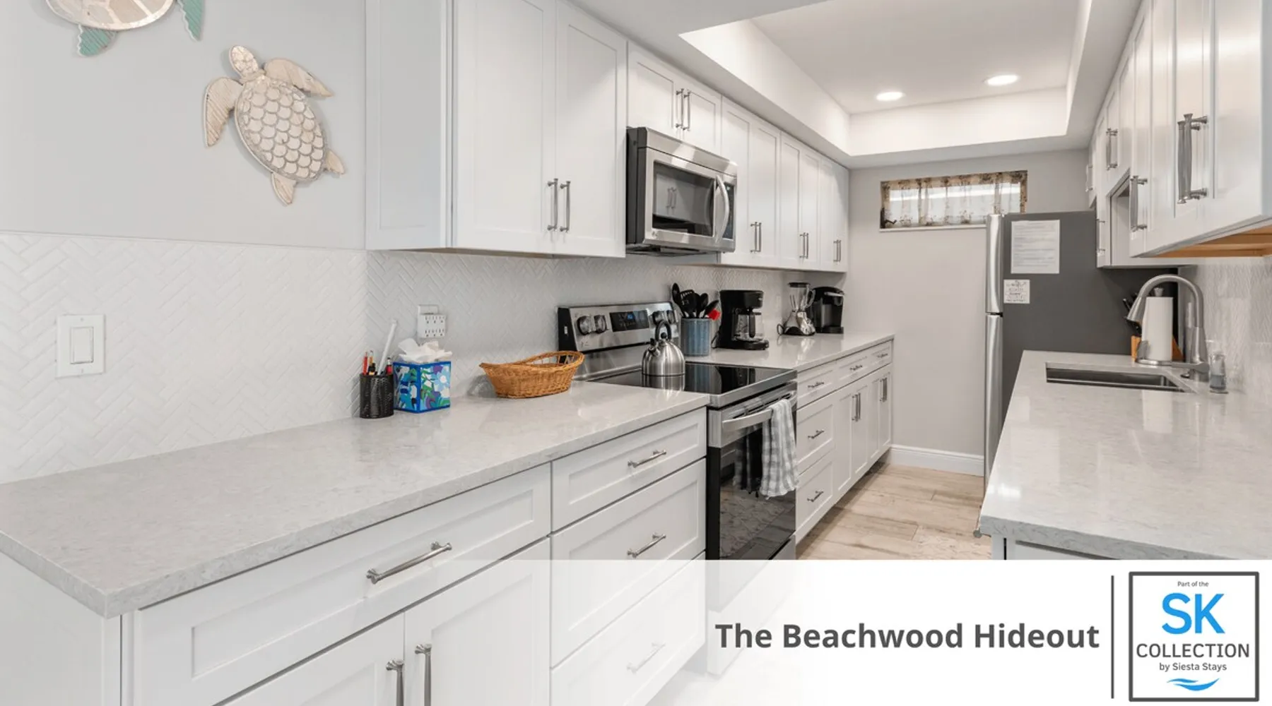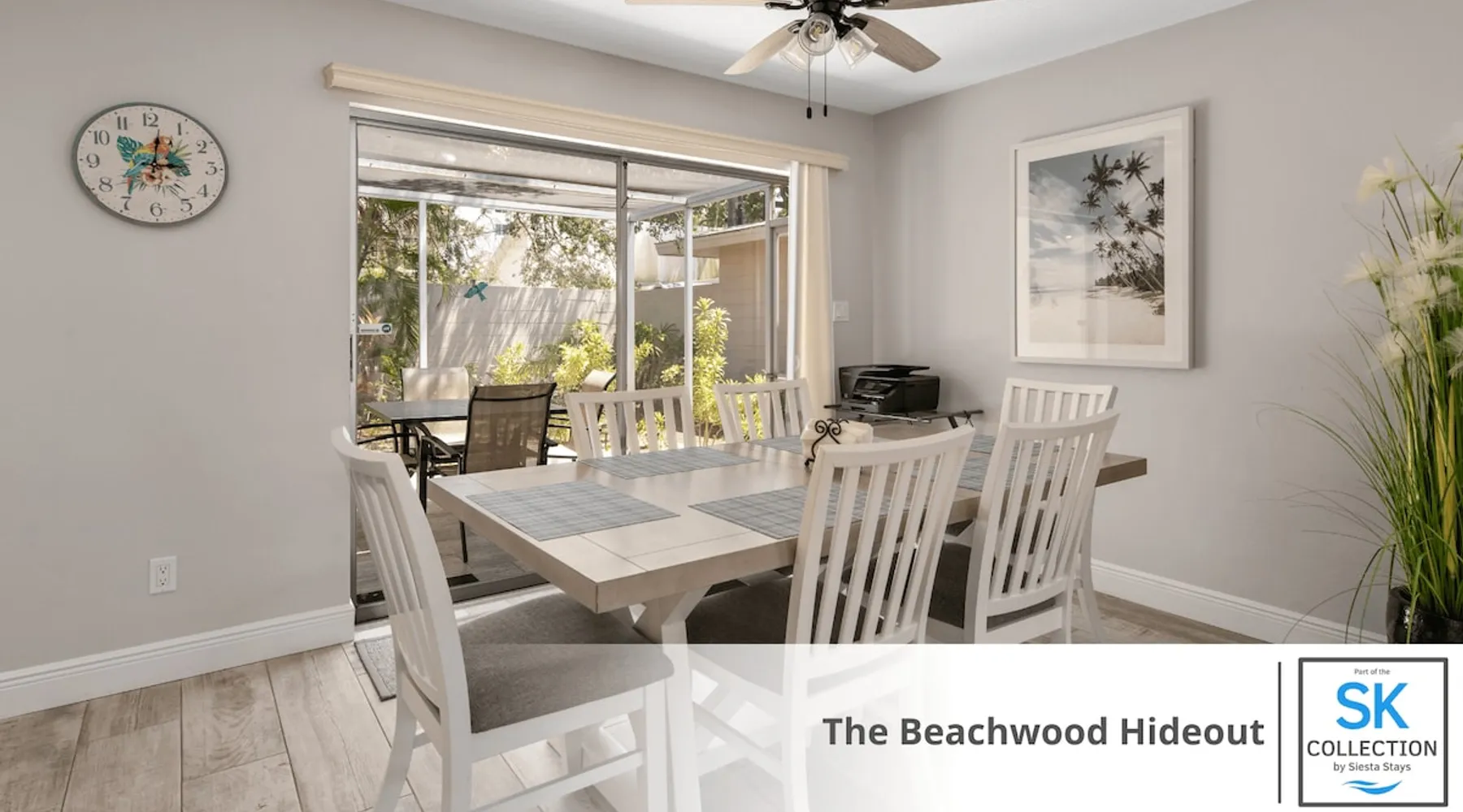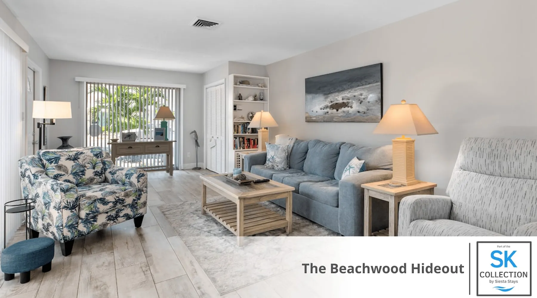 Winter season (Jan–Mar): 1-month minimum stays. Check-in/out on the 1st or last day of the month. Coastal chic 2BR/2BA condo with updated kitchen, screened patio, and deeded beach access. Heated pool at Aloha Kai, shuffleboard, kayak launch, and trolley stop 1 minute away. Sleeps 4 with king and twins. Beach chairs & towels included. Assigned parking and in-unit laundry. Two-day lead time and renter application required. Part of the SK Collection by Siesta Stays. The space Modern updated kitchen with full appliances Open living and dining area flowing to a screened patio for outdoor meals Two bedrooms with comfortable bedding arrangements Two full bathrooms In-unit washer and dryer for convenience Assigned parking space with parking pass required Deeded beach access within walking distance Heated outdoor pool, shuffleboard courts, and kayak/boat launch (kayak not included) Beach chairs and towels provided Quiet, well-maintained Provincial Gardens community with HOA quiet hours (8 PM–8 AM) Guest access Guests have access to the entire condo, including the updated kitchen, screened patio, in-unit washer and dryer, and assigned parking. Deeded beach access is steps away. The heated pool and shuffleboard courts are located across the street at Aloha Kai. Beach chairs and towels are provided for guest use. Kayak and boat launch access is available nearby. The trolley stop is a 1-minute walk for easy access to Siesta Key Village. Other things to note Beach towels and chairs are provided for guest convenience. Parking pass is provided and must be displayed for assigned parking. The complex enforces HOA quiet hours from 8 PM to 8 AM. No smoking is allowed anywhere within the complex. Two-day lead time required for all bookings. Property manager rental agreement required before arrival.